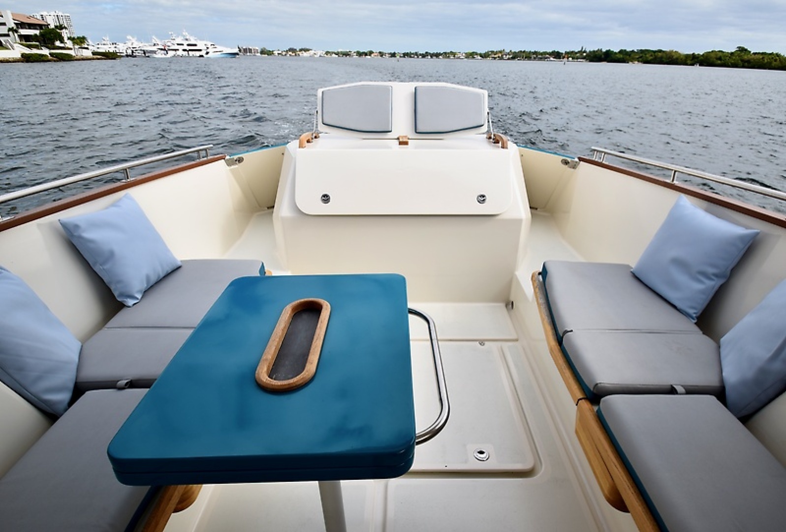 Combining luxury with sustainability, the Whisper 300 features solar panels, cork decking, and an optional rainwater recycling system. Its hull is optimized for future electric propulsion, making it ideal for those seeking a quieter, greener, and more graceful way to enjoy the water.