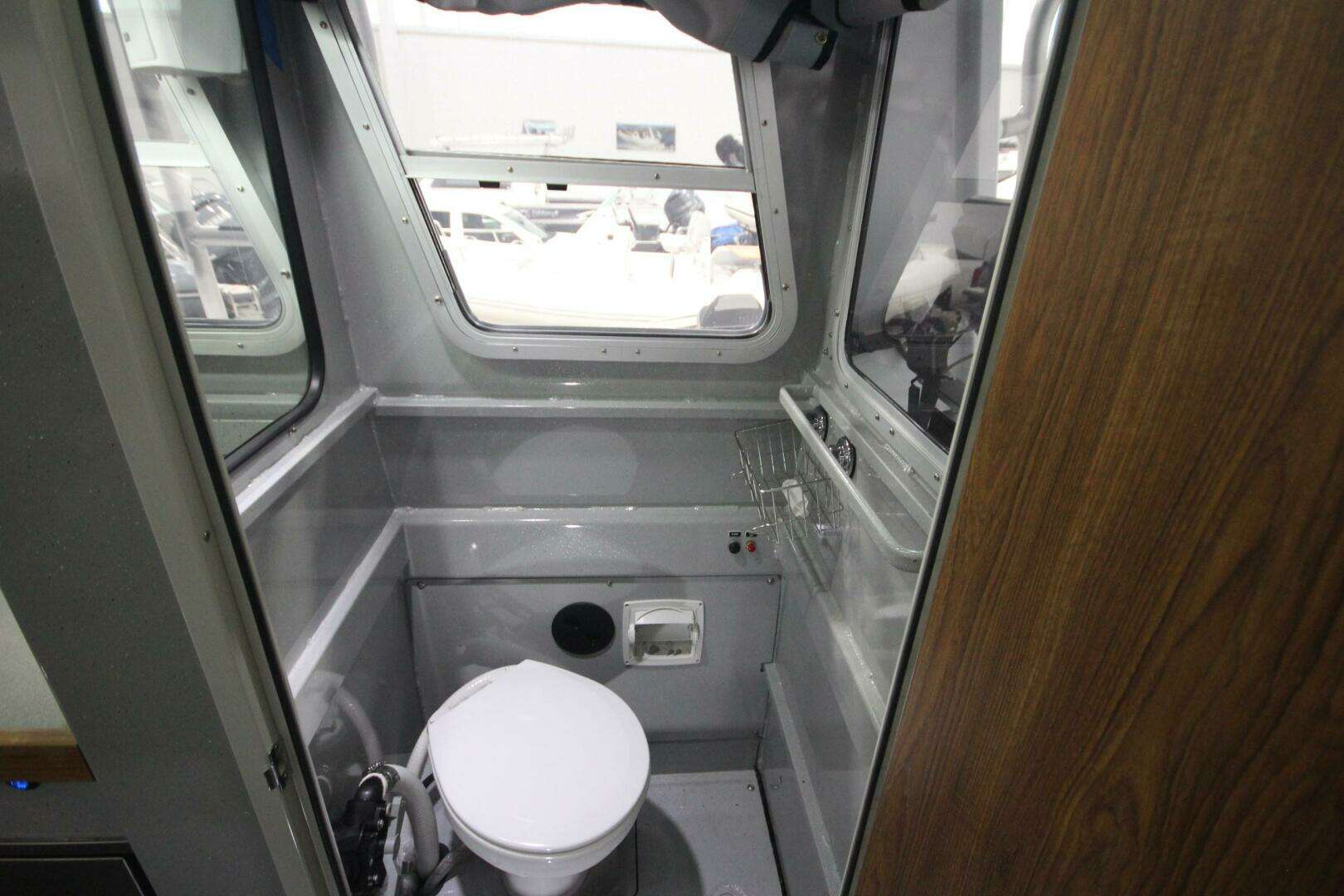 3 window marine head with electric toilet, curtains and 21 gallon holding tank