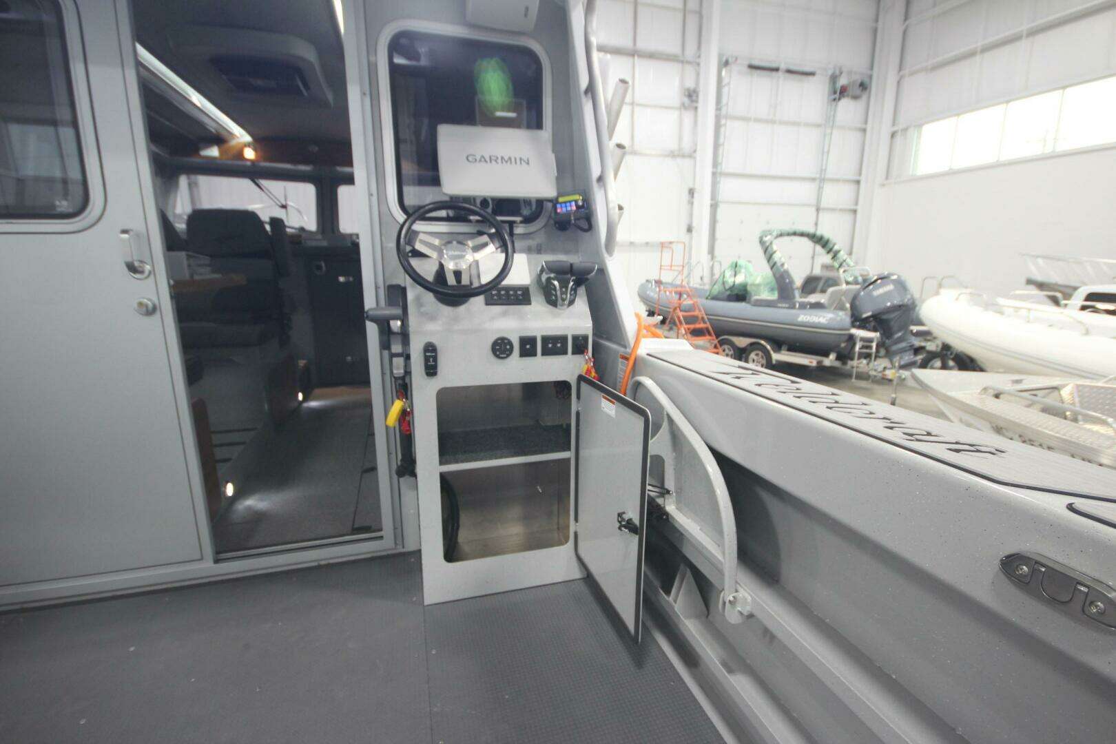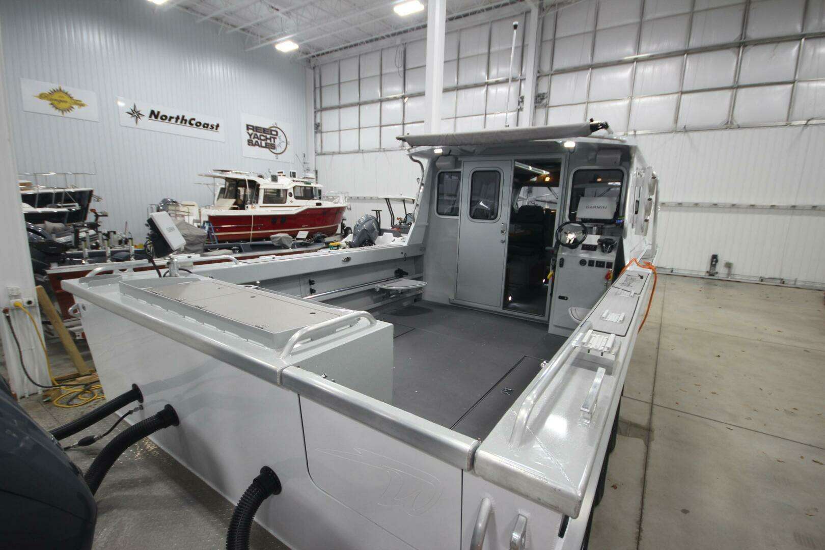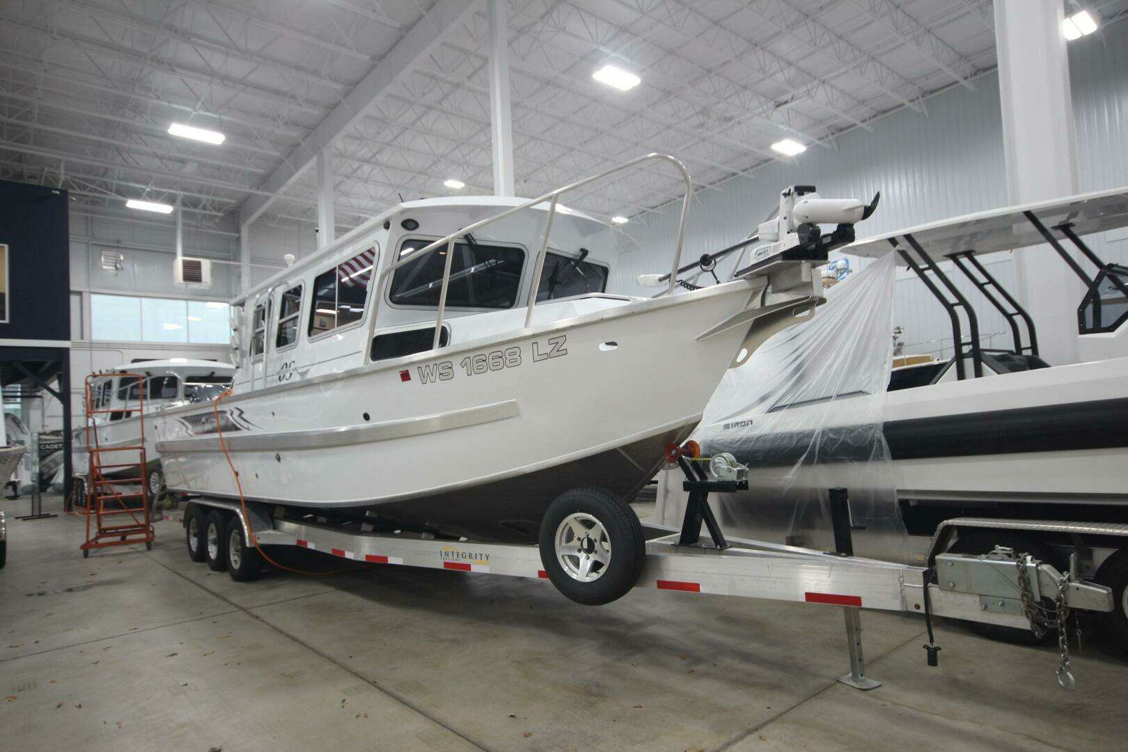She also includes a Yamaha T25XWTC high thrust kicker motor and a custom all welded bunk 2025 Integrity Aluminum 15k trailer. She is loaded with many factory options and dealer custom installs. A few highlights include the Yamaha Helm Master Digital Electric Steering, Digital Electronic Controls, Yamaha Autopilot and Yamaha CL-5 Information Station at both the main and aft helms. She also has a bow thruster, Minn Kota Riptide Instinct Quest 100" bow trolling motor, livewell, in floor rod storage, Wallas Viking 10,500 btu diesel furnace, 3 Garmin 126 Ultra 2 displays, Garmin Livescope LSV 34 with Traxtech down pole, SureShade power retractable awning, rooftop DC lithium powered air conditioning, Itroll G3 and Powertran remote steering for the kicker motor and much more!