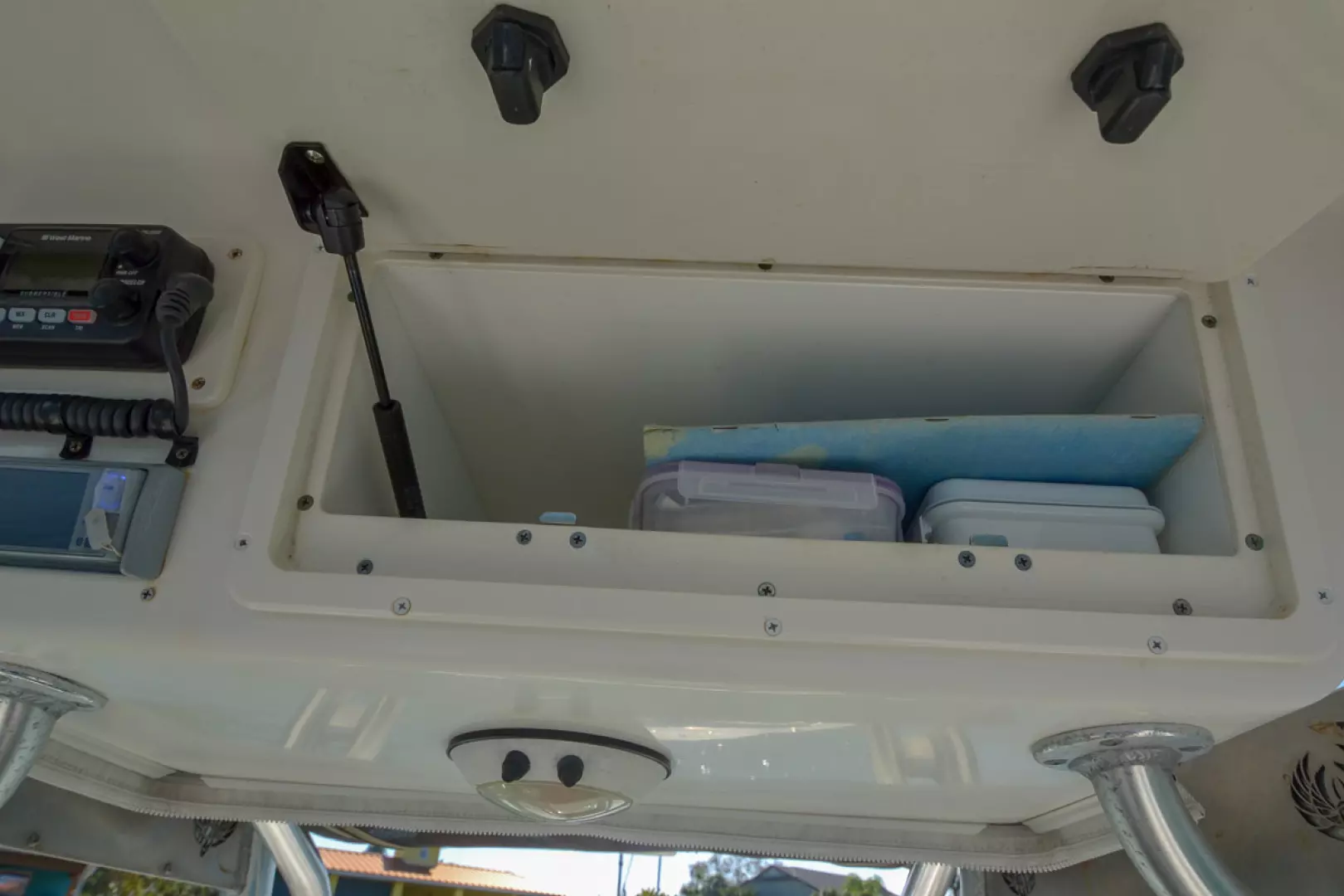 - Fish boxes fwd port/stbd (62 qt. ea.)- drain overboard
