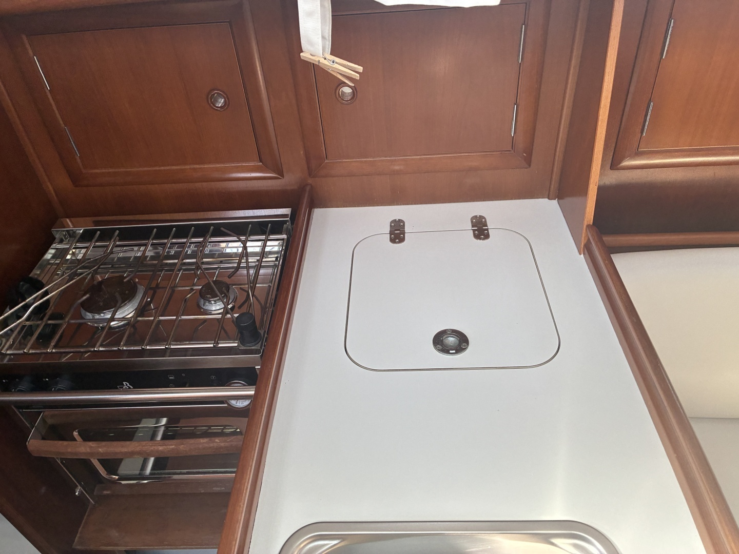 - The galley is compact but very functional for coastal cruising.