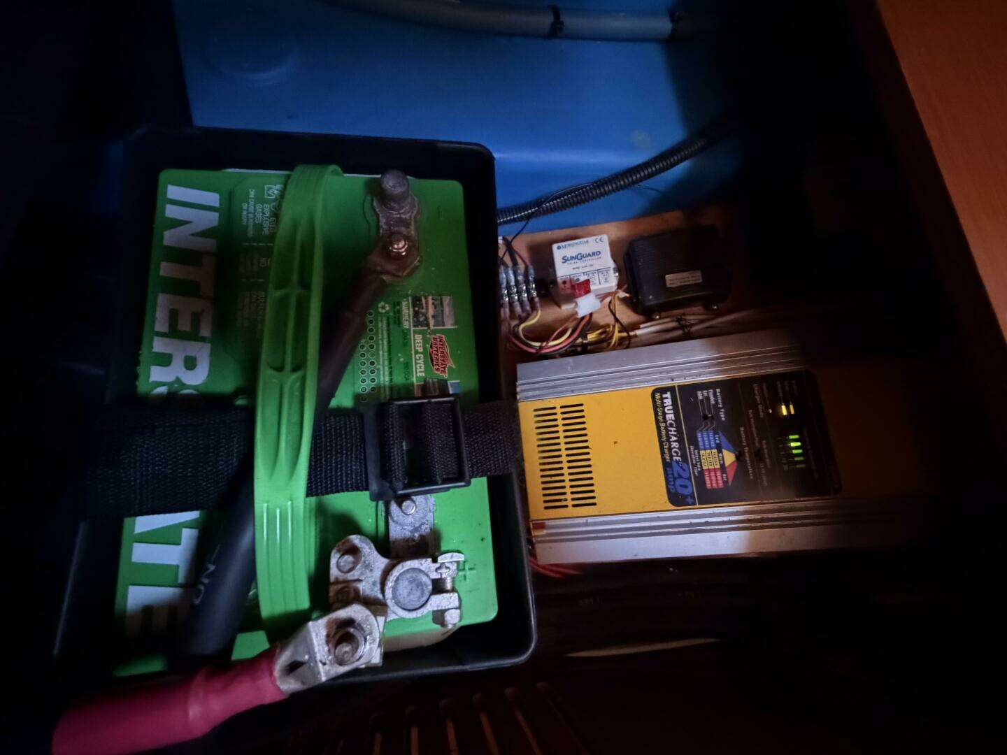 1-rotomolded water tank fixed to the hull liner (34 gal beneath the port aft cabin berth)
