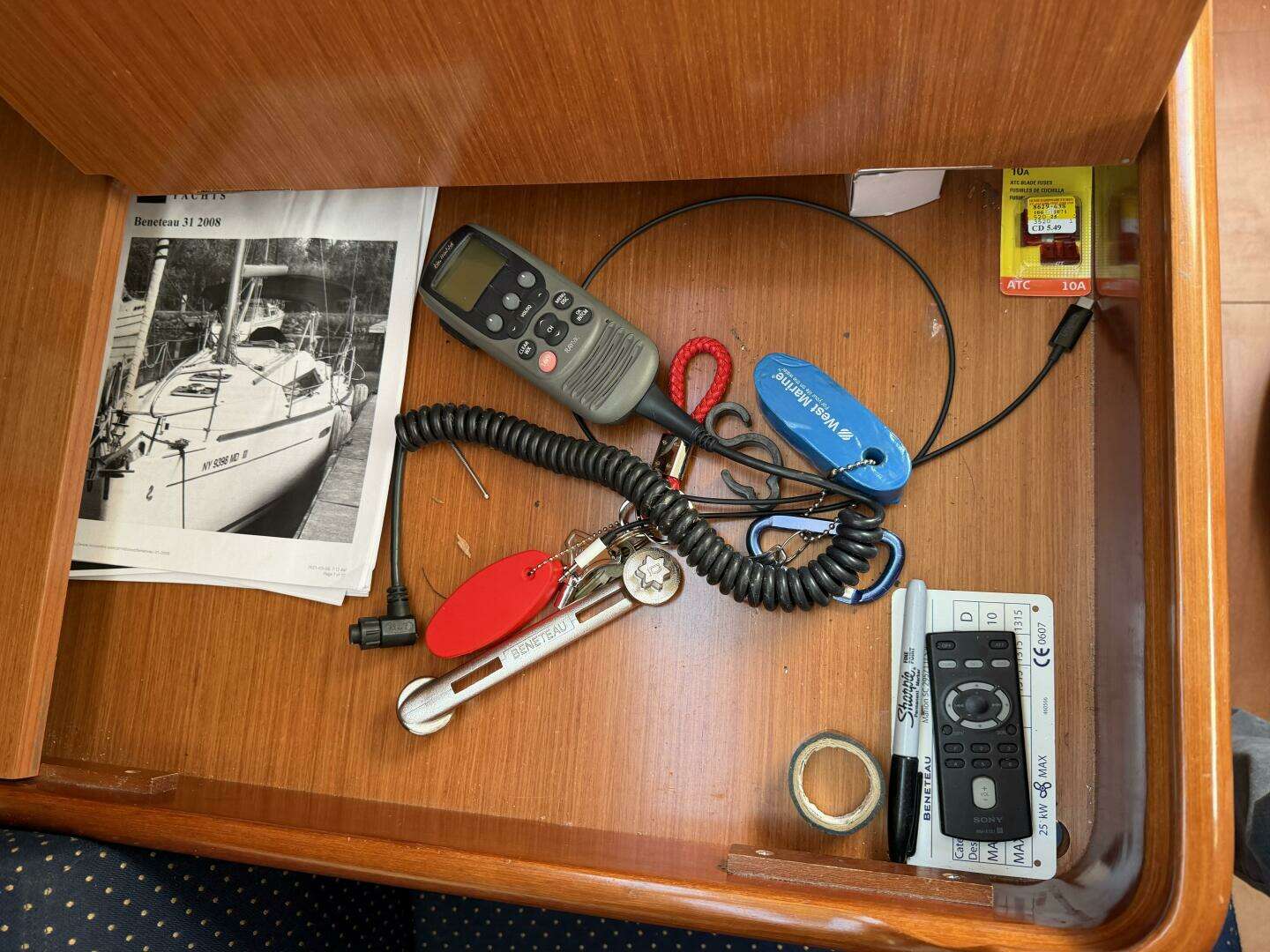 Engine control panel with built in key start and electric stop in the cockpit to starboard