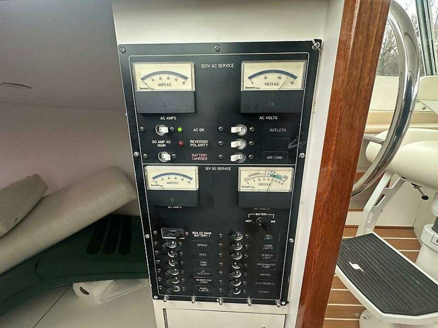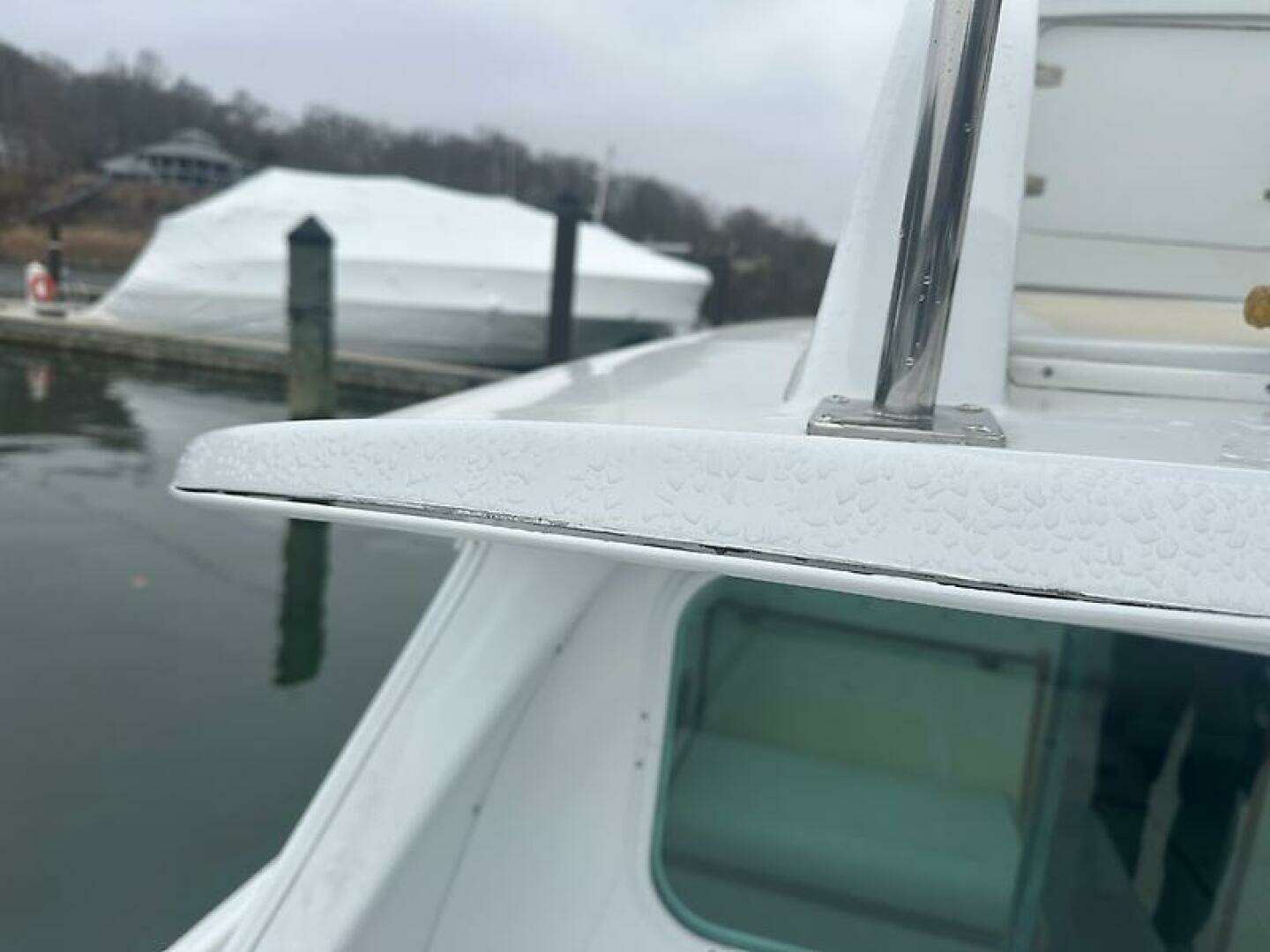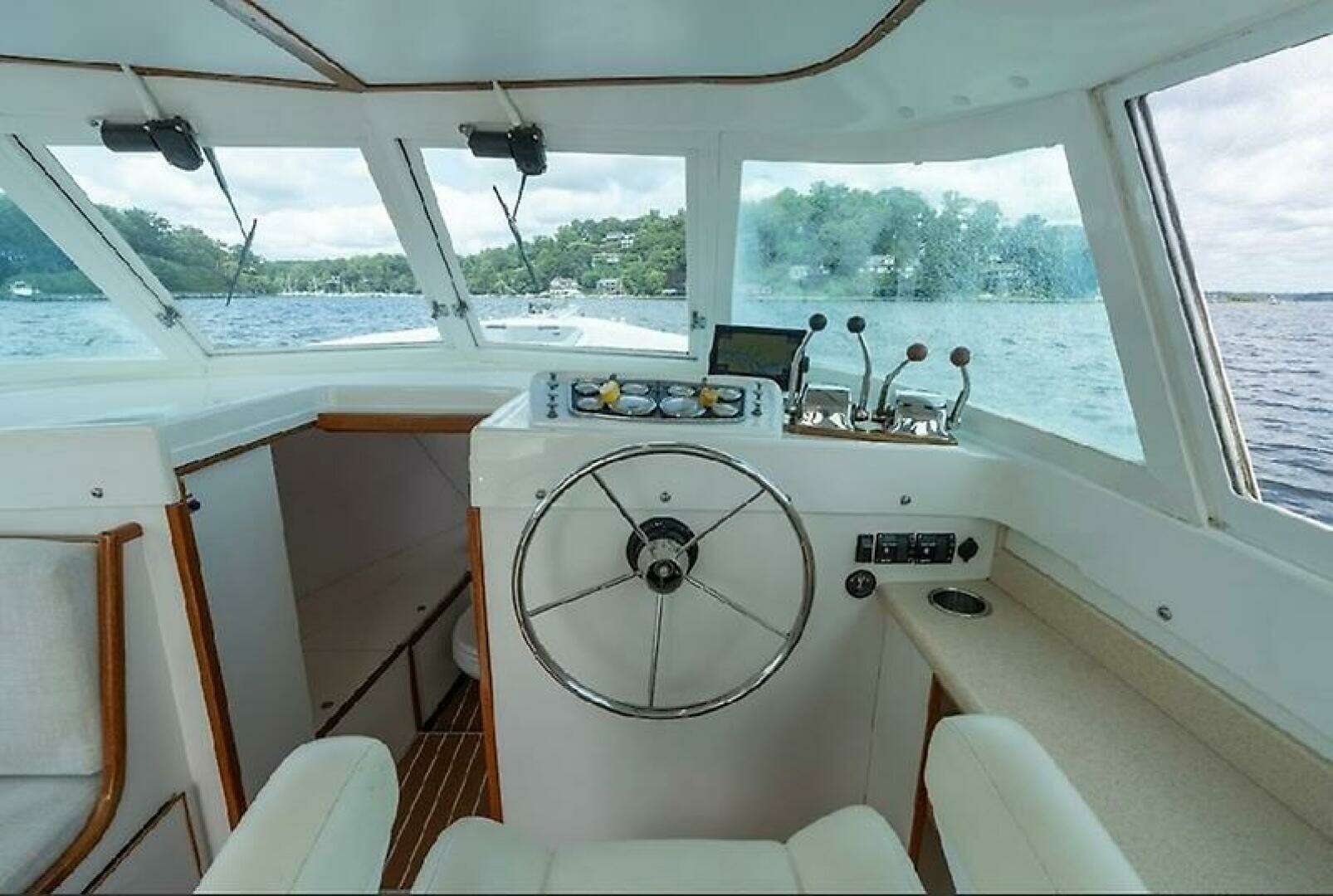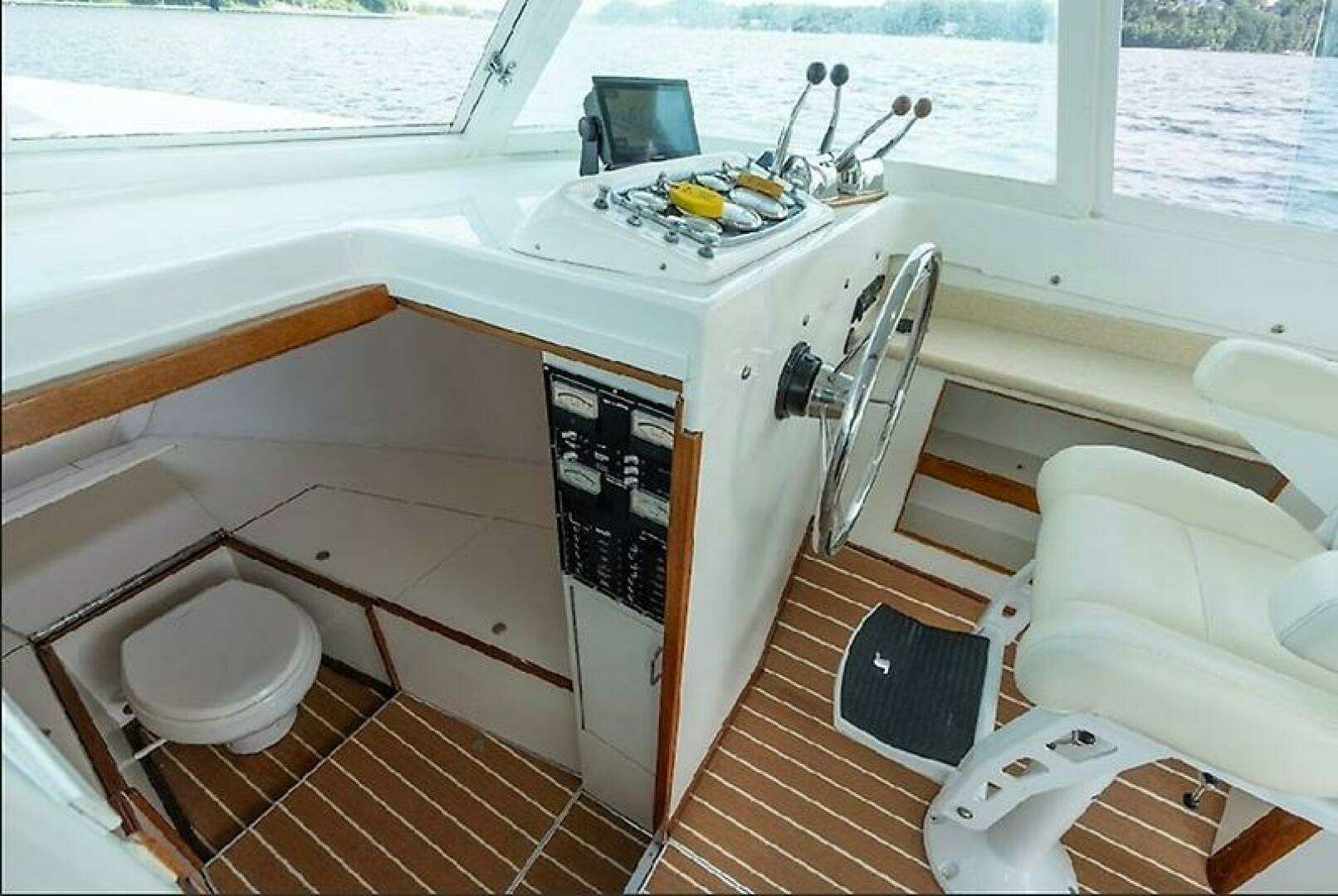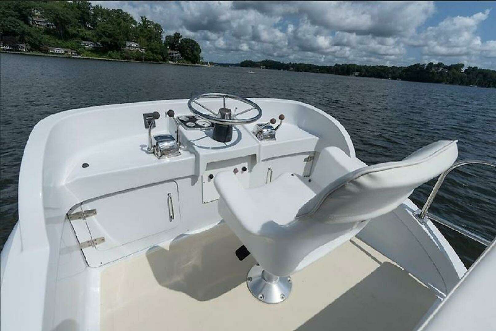 - Flybridge with Second Helm - Bench seating, rod holders, and helm chair