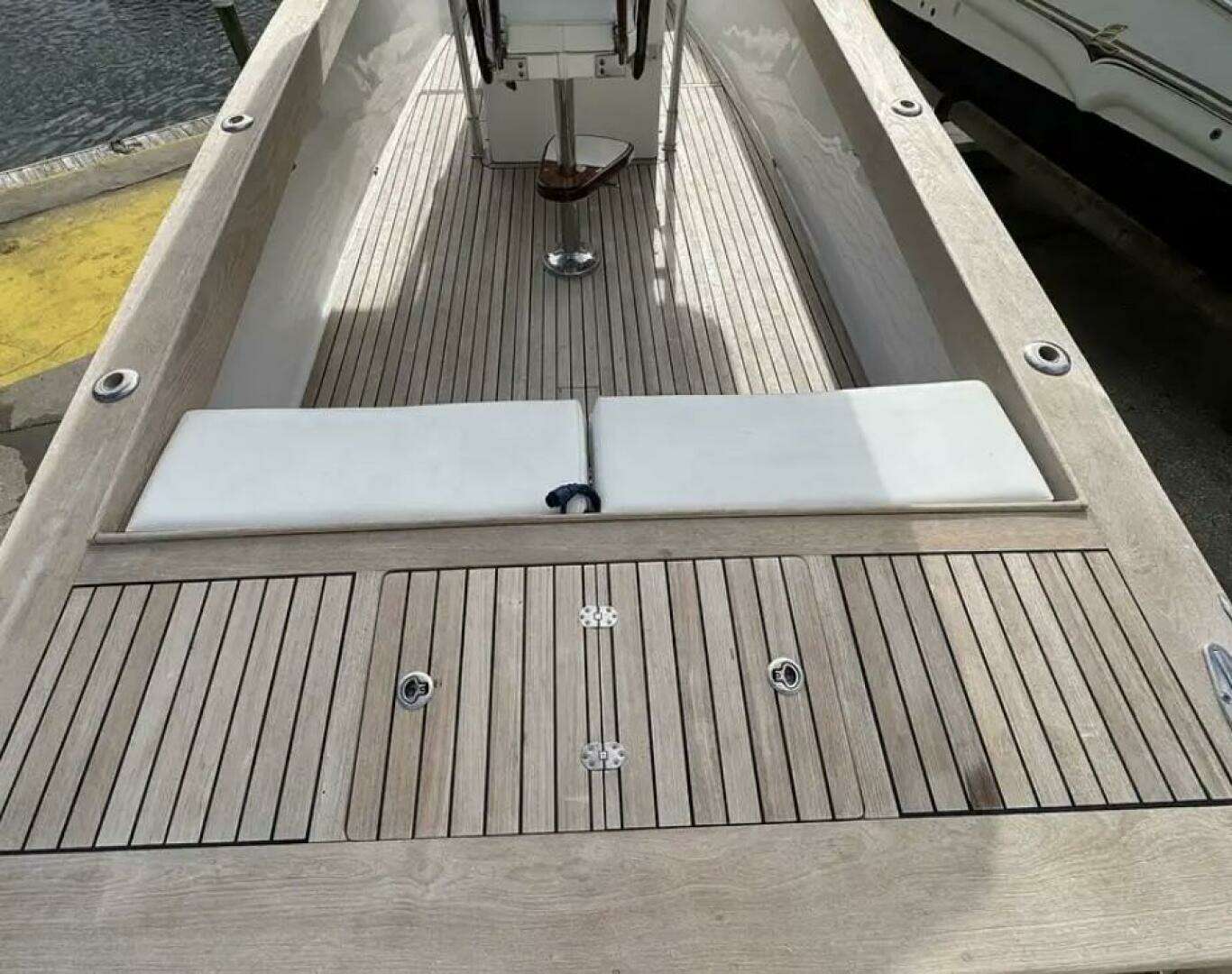 Beautiful wood all the way around, just maintenanced. This boat is well loved and used regularly.