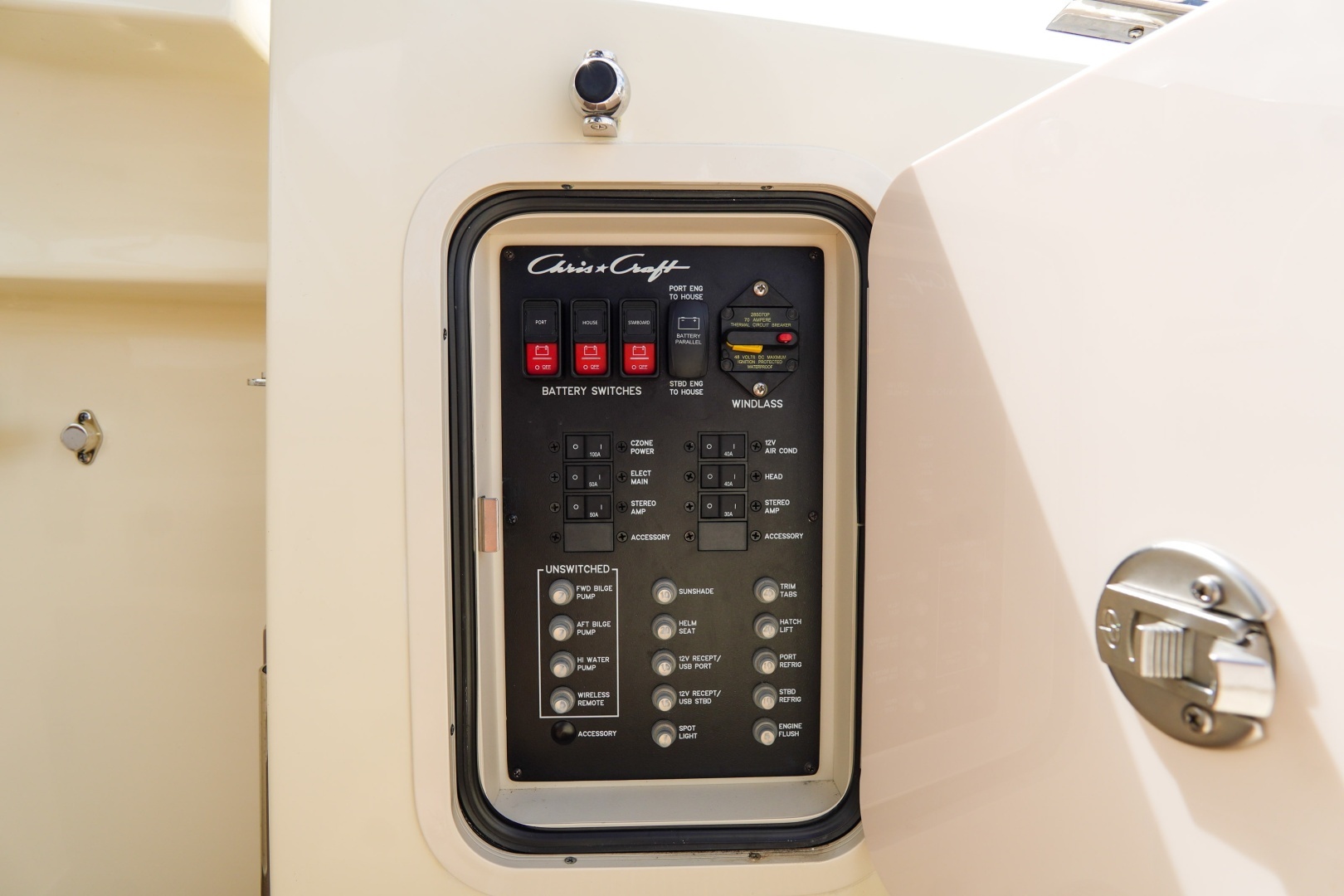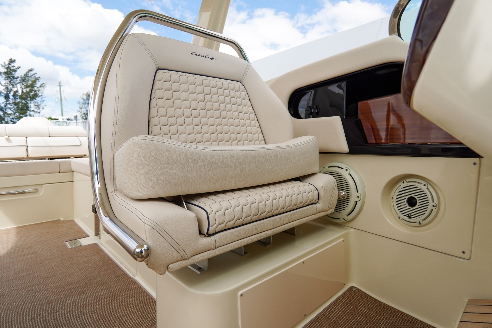 Finished in a stunning Portofino Blue Metallic hull with Heritage Trim Edition teak accents, this boat showcases Chris-Craft’s signature craftsmanship and style. The GT hardtop with motorized sunshade, premium LED lighting, and integrated speakers enhances both comfort and functionality on the water.