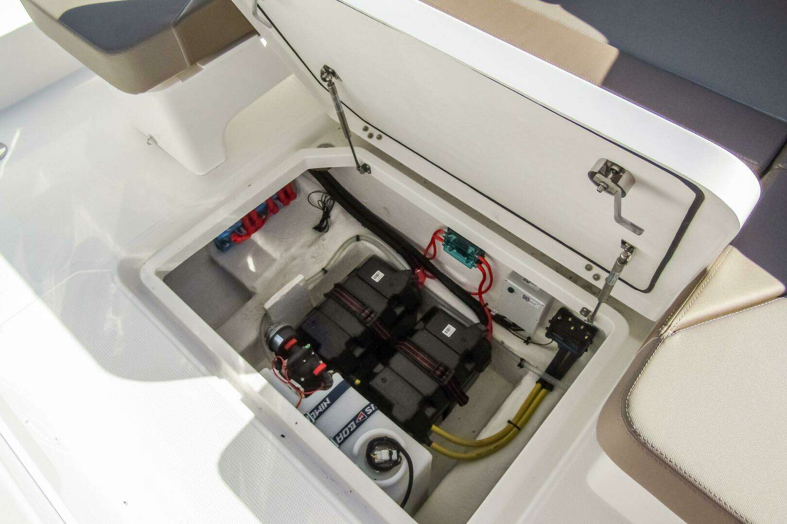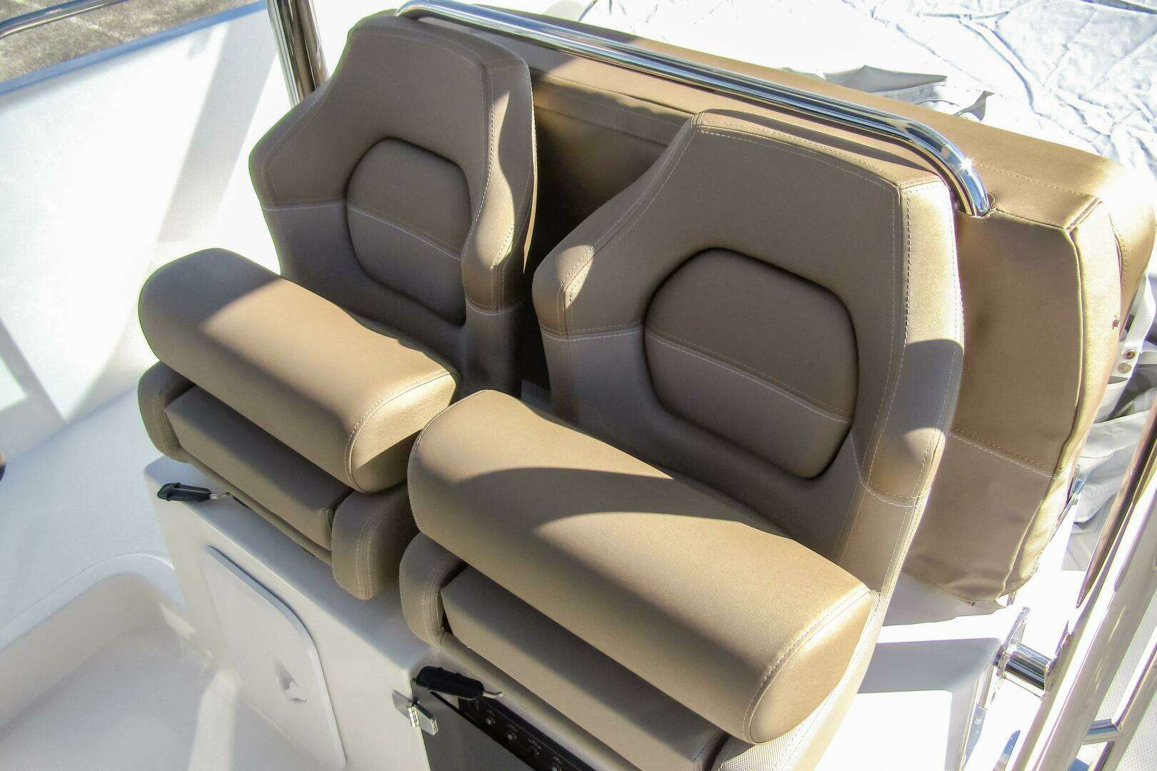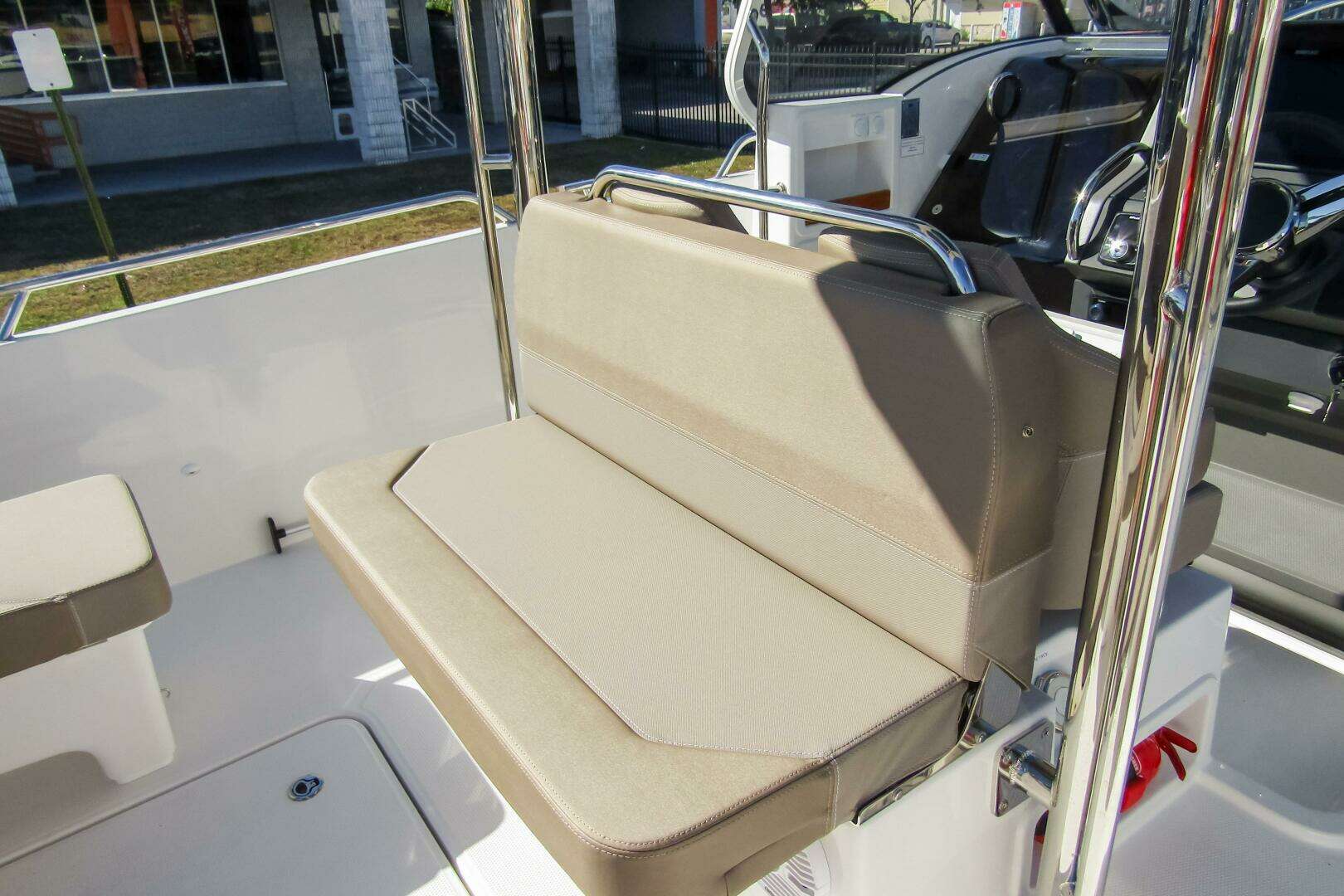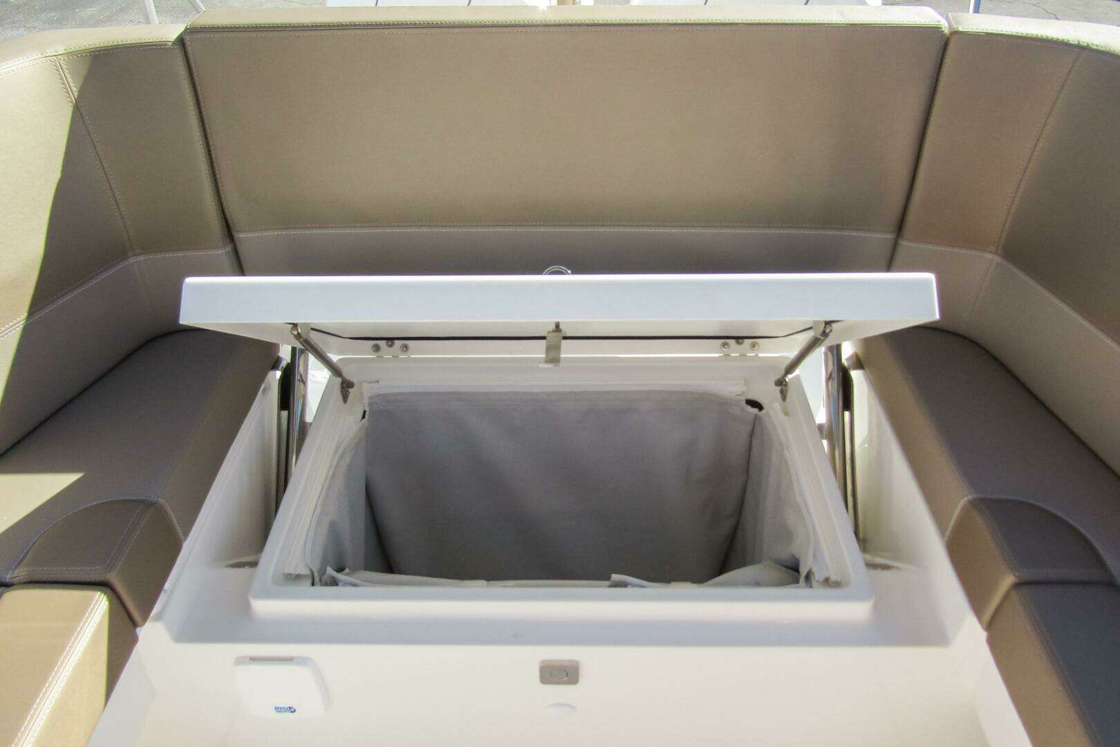 The T9 is equipped with single or twin Mercury outboard engines. The aft deck u-sofa with seating for 5 easily converts to a sunbed. There is an option for a wet bar with a hand basin and portable Weber LPG grill behind the helm seat. The module also functions as support while on the water or in port. The boat is available with three different canopy solutions – harbor cover, spray hood, or as a T-top design. The helm can be equipped with single 9″, 12″, 16″, or twin 12″ chart plotters. The foredeck features a large loading hatch with access to the cabin as well as an optional daybed which creates an extra seating area that seats 4 people with a table or extended sunbed. One smart way to make the most of the aft deck area is spare railing cushions that can be placed on the railing, offering both extra seating and a cozier atmosphere. Below deck is a large berth for two with integrated ventilation, ample stowage and separate head with sink.
