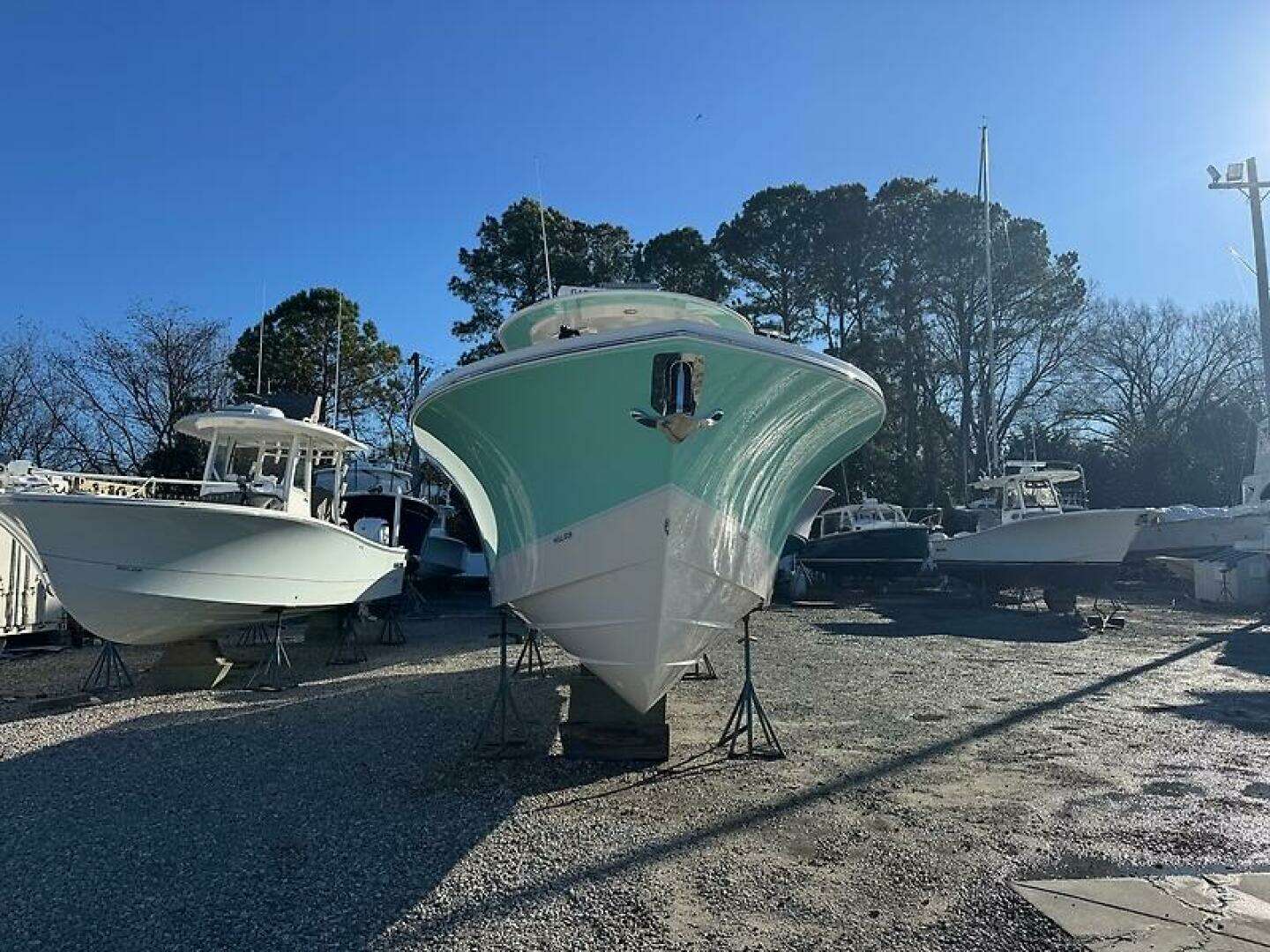 - Underside of T-top also Seafoam Green, matching the hull sides