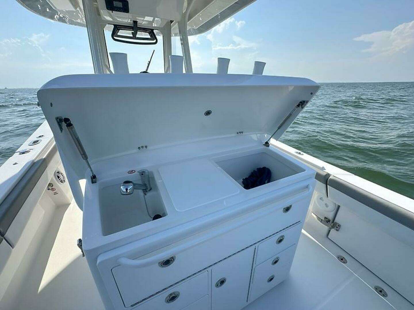 • Massive cockpit designed for anglers–in-deck macerated fishbox, insulated/transom fishboxes & livewells, large tackle station.