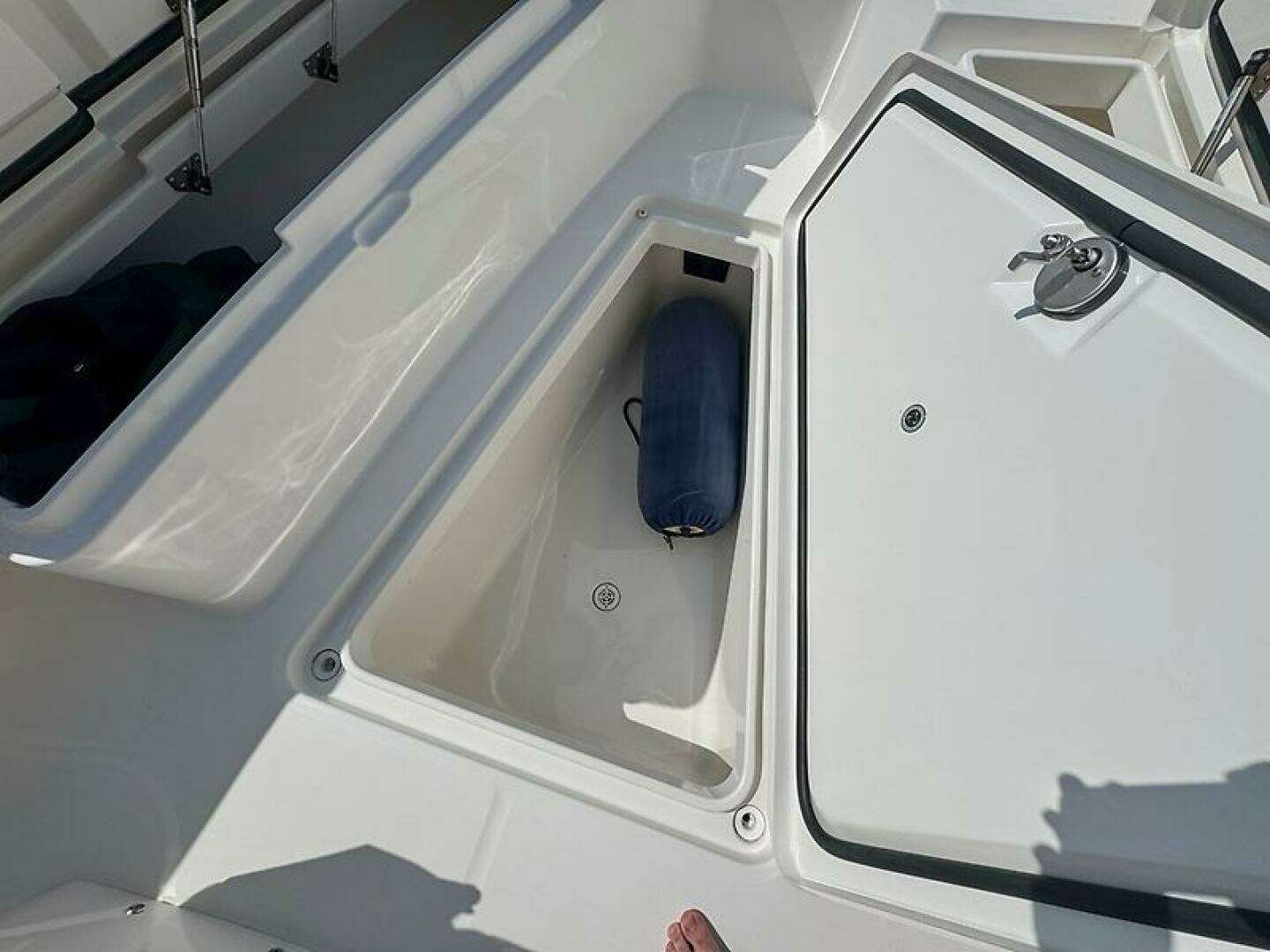 • Spacious bow area with forward convertible seating with flip-up backrests.