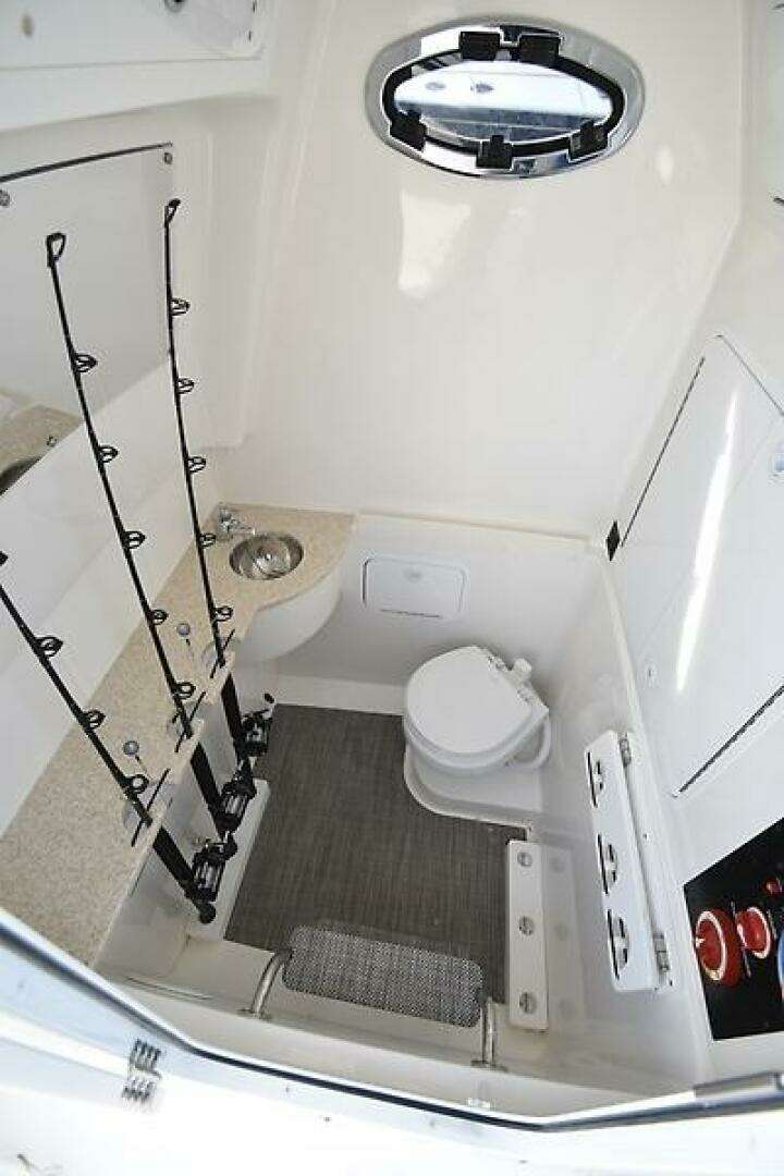 - Fresh water electric flushing toilet inside of the Console