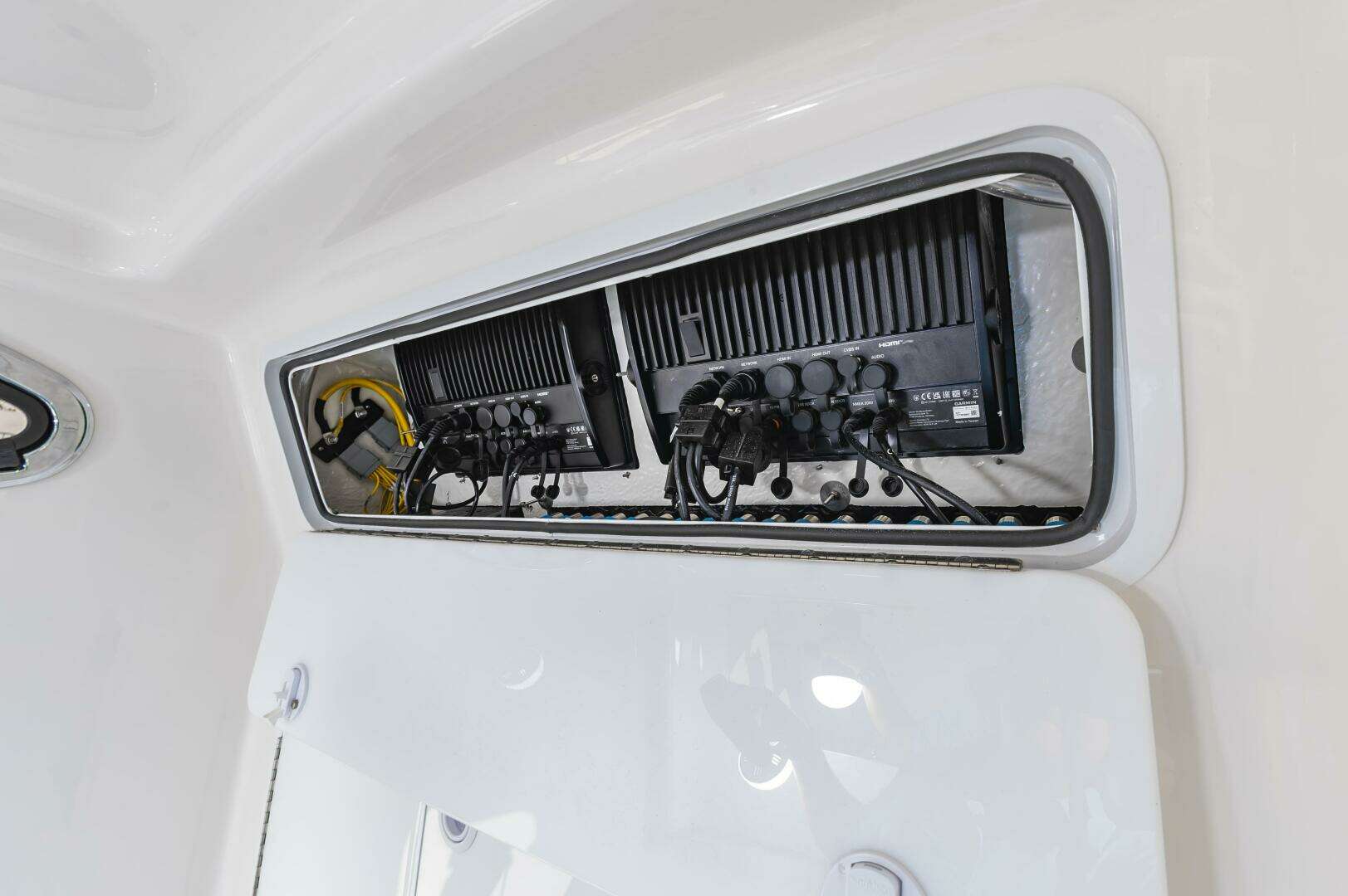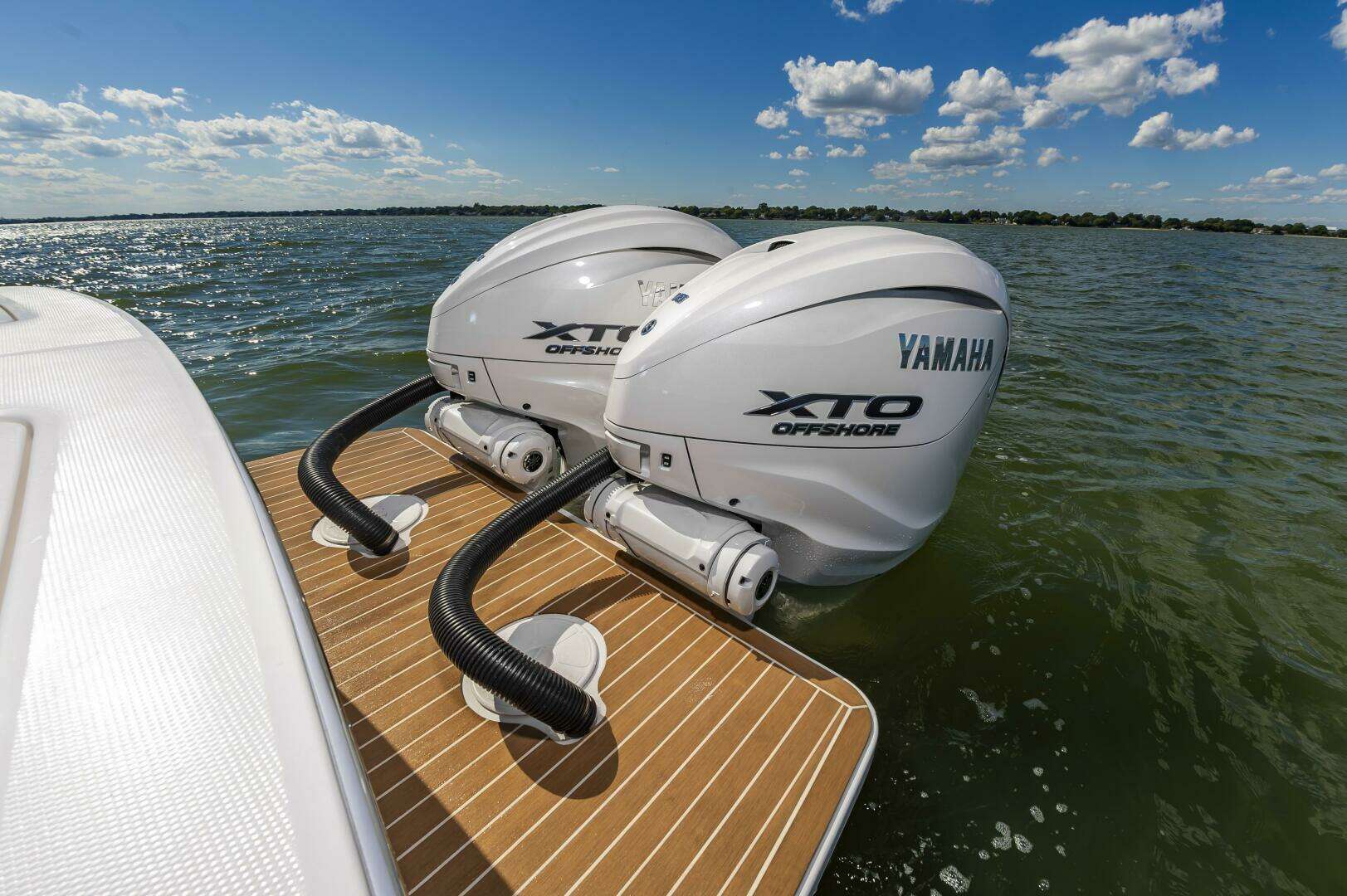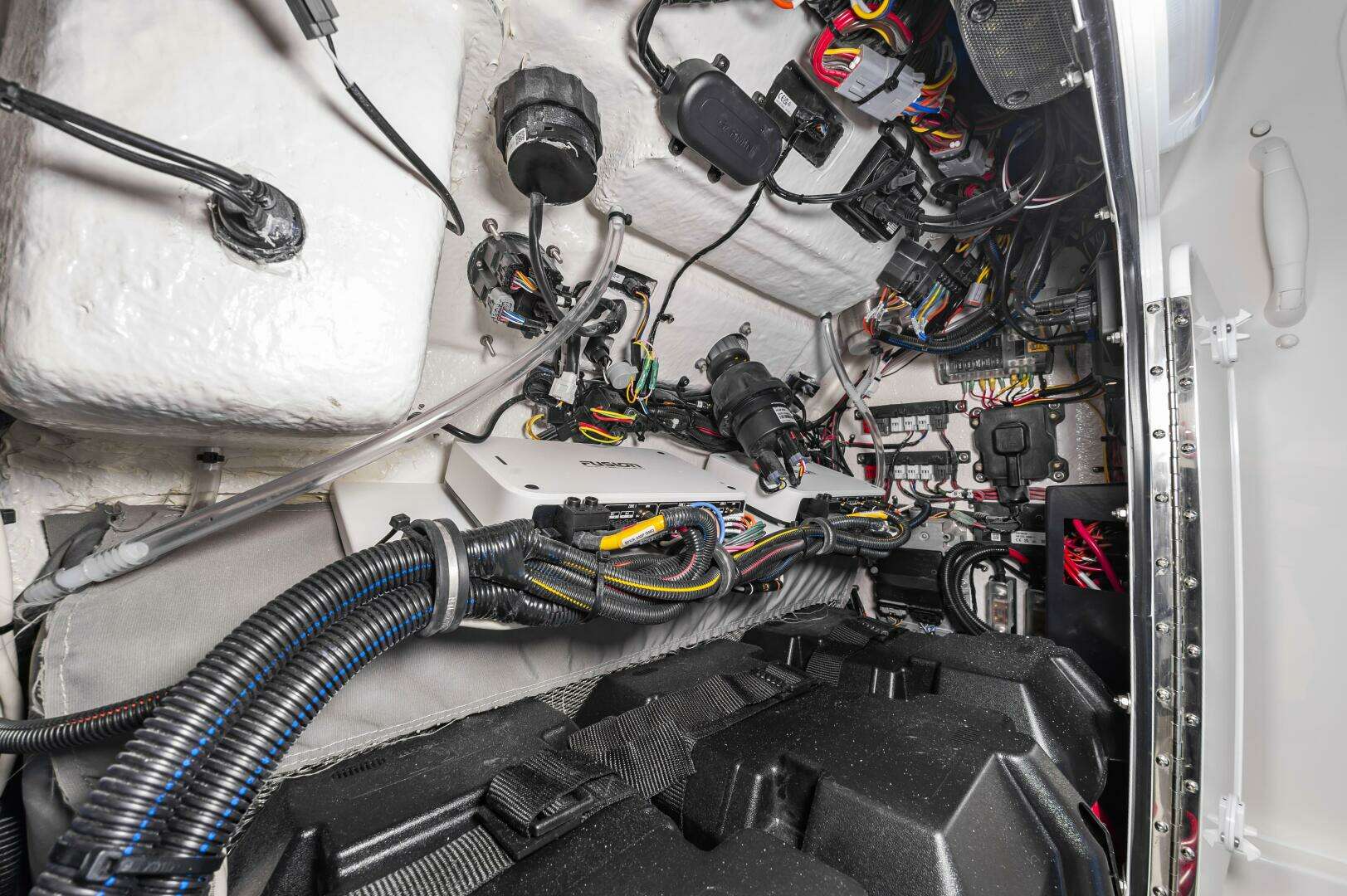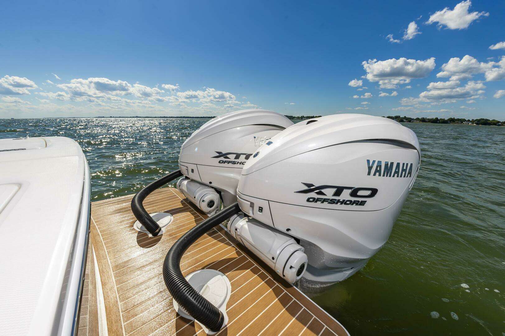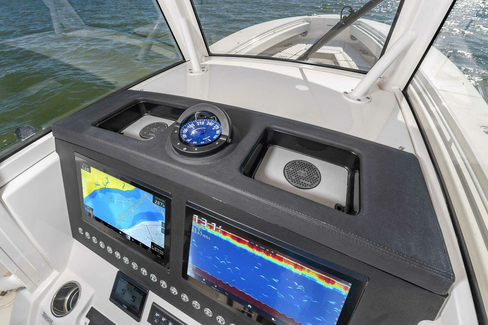 - Factory-Installed Garmin® Offshore Package: Two 16” GPSMAP® 8616XSV Multi-Touch Widescreen Chartplotter/Sonar Displays, VHF 215 AIS Radio with Dual 8’ Antennas, GMR™ 424 xHD 4kW Open-Array Radar, Airmar® B275LHW with Wide Beam 1kW CHIRP Transducer, and Yamaha EX Autopilot, Plus Black Flushmount Electronics Face and Remote Mic