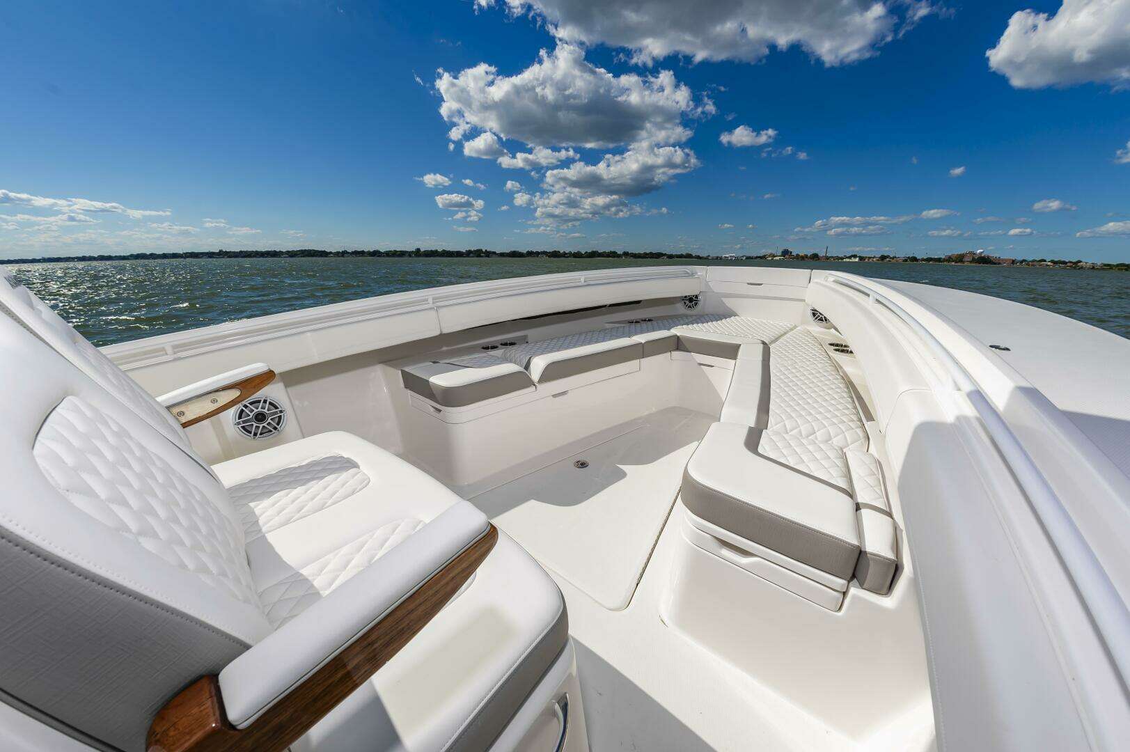 - Forward In-Deck Fishbox – Insulated, Illuminated, and Macerated with Locking Rod Storage (Holds 6 Rods)