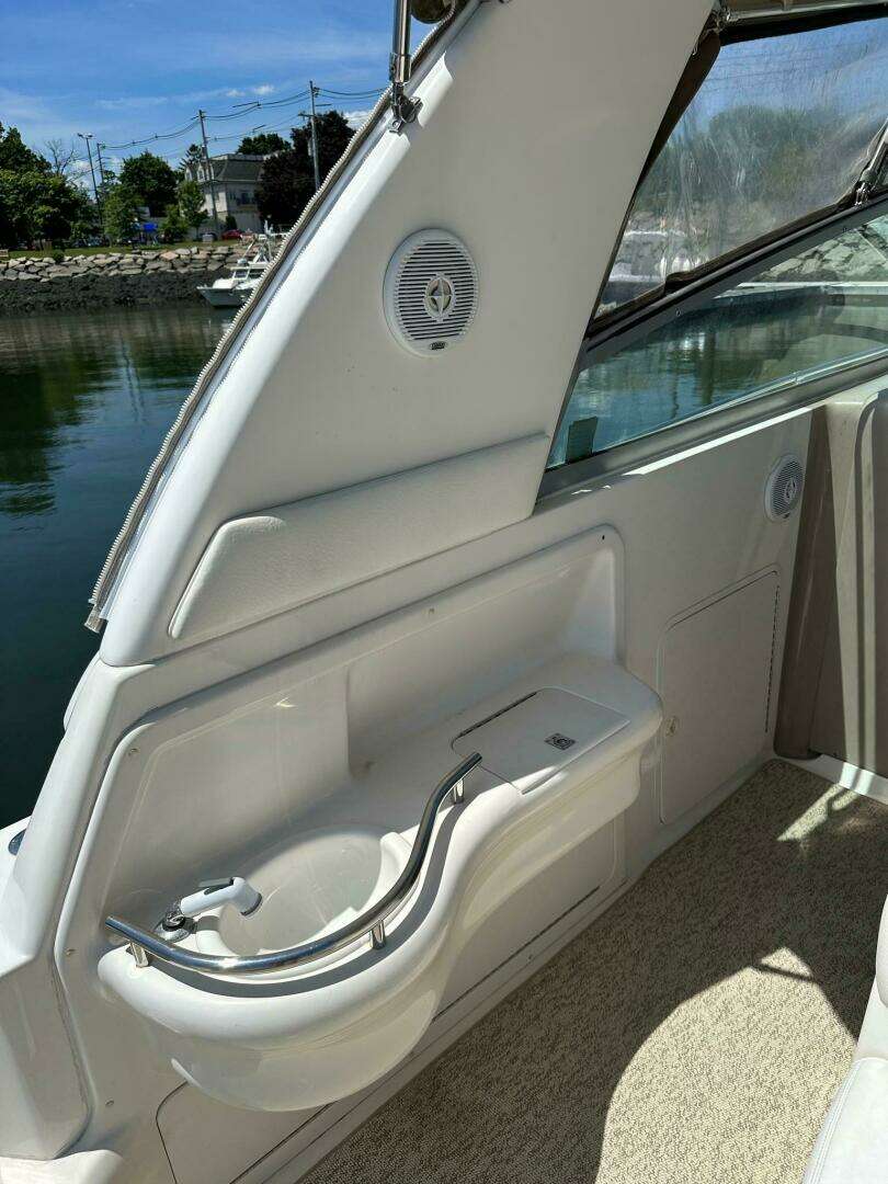 This 310 Sundancer is very clean and comes with high grade hardware, furnishings, and appliances. Very roomy interior with vee berth forward, convertible dinette, and aft cabin. The cockpit is large with all you need for your entertaining pleasures. U shaped aft seating with a wet bar and a triple wide helm seat. See full specs and call American Marine to view this boat.