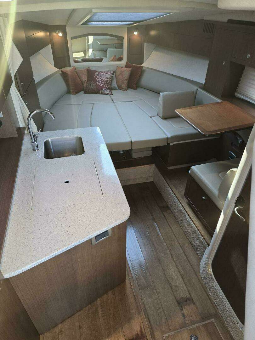 - Comfortable Cabin: Sleeps up to 6, featuring a queen V-berth, convertible dinette, and cozy mid-berth, all complemented by wood flooring and high-end cabinetry.
