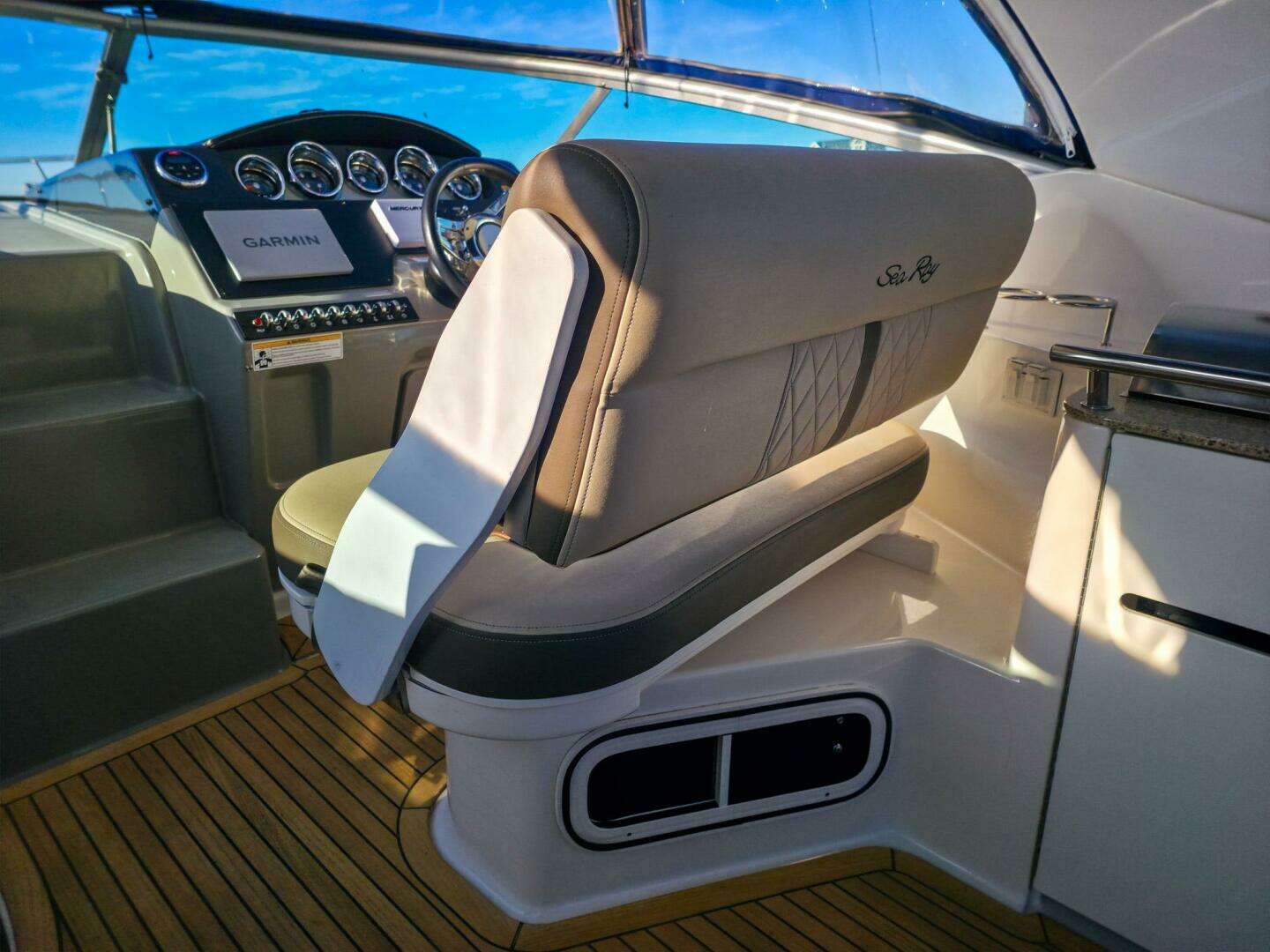 Not all accessories shown or described herein are standard equipment or even available as options. Some features and options may not be available when a boat is built for outside North America and/or has CE Certification. Options and features are subject to change without notice. Not all model-year boats may contain all the features or meet the specifications described herein. Confirm availability of all accessories and equipment with an authorized Sea Ray dealer prior to purchase.