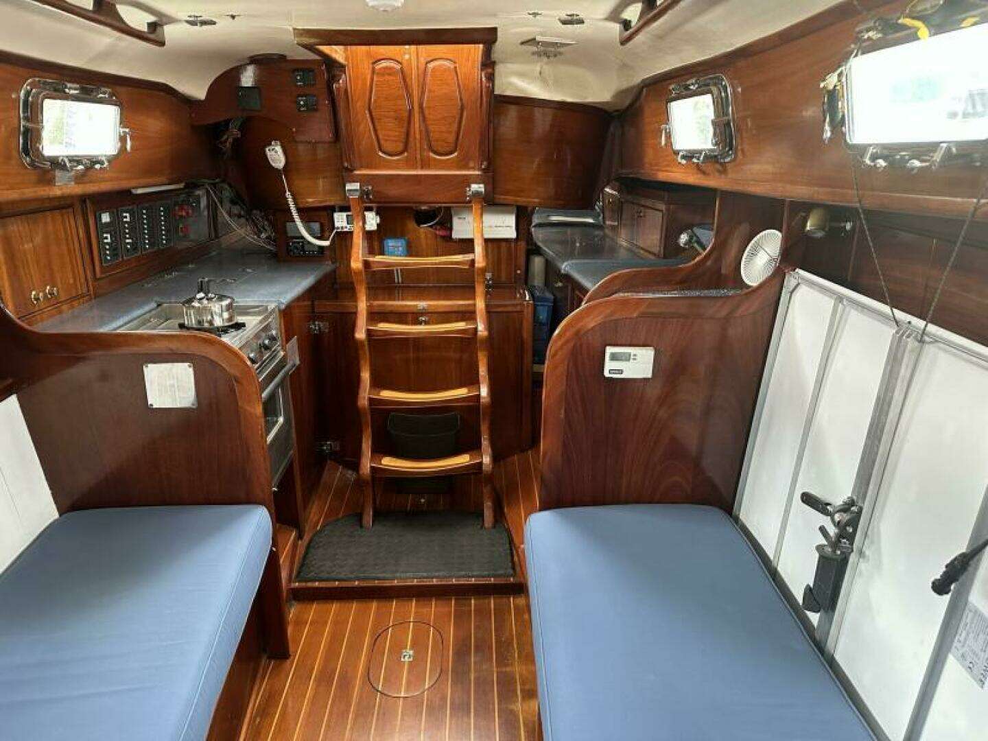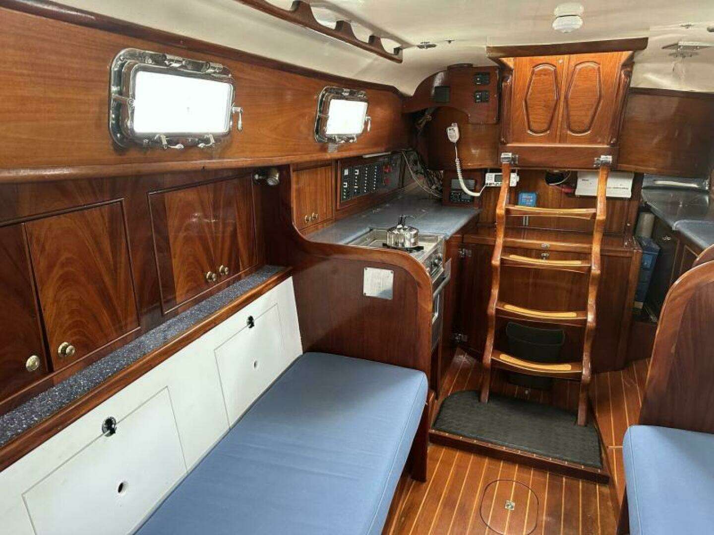Custom Interior built by a Yacht Craftsman .The Stairs over the Engine are Custom