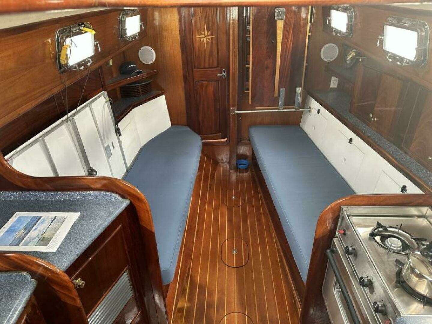 cabin and aft cockpit for tiller steering. It is