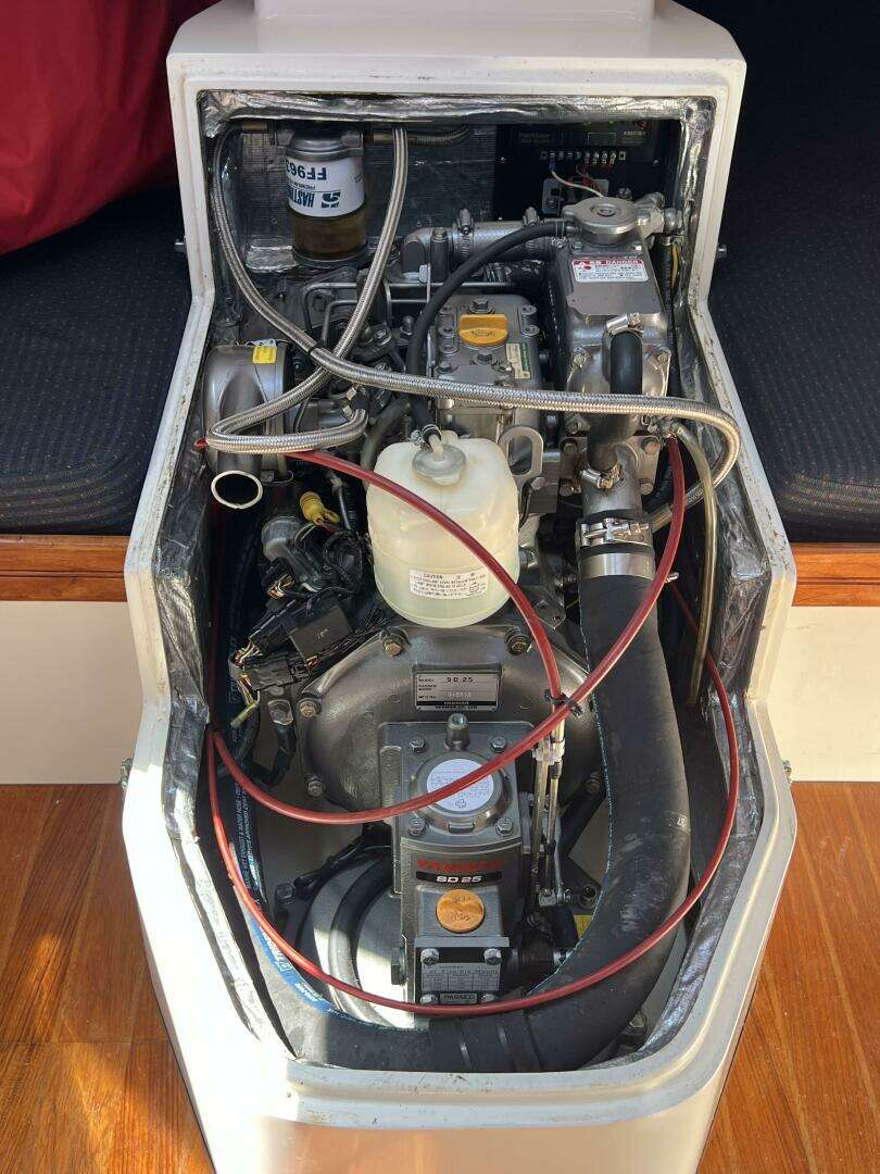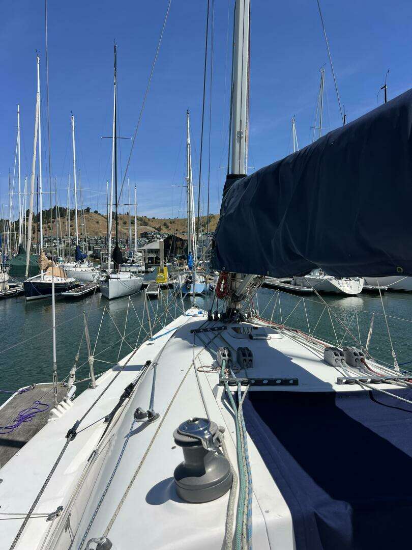 The Sydney 32 narrow sleek fiberglass hull, paired with a fin keel and spade rudder, ensures maximum maneuverability and speed in a range of wind conditions. Its racing pedigree is evident in its handling, with quick acceleration and responsive helm control. She has Grand prix features like integral carbon Fiber chainplates. The chainplates are molded into a one-piece laminated structural grid that incorporates the keel attachment, mast step, engine mount, and rudder bearing as seen on America’s cup boats.