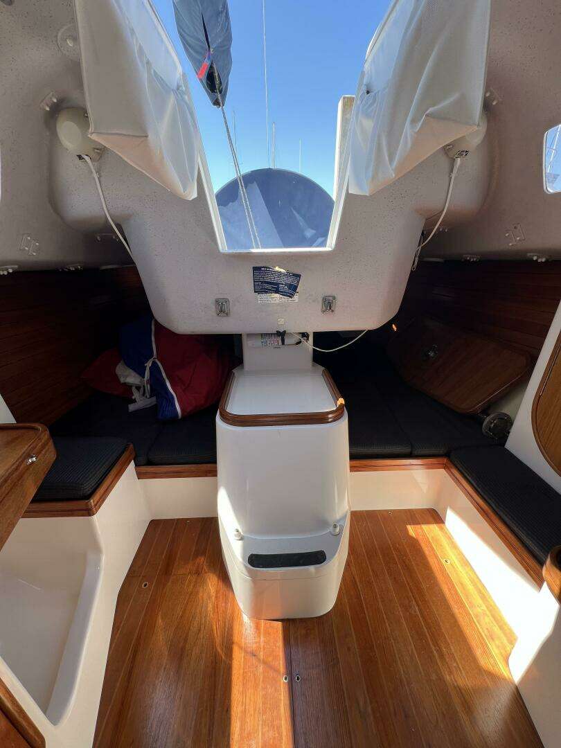 She accelerates quickly, tracks beautifully upwind, and is equally confident downwind. Deck layout and rigging are optimized to keep loads low and sail handling simple.