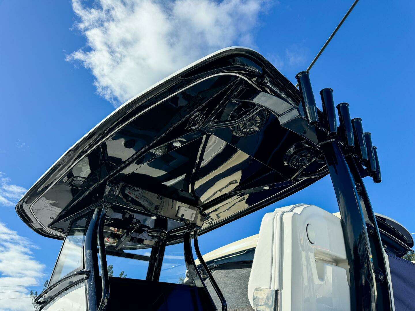 Advanced handling comes standard with Mercury Joystick control and an Edson steering wheel, making docking and tight-quarters maneuvering effortless. At the helm, you’ll find a premium electronics suite featuring dual Garmin GPSMAP® 8616xsv displays, paired with a Garmin GT15M-THF thru-hull transducer (600 kW, 20° CHIRP) for outstanding clarity and depth performance. A Garmin 215 AIS VHF ensures safety and communication on every run.