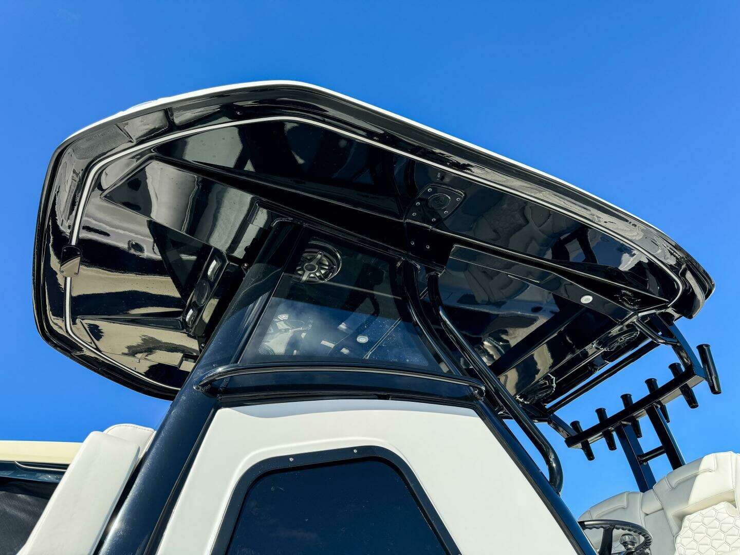 Finished in a striking Onyx Limited Edition blackout package, this boat features black powder coating, white hull sides with color bottom, and matching dual 10’ black Power-Pole Blades with brackets. Additional upgrades include a trolling motor plug and wiring, 3-bank charger system, and Mercury VesselView 5 for real-time engine and system monitoring.