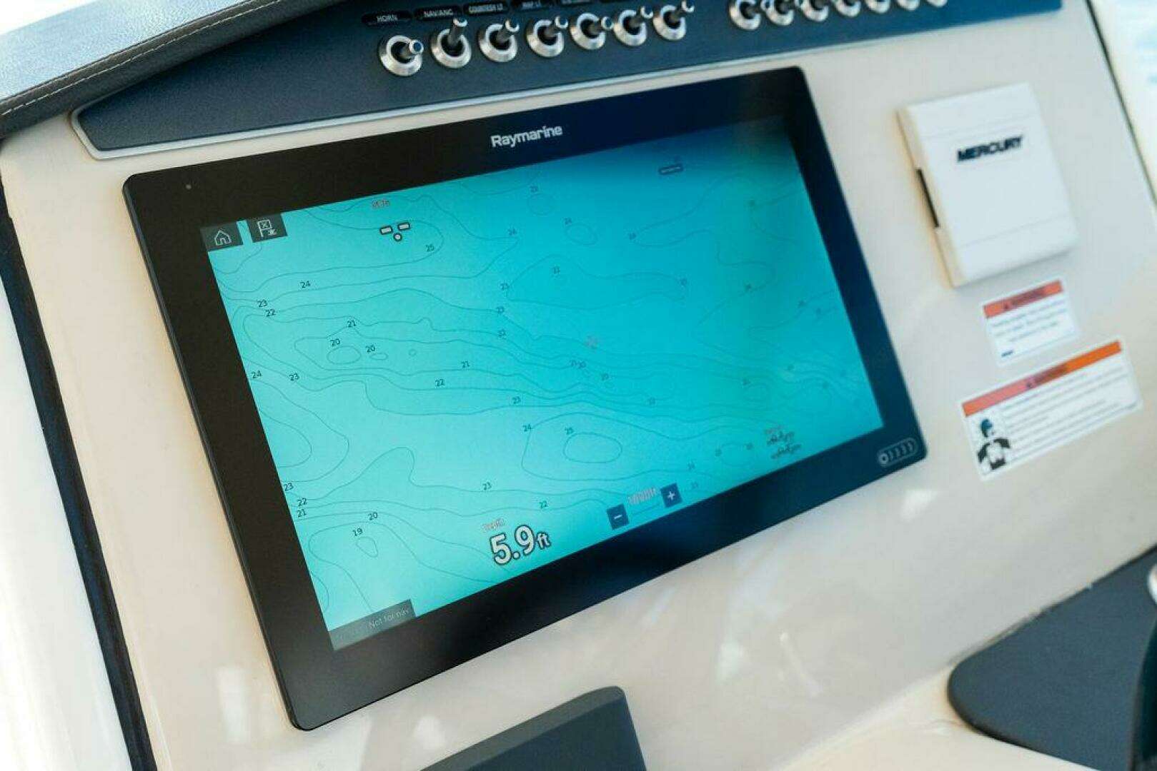 - 300 V8 DTS White Dual Mercury Verado engines with Joystick Piloting. Skyhook/autopilot keypad and functionality.