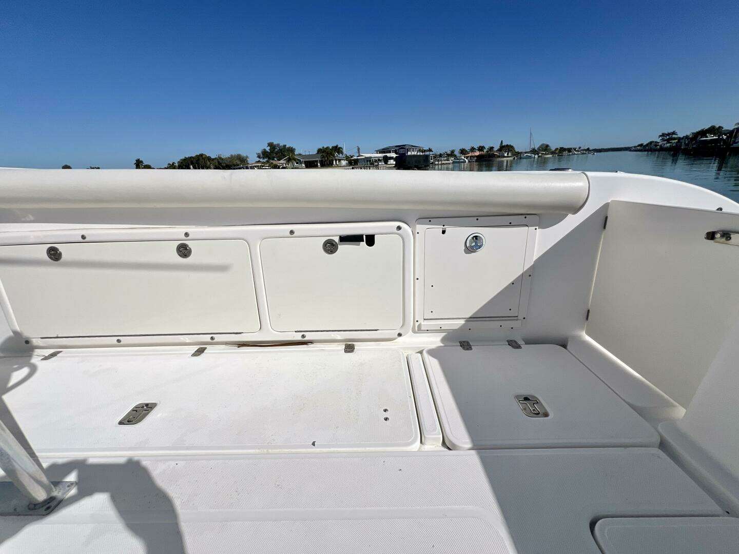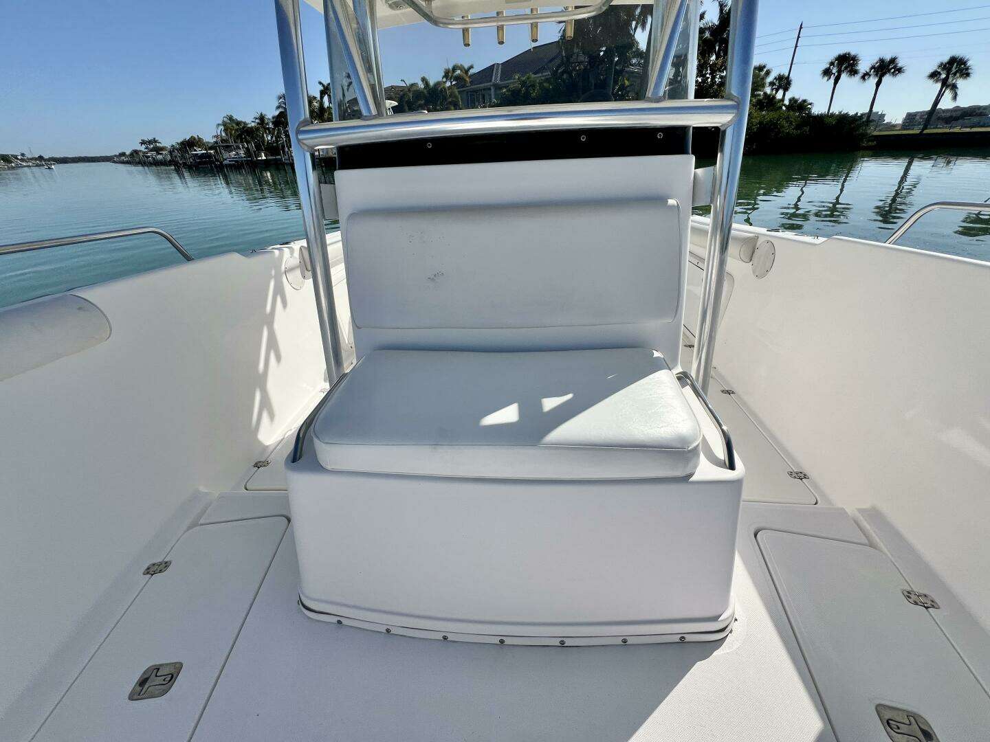 This boat is lift kept, and powered by fuel efficient and reliable Yamaha F250s.