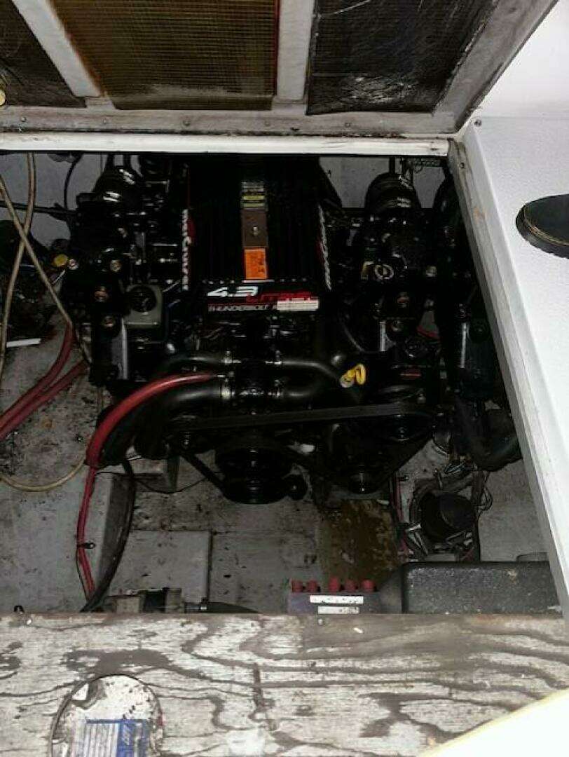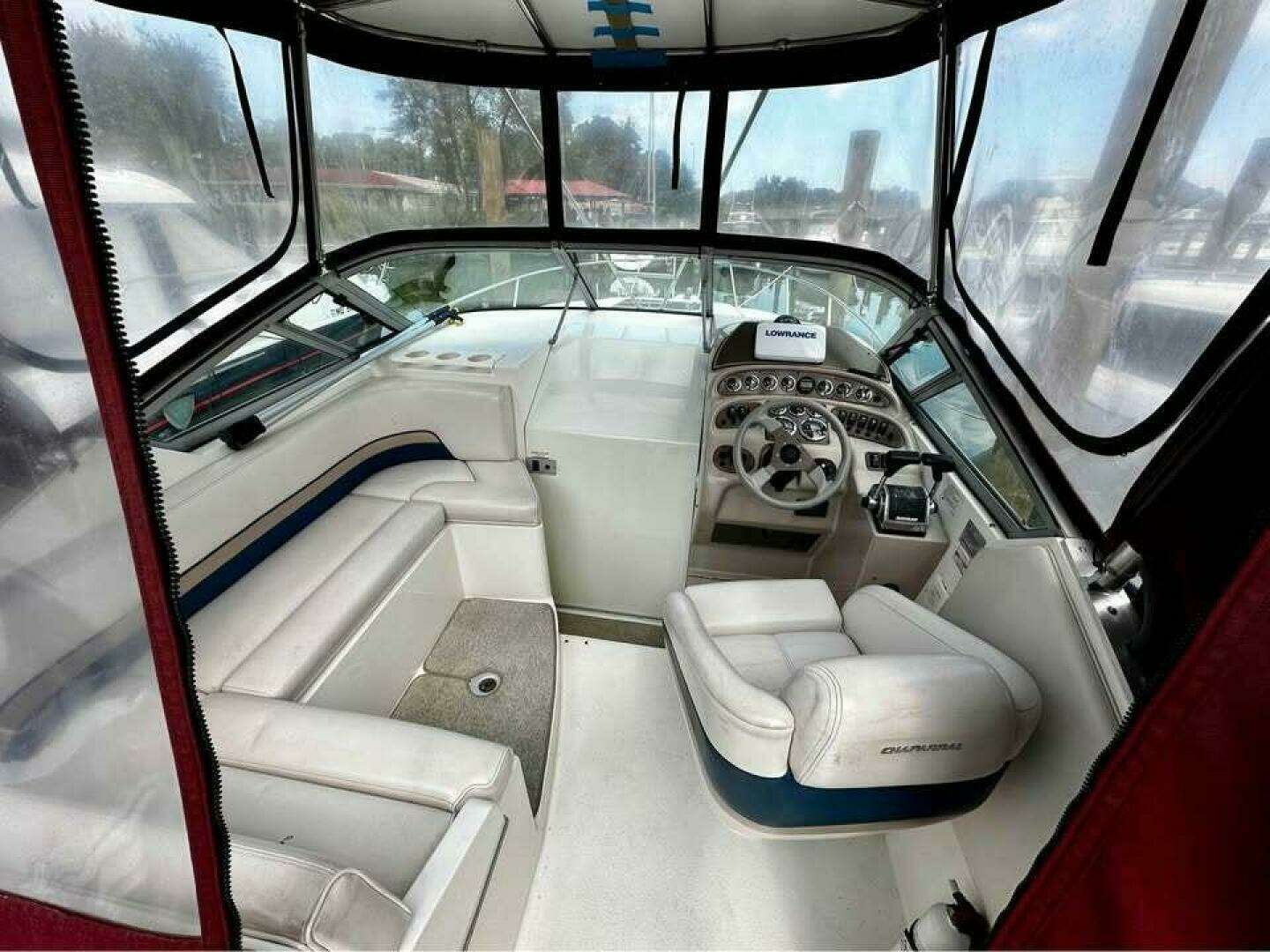 Dorisea is a well-maintained 1999 Chaparral 29. These express cruisers are known for their aesthetic appeal, comfortable cabins, and excellent performance. Dorisea has unique Chaparral badging of “Angler 320” and has rod holders incorporated into the cockpit arch. There is a large swim platform that’s ideal for fishing and launching your paddleboards or kayaks. The cockpit area has a comfortable settee to port and a full canvas enclosure. A voluminous cabin below features a v-berth (sleeps two), a large dinette with wraparound seating, aft cabin, and a galley complete with a refrigerator, sink, stove, and microwave. The Signature 29 has a beam of 9 feet 9 inches, making this well-appointed cabin feel quite spacious. There is an enclosed head with a shower, and while connected to shore power, you will enjoy the comfort of the reverse cycle air conditioning.