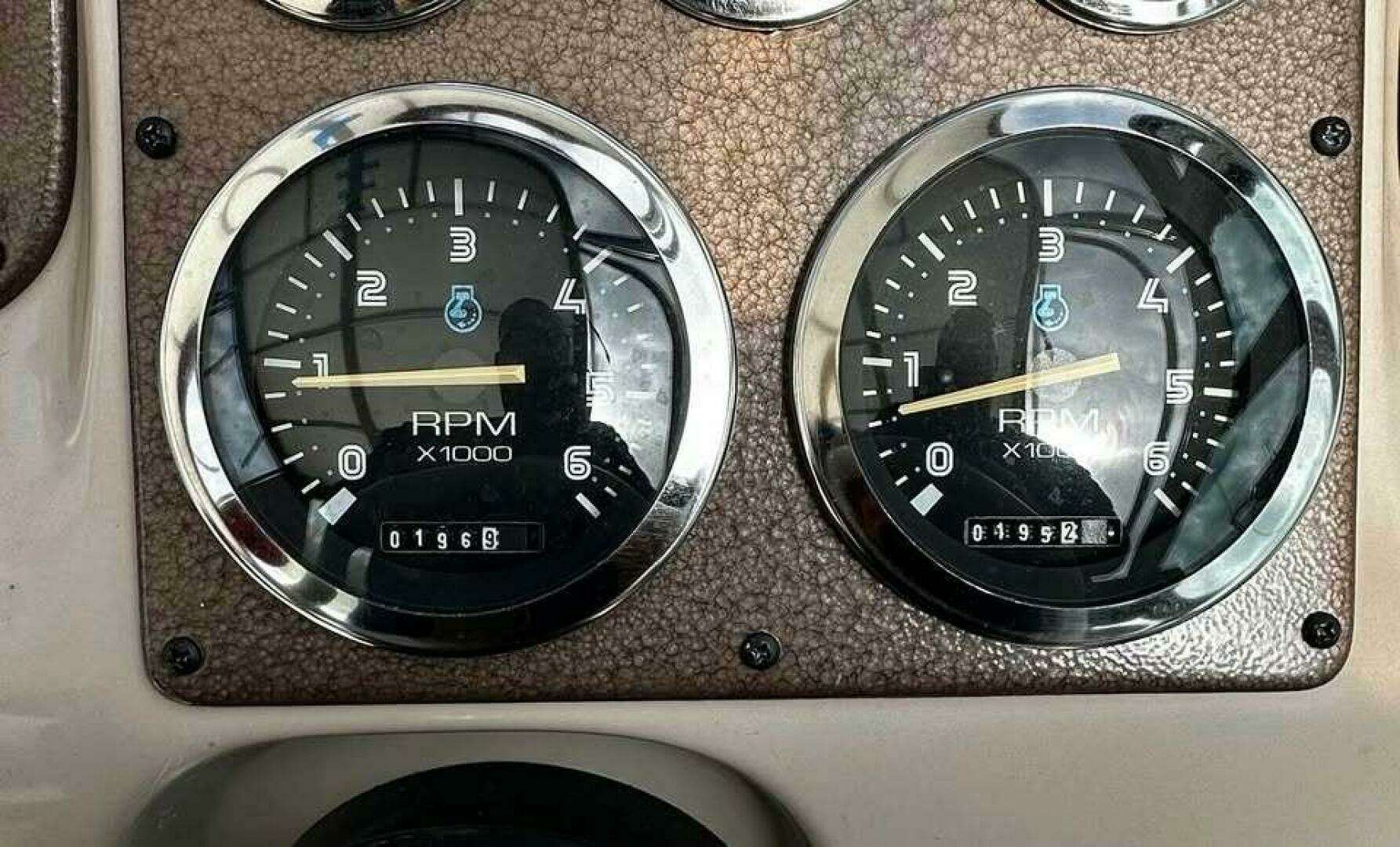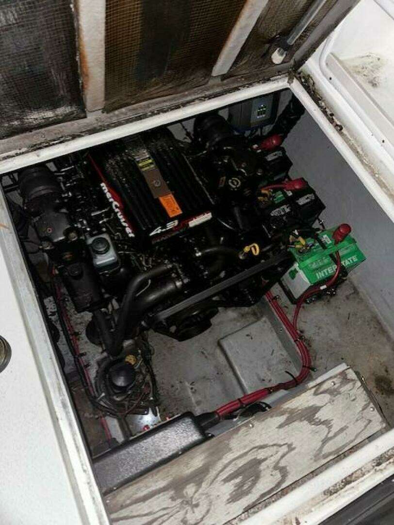Dorisea is powered by twin Mercury MerCruiser 4.3L V6 engines (190 HP each) coupled to Bravo sterndrives, and these engines both have less than 200 hours on them!! There is a dedicated 12V starter battery for each engine, one 12V house battery, and an onboard charger. At the helm station, a Lowrance combo unit serves as your fish finder, GPS and depth display. The Signature 29 features a modified-V hull design, providing a steady ride in rougher conditions and the stability needed for comfort on anchor or at the dock. Draft with the sterndrives lowered is only 33 inches, which is ideal for cruising on the Chesapeake. Call today to schedule your showing of this exceptional express cruiser!