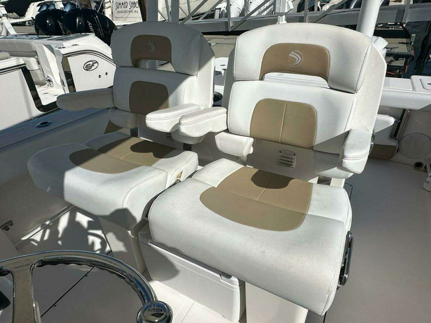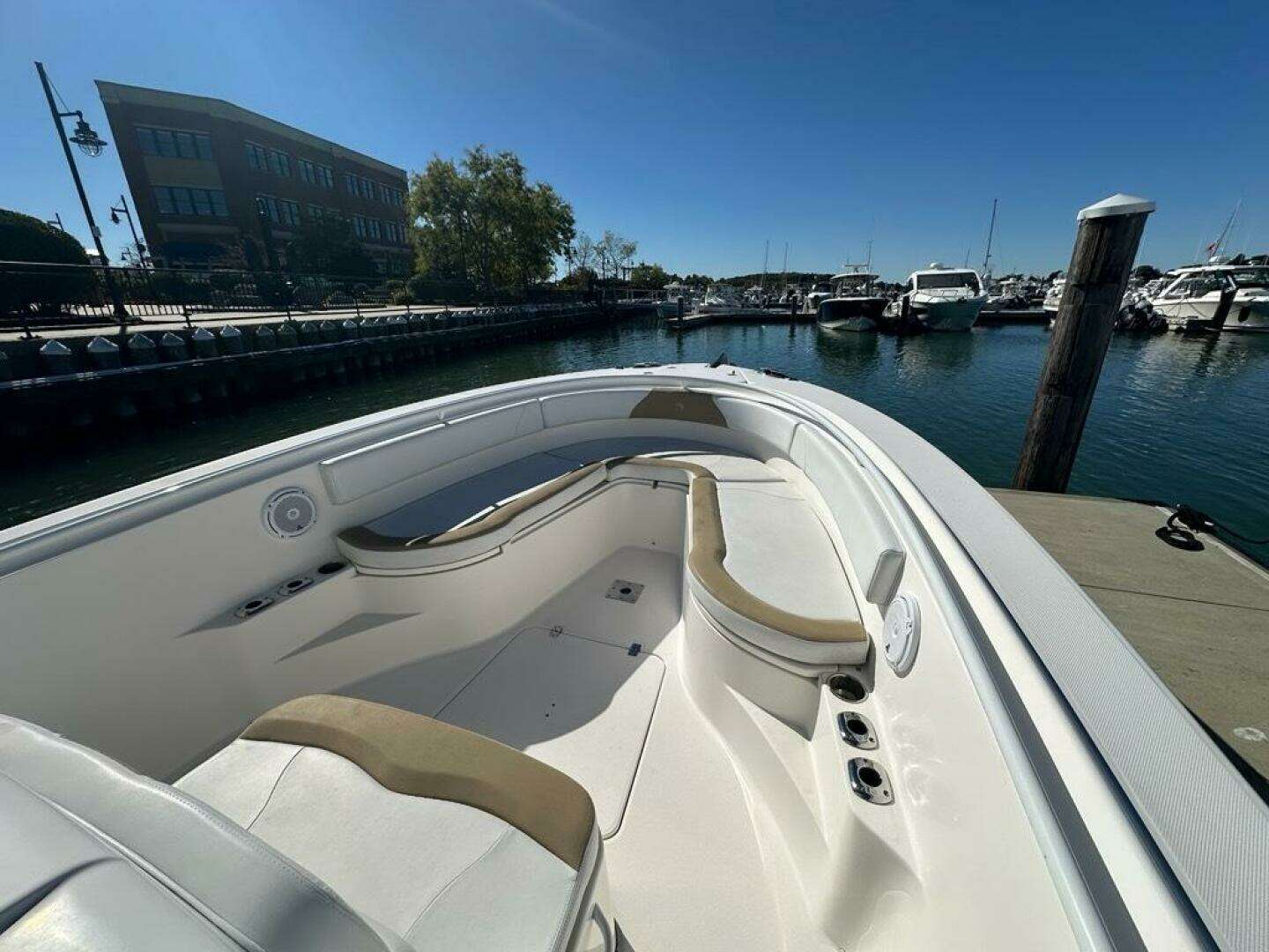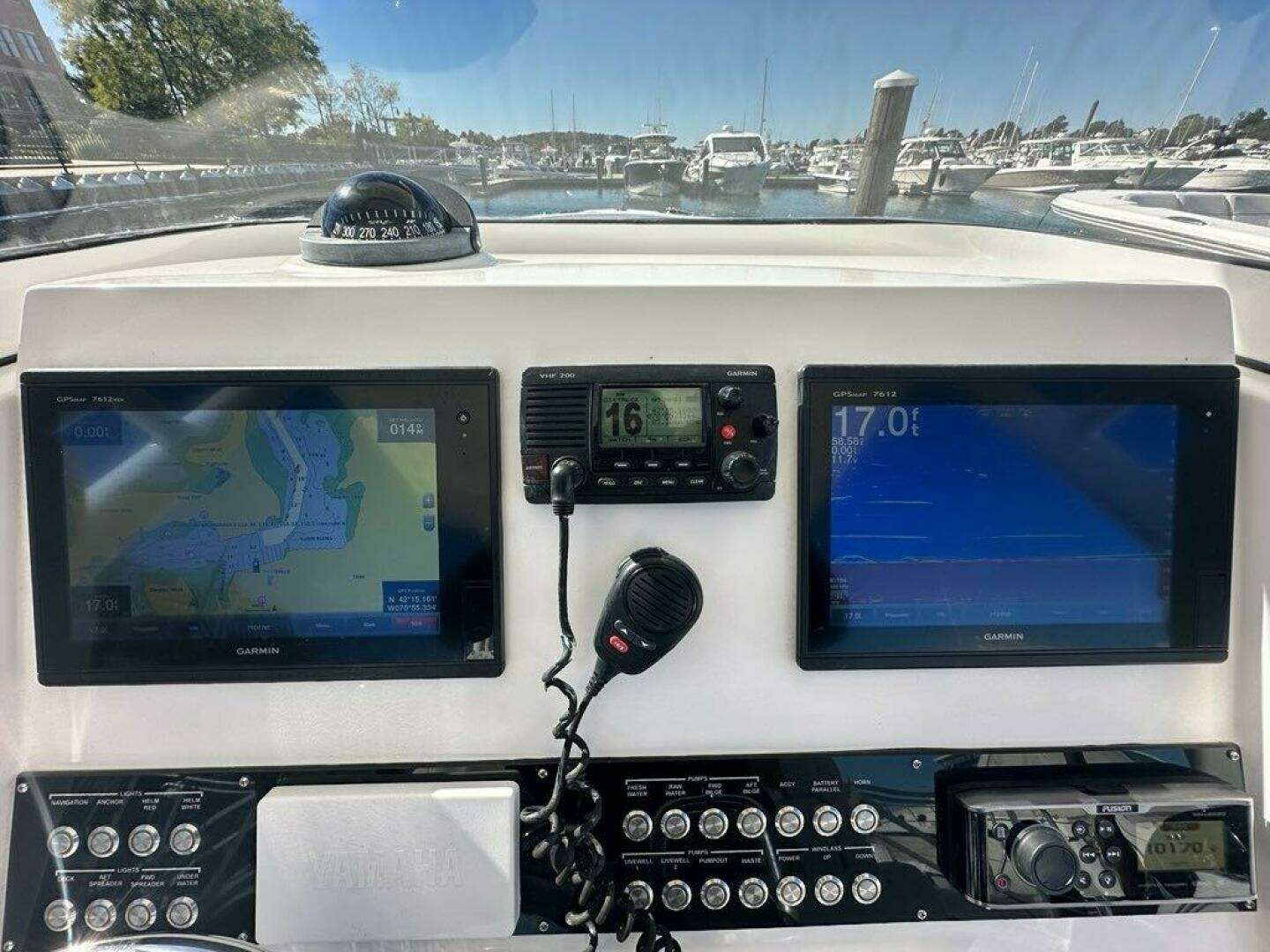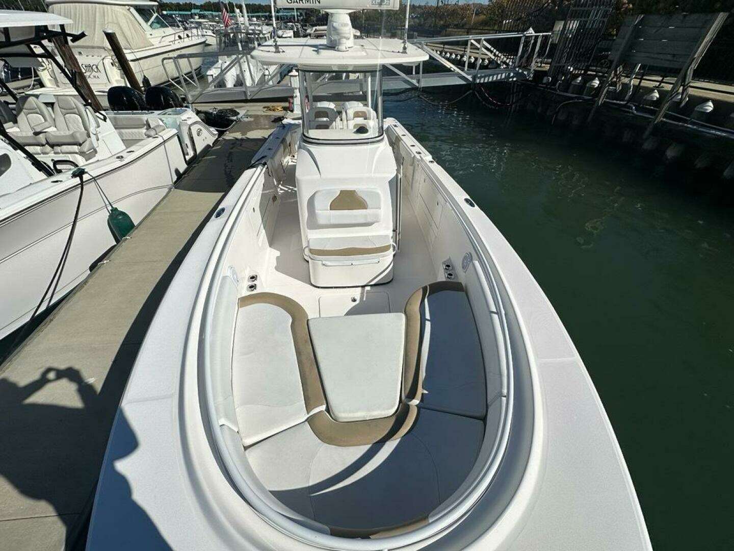 "Brown Eyed Girl" is a great, low hour 320 Edgewater being offered by her original owner. She features twin 300 Yamaha 4-Strokes with 300 hours, (2) Garmin 7612 Chart, FF and Open Array Radar, Spot Light, Fusion Stereo, Marine Head in Console as well as Anchor Windlass.
