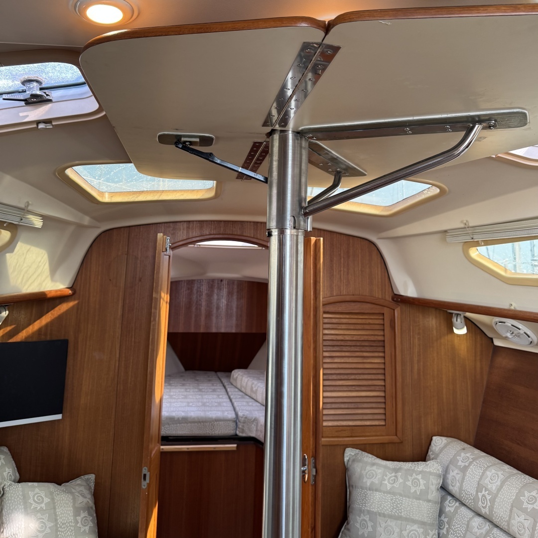The 2 cabin layout provides privacy for guests or kids and combined with the settee the boat can technically sleep 6. Although 2-4 is more realistic.