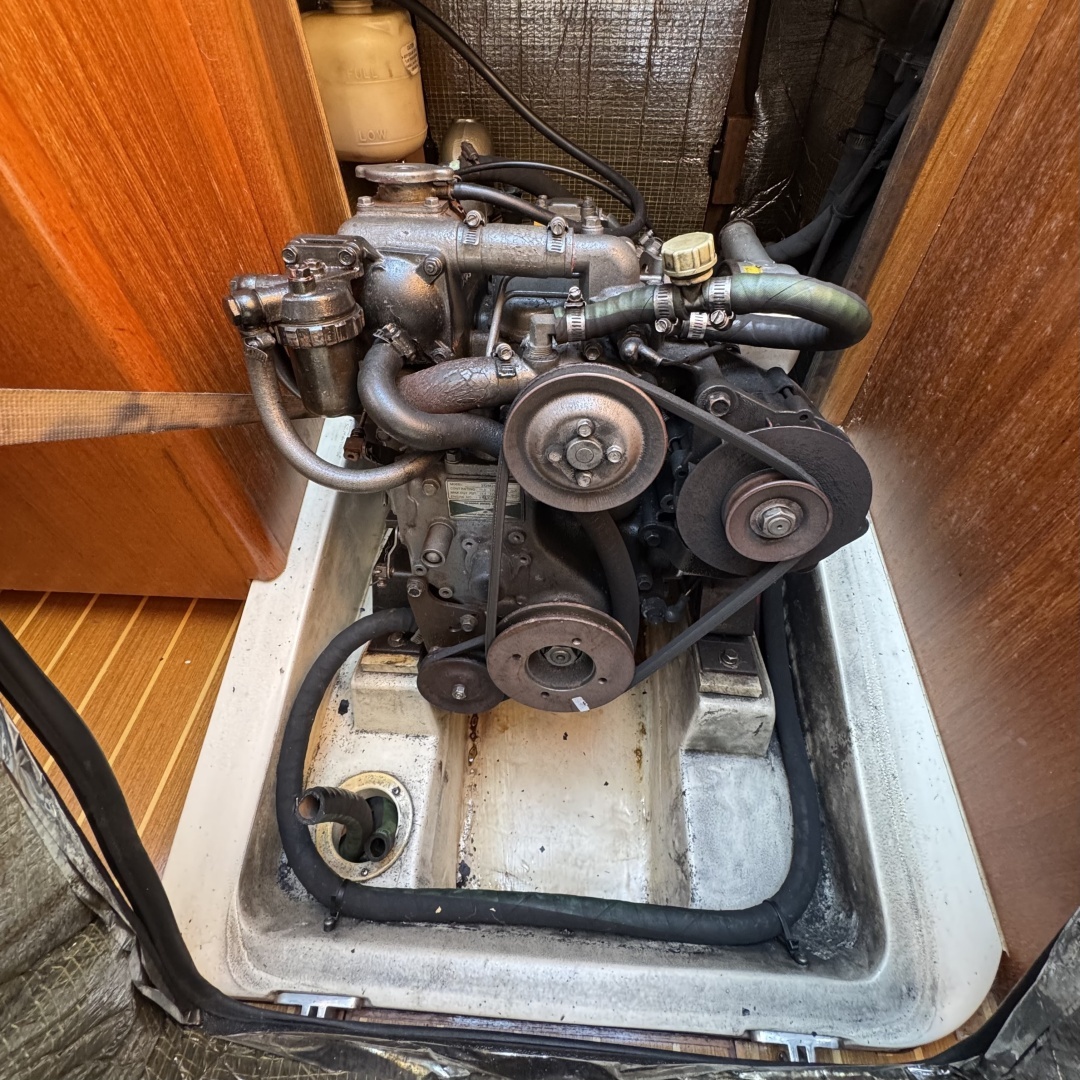 The engine has been trouble free and low hours. While motoring the engine pushes the boat at 4 to 5 knots at 2600 rpm. This means low fuel consumption and a long range while motoring.