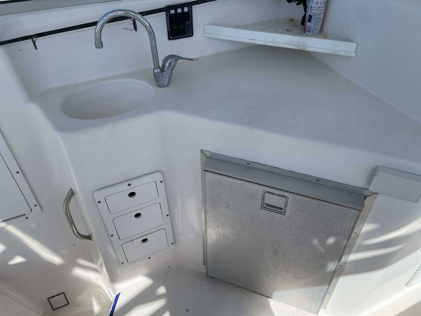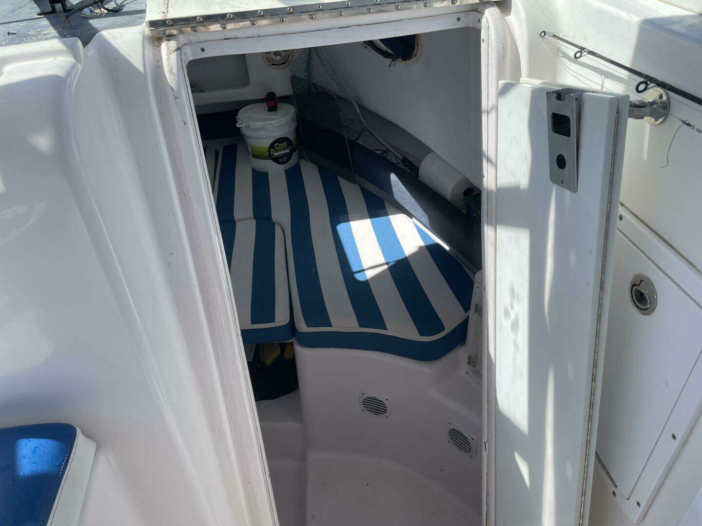 - Sleeps two in a spacious forward berth