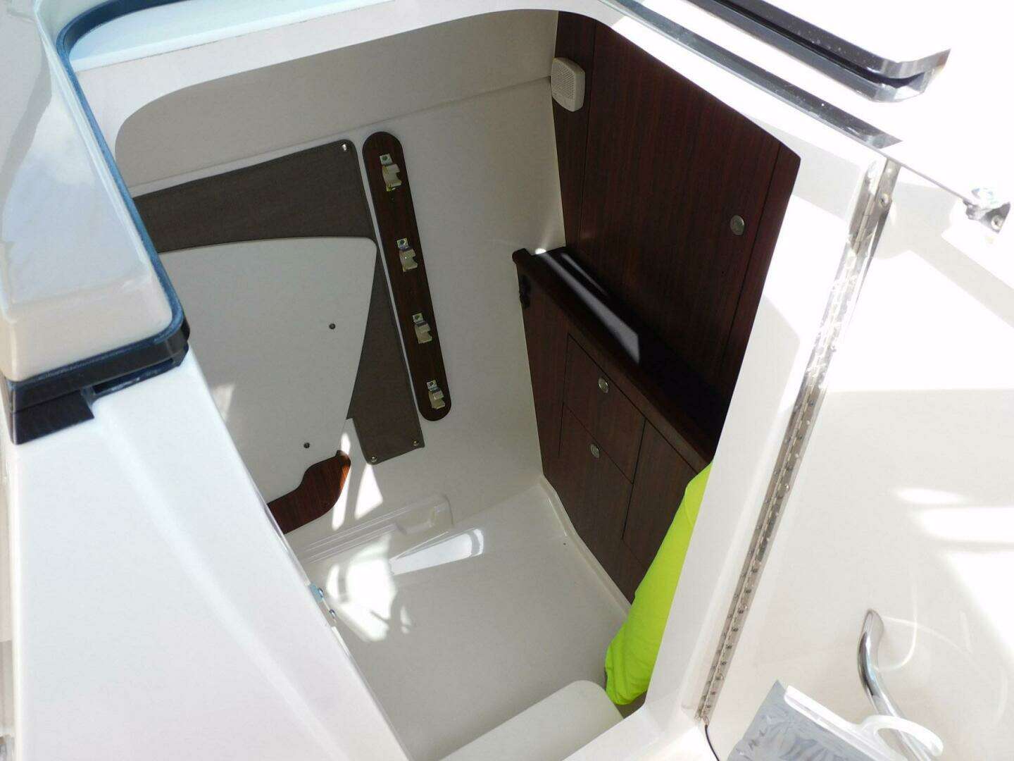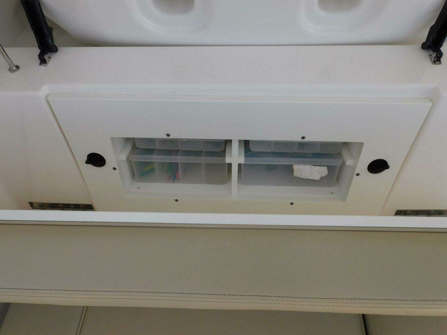 - Port and starboard forward coaming boxes with four (4) drink holders, grab rails, courtesy lights, storage keeper,