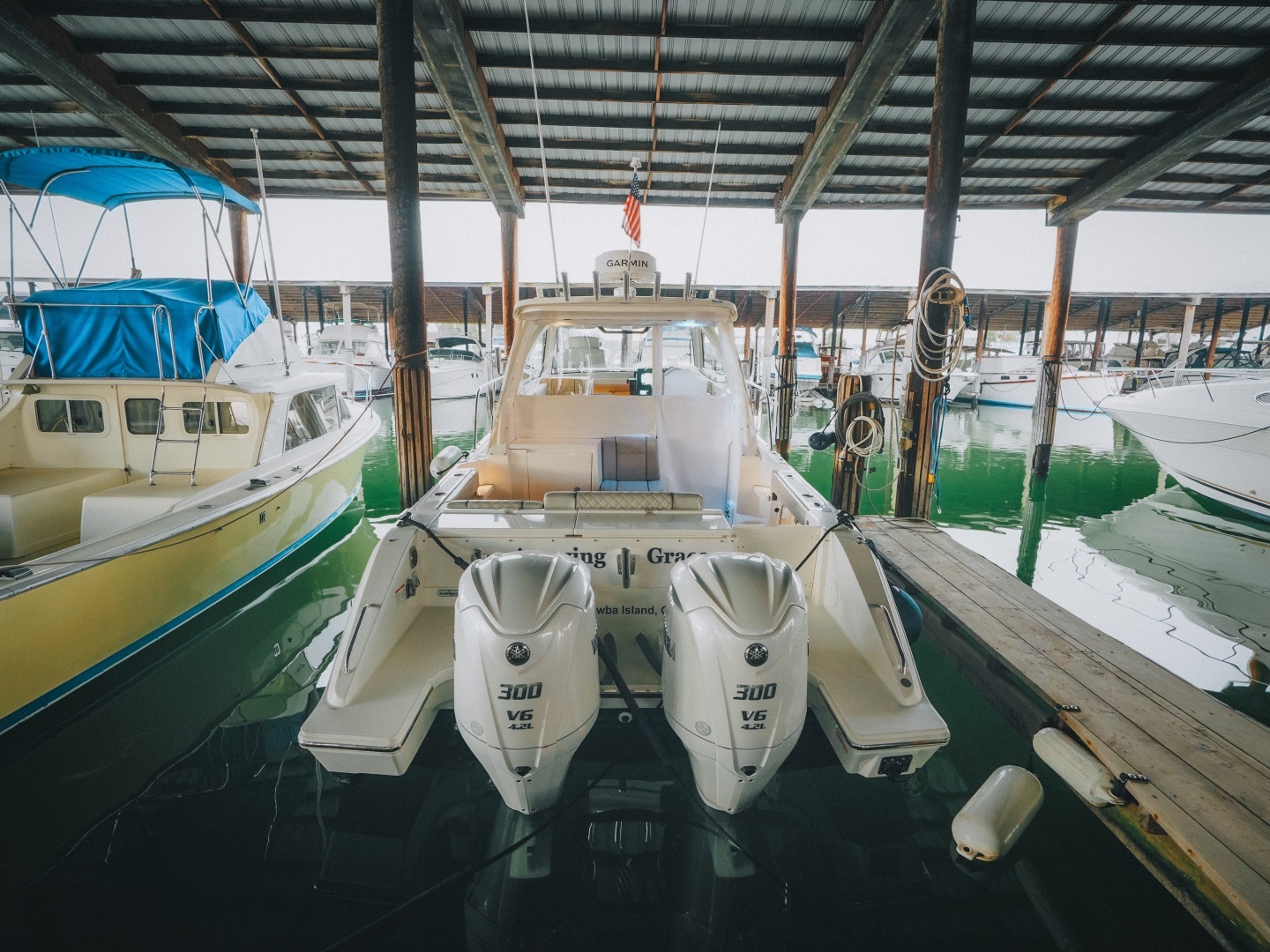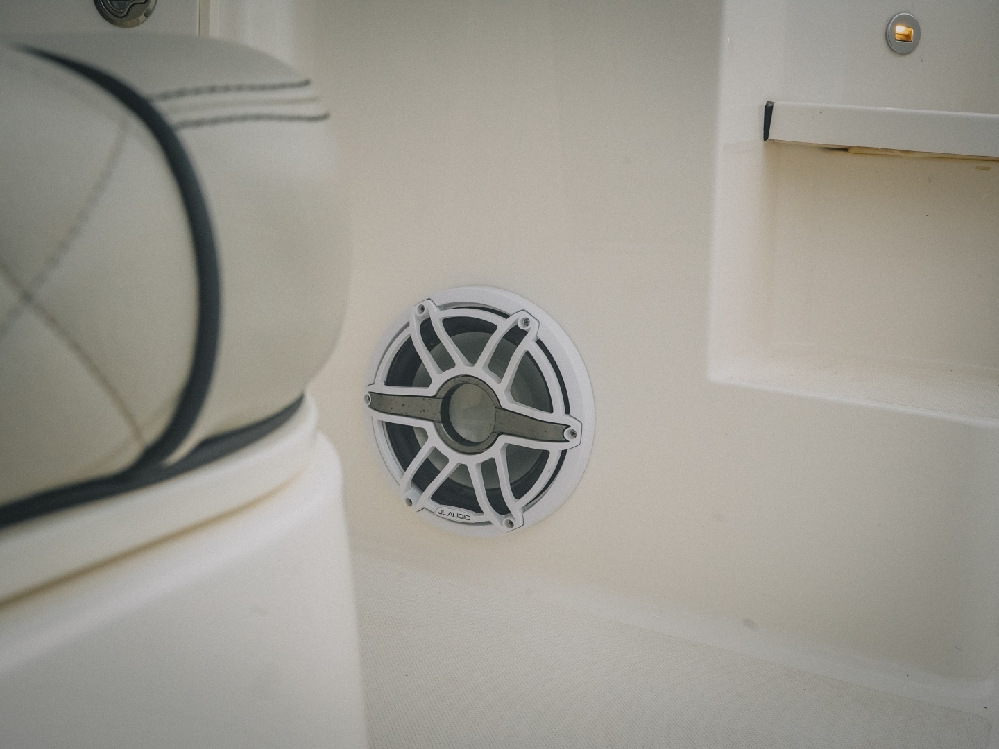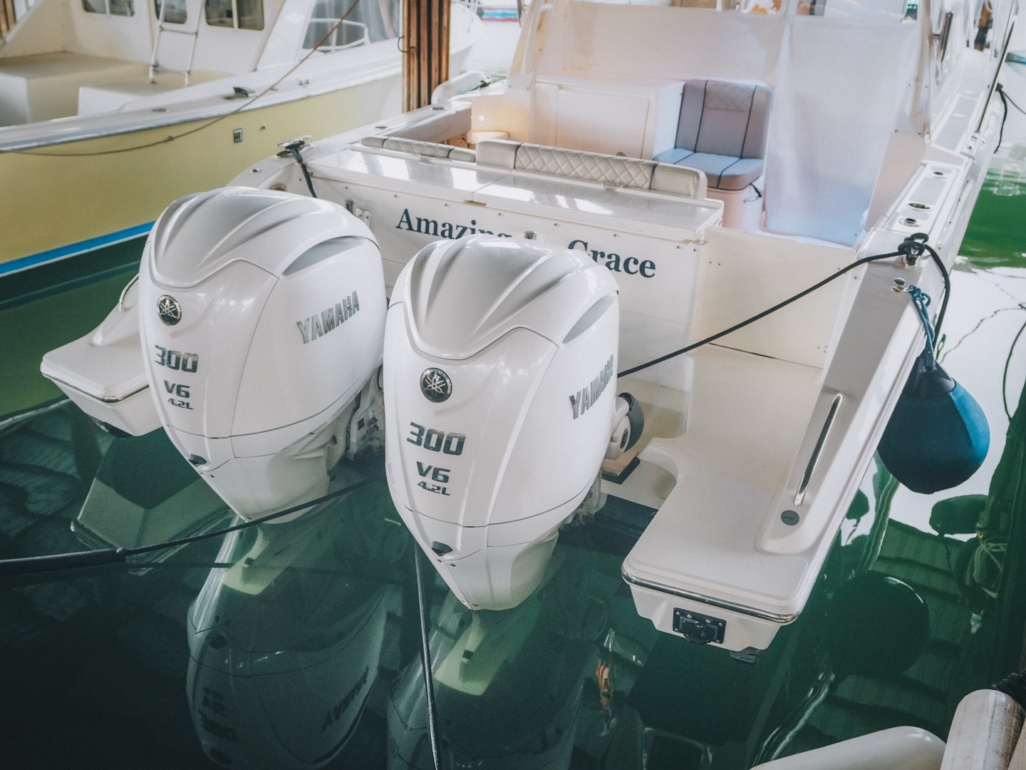 Freshwater & Brackish water-kept throughout lifetime, professionally serviced, and stored under cover, she shows like new and is completely turnkey. Powered by twin Yamaha 300s (165 hours) and backed by Yamaha warranty through August 2028, this boat offers both performance and peace of mind.