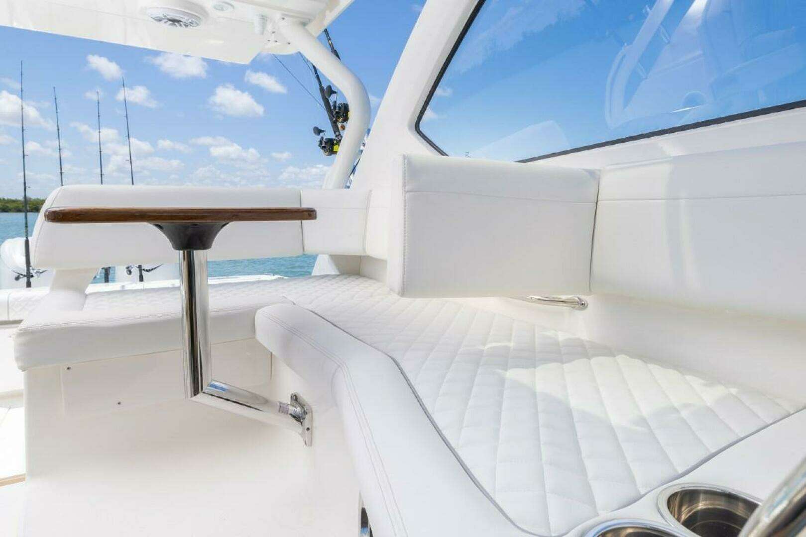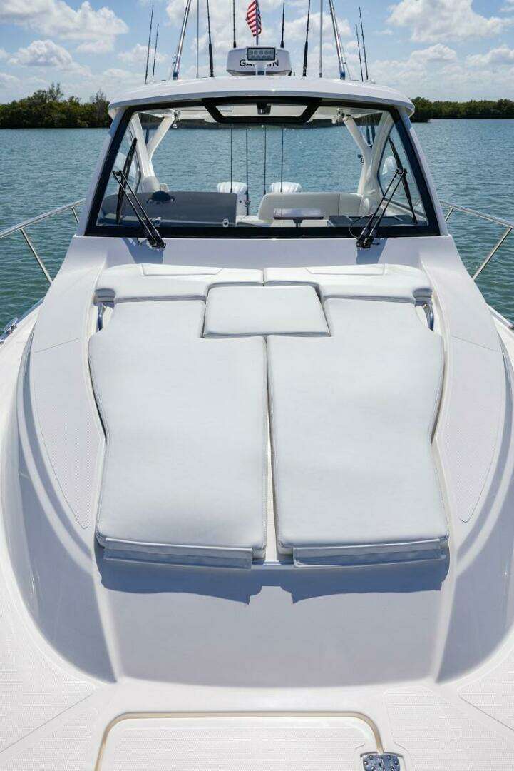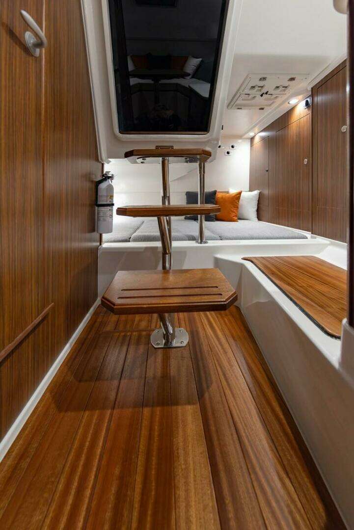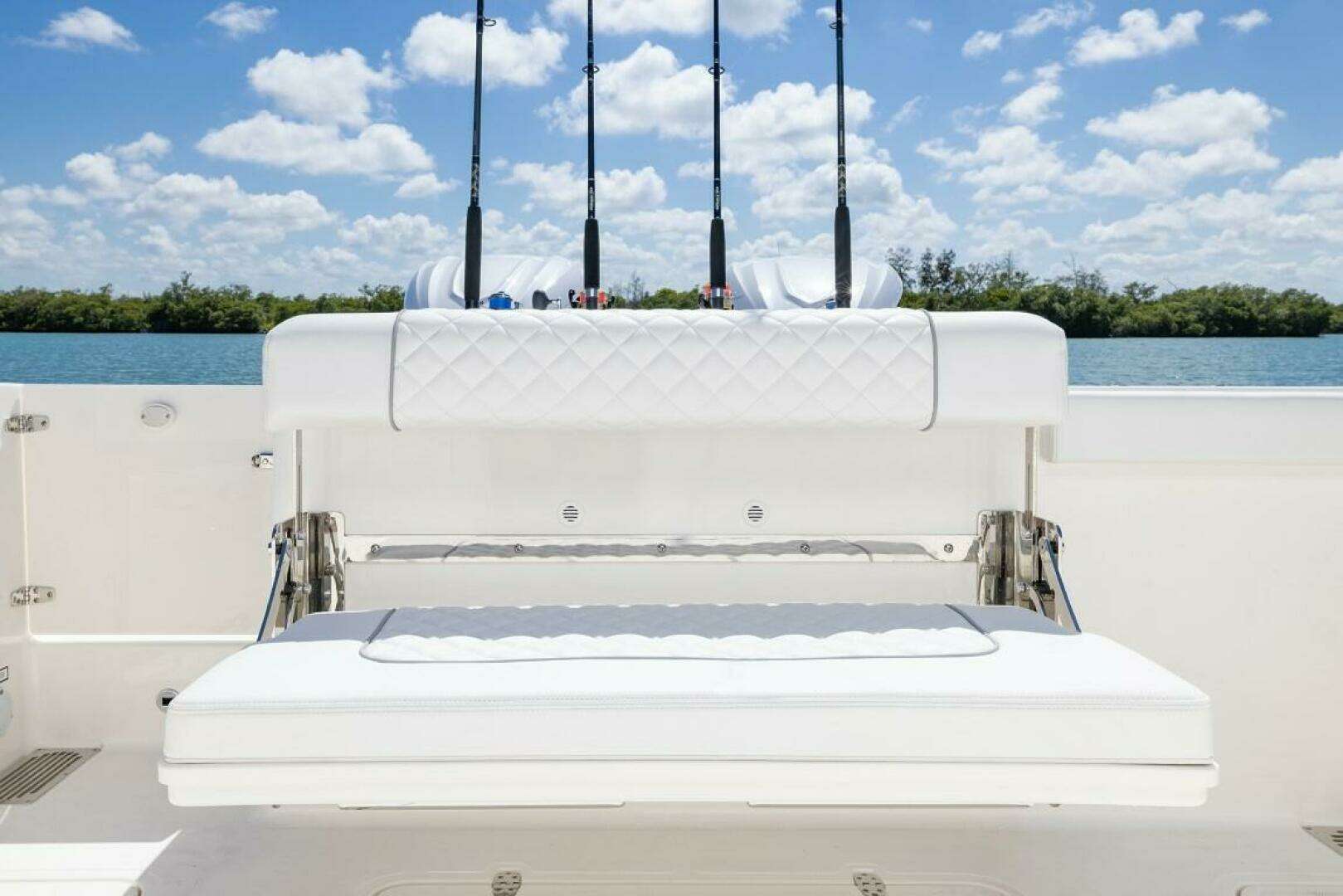 The centerline walkway allows guests to move with ease from zone to zone with minimal conversions and maximum enjoyment. Meals can be prepared in either the cabin or the cockpit entertainment center which features a grill and sink. Dual refrigerators provide cold storage in both areas.