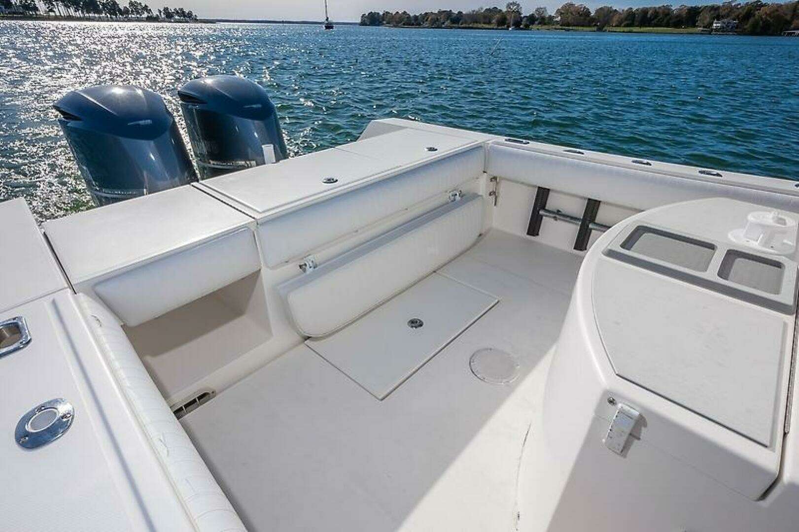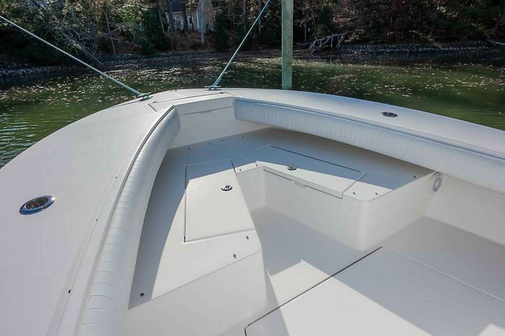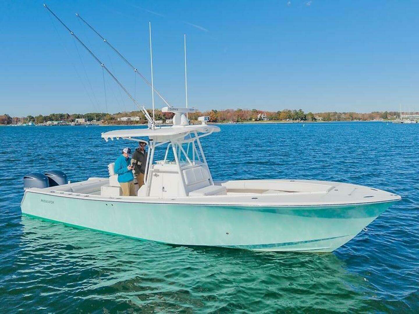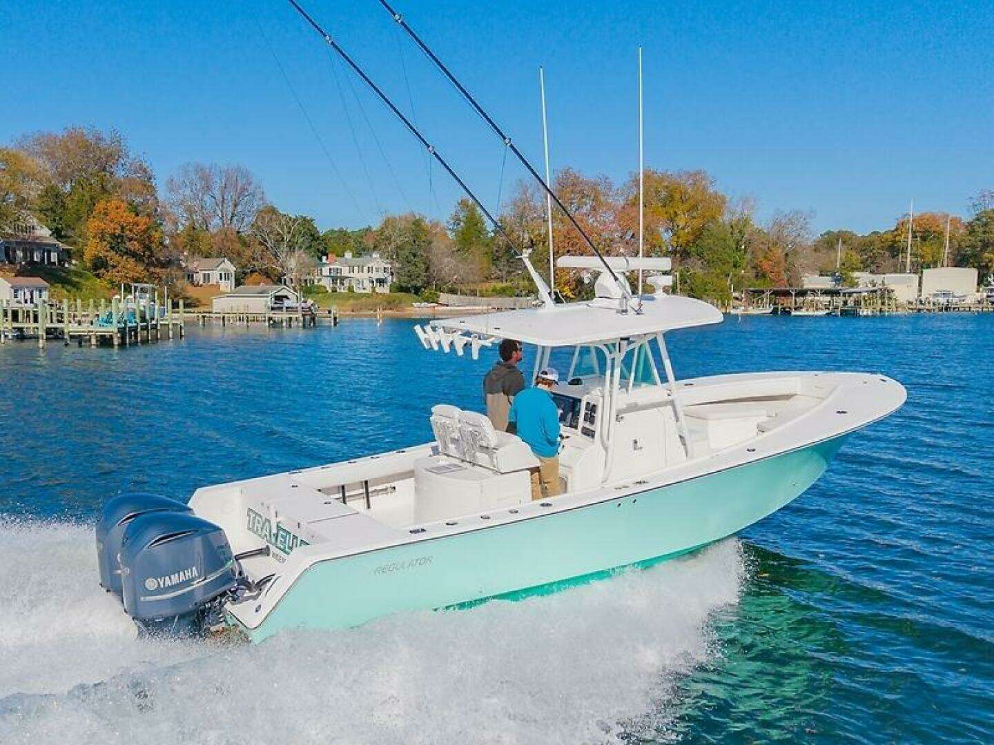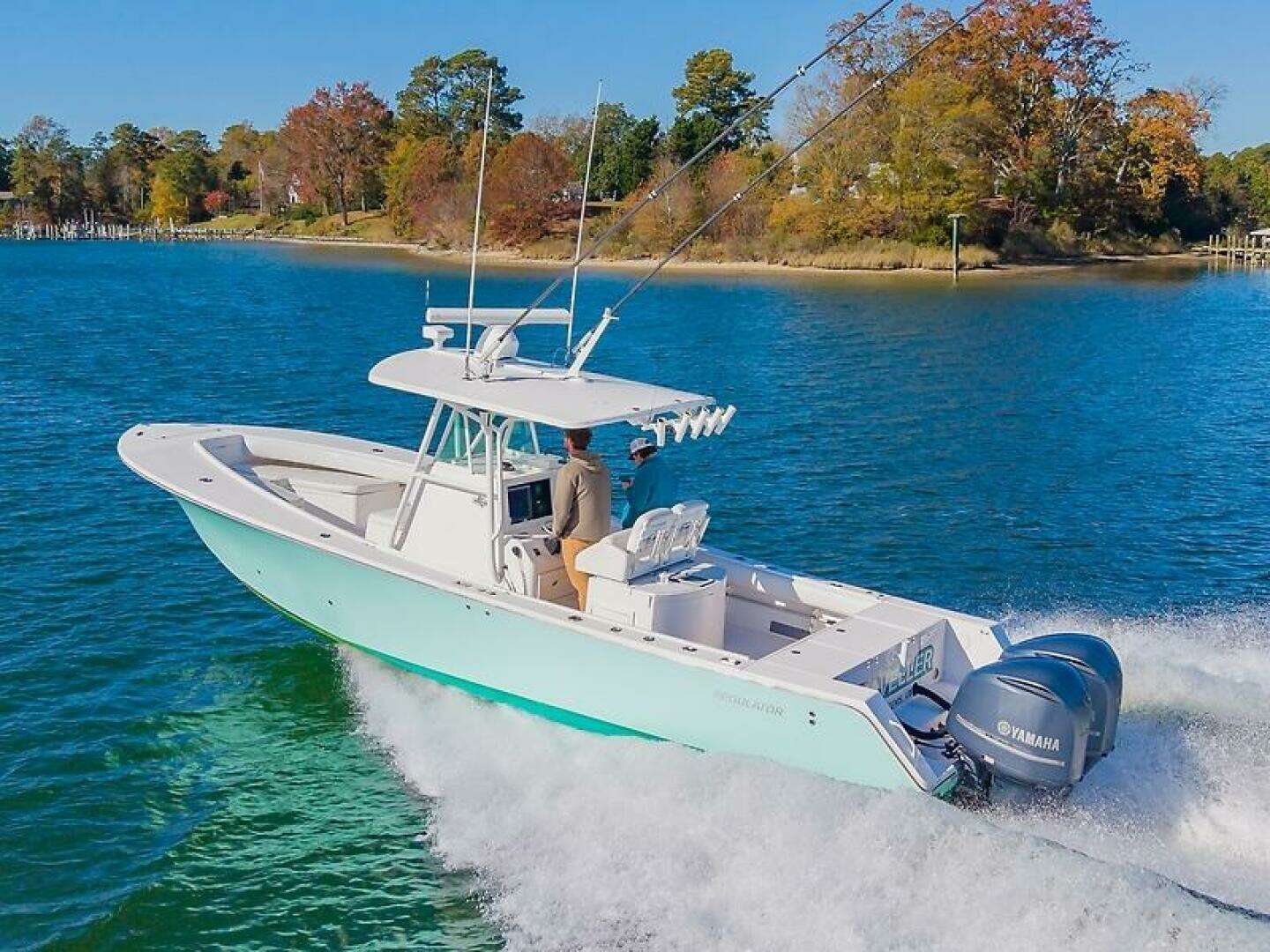 The Regulator 32FS is built for serious offshore anglers, delivering one of the smoothest and most solid rides in its class. Its strength comes from the Regulator’s exclusive Fiberglass Grillage System and a heavy-duty all-fiberglass hull with a sharp-entry Deep-V and Carolina flare for a dry, comfortable ride. Designed for both performance and functionality, the 32FS features generous forward seating, 360° coaming pads, abundant storage including large fish boxes and locking rod compartments, a 40-gallon livewell, and a spacious 6'2" stand-up head with shower and sink. The rigging station provides tackle storage, a freshwater sink, rocket launchers, and more. Powered by twin Yamaha F350s with Command Link digital controls, the 32FS offers responsive handling and impressive offshore capability. Popular options include the solid fiberglass T-top and Lee Sidewinder outriggers.