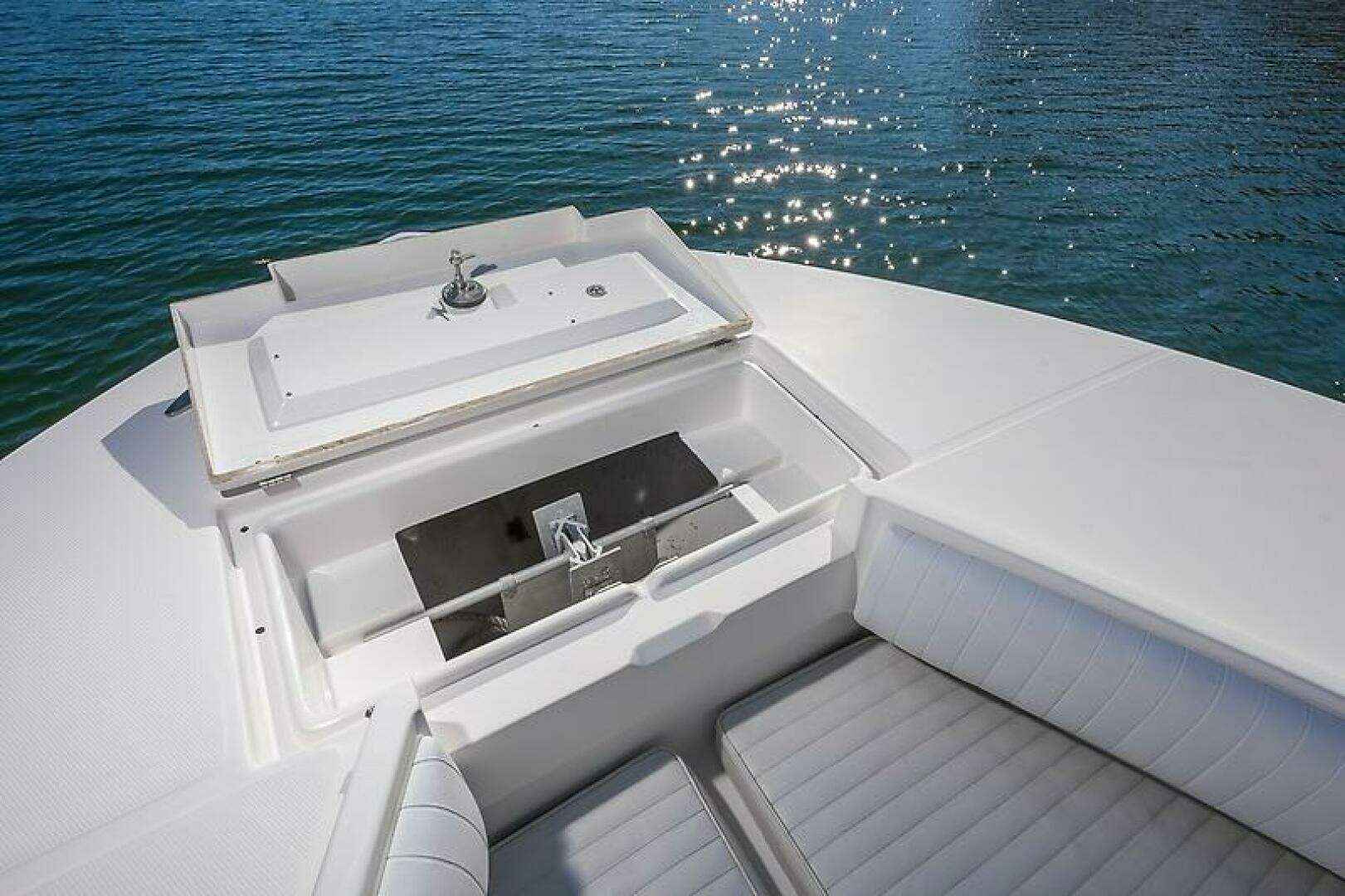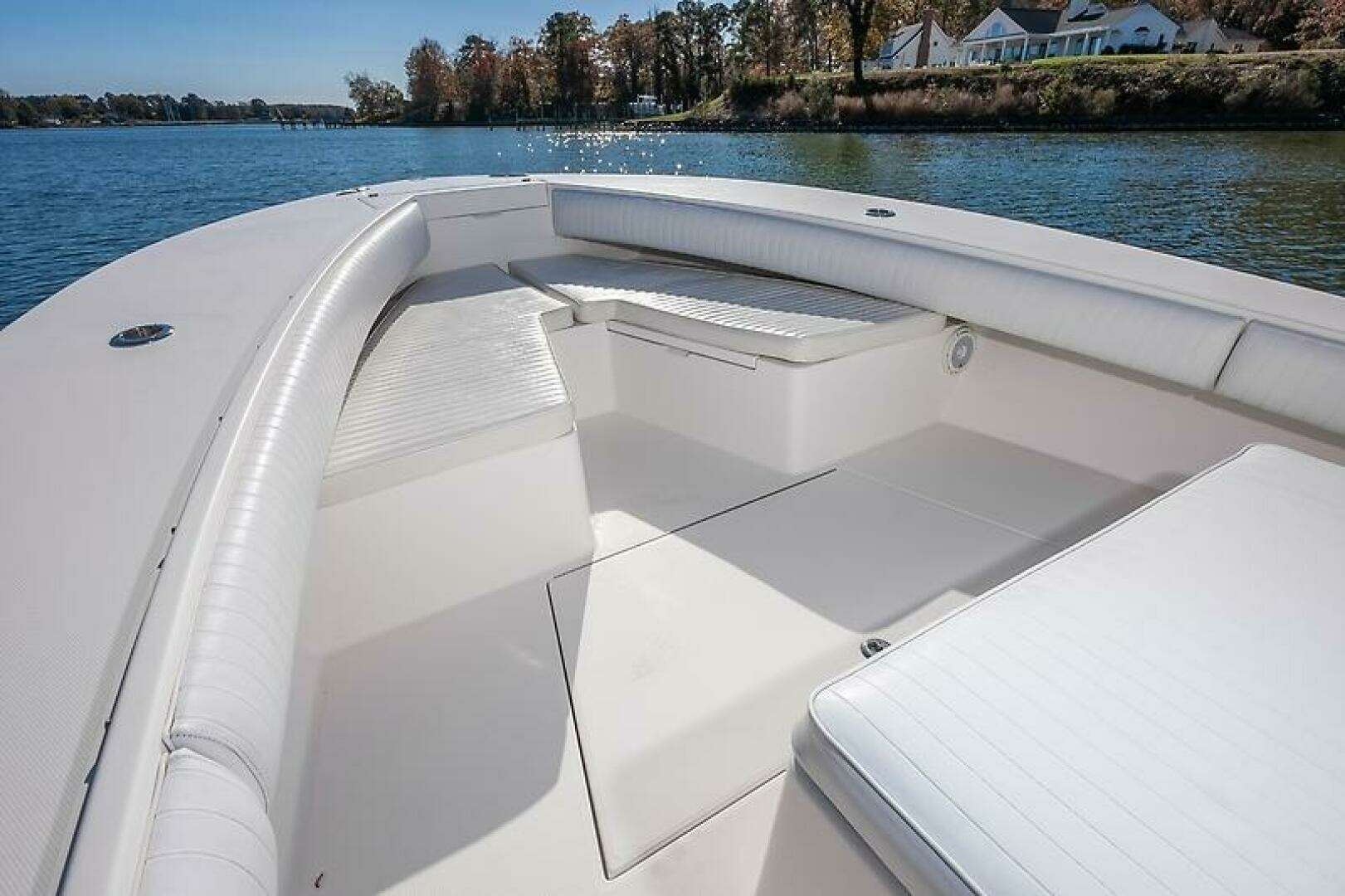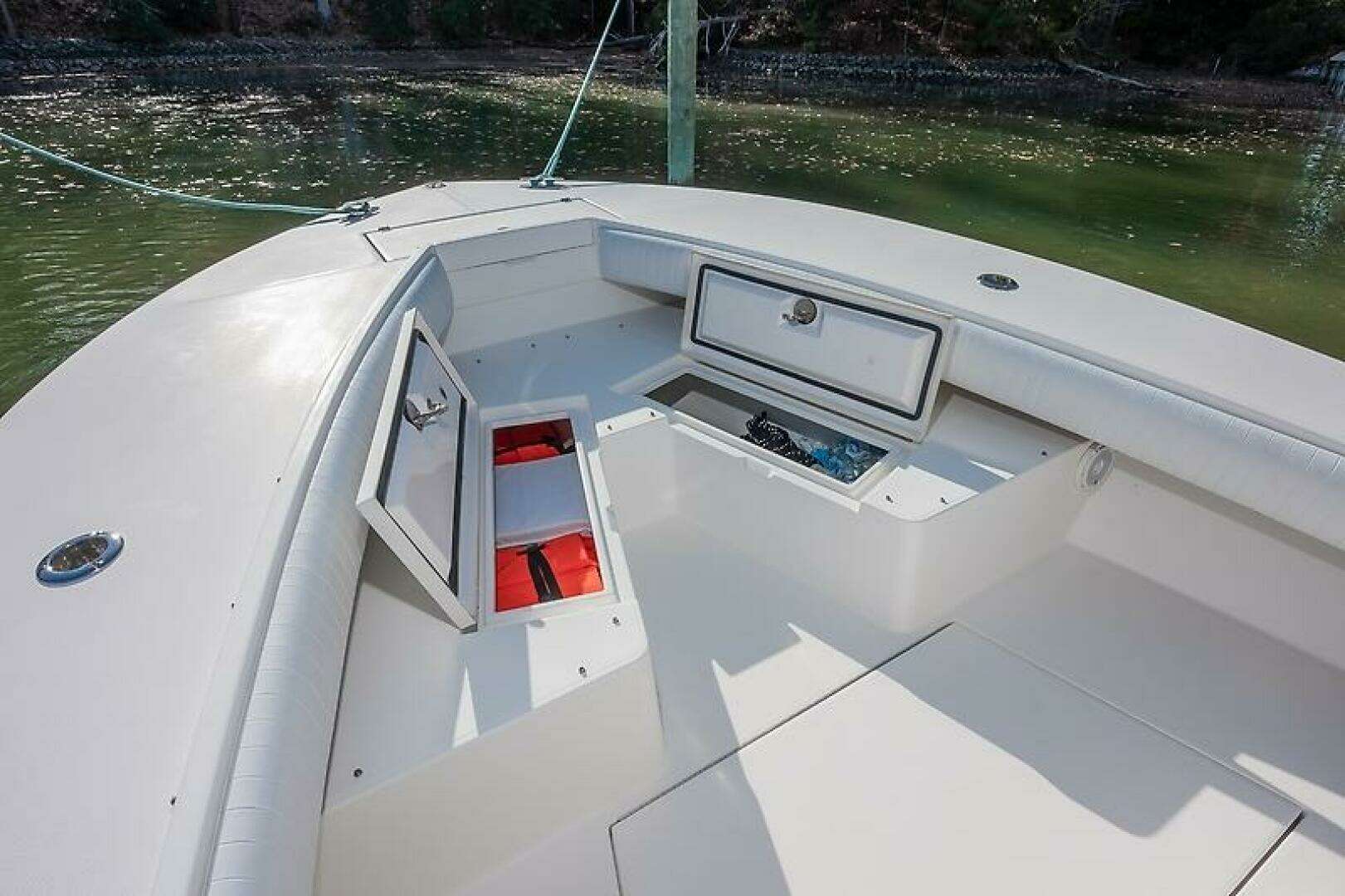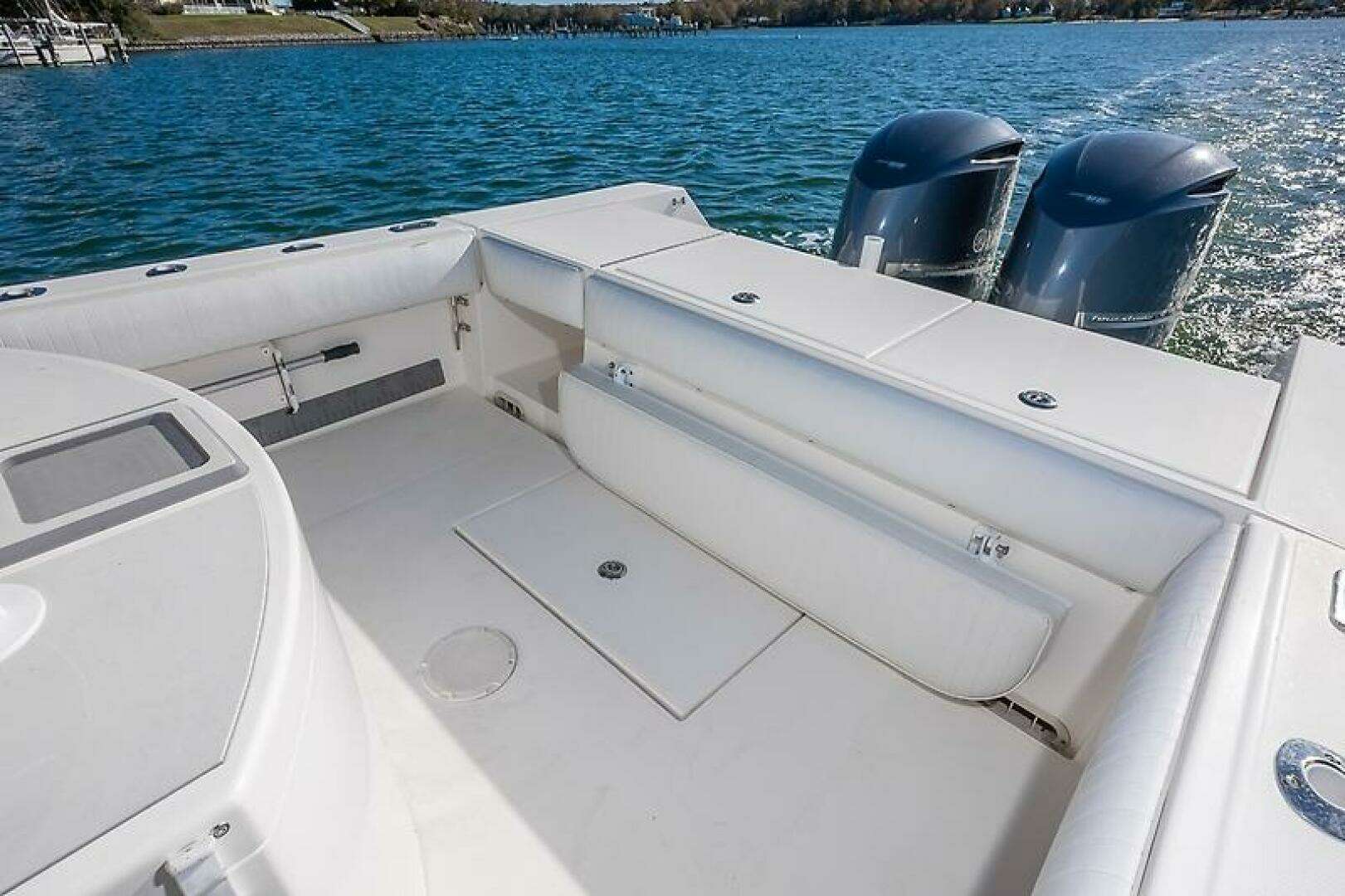The Regulator 32FS is built for serious offshore anglers, delivering one of the smoothest and most solid rides in its class. Its strength comes from the Regulator’s exclusive Fiberglass Grillage System and a heavy-duty all-fiberglass hull with a sharp-entry Deep-V and Carolina flare for a dry, comfortable ride. Designed for both performance and functionality, the 32FS features generous forward seating, 360° coaming pads, abundant storage including large fish boxes and locking rod compartments, a 40-gallon livewell, and a spacious 6'2" stand-up head with shower and sink. The rigging station provides tackle storage, a freshwater sink, rocket launchers, and more. Powered by twin Yamaha F350s with Command Link digital controls, the 32FS offers responsive handling and impressive offshore capability. Popular options include the solid fiberglass T-top and Lee Sidewinder outriggers.