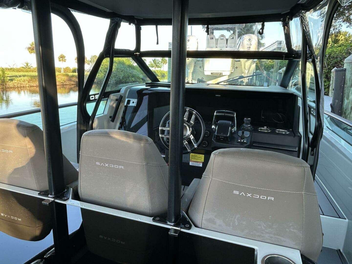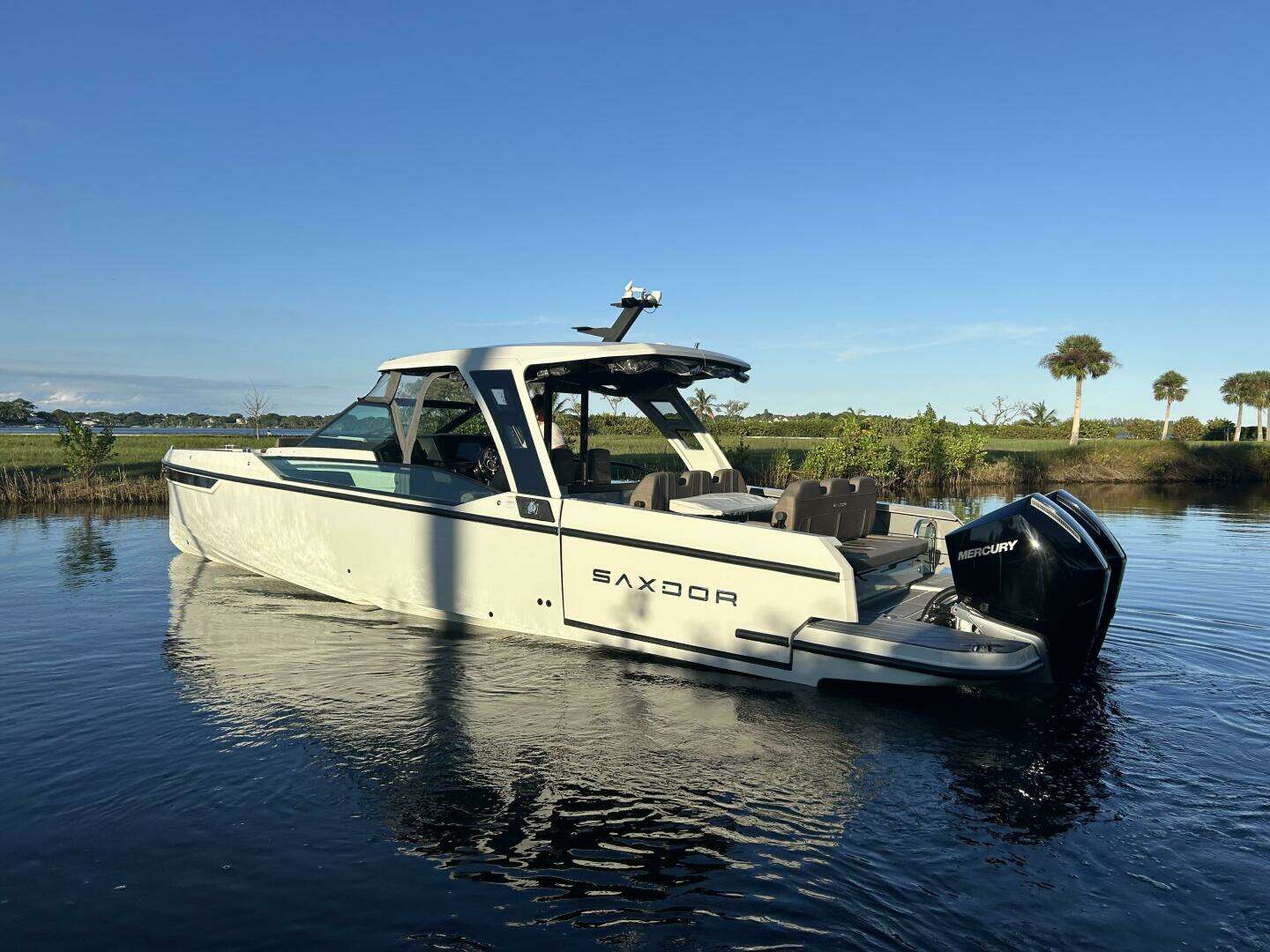 2022 SAXDOR 320 GTO. THE LATEST IN PERFORMANCE AND DESIGN FROM THE ORIGINATOR OF AXOPAR. THE UNIQUE TERRACE DOORS SEPARATE THIS VESSEL FROM MOST ALL OTHERS IN THE INDUSTRY. LARGE CABIN WITH SEPARATE BATHROOM AND IMPROVED HEADROOM OVER HIS PREVIOUS BRAND. WET BAR AND SINK WITH TWIN FRIDGES AND INDUCTION GRILL. THE TWIN 300 VERADO’S PROVIDE FOR SPEED AND EFFICIENCY AND A THRILLING EXPERIENCE. ONLY 256 HOURS AND NO BOTTOM PAINT. LOCATED IN STUART, FLORIDA AND AVAILABLE FOR VIEWING ANY DAY.