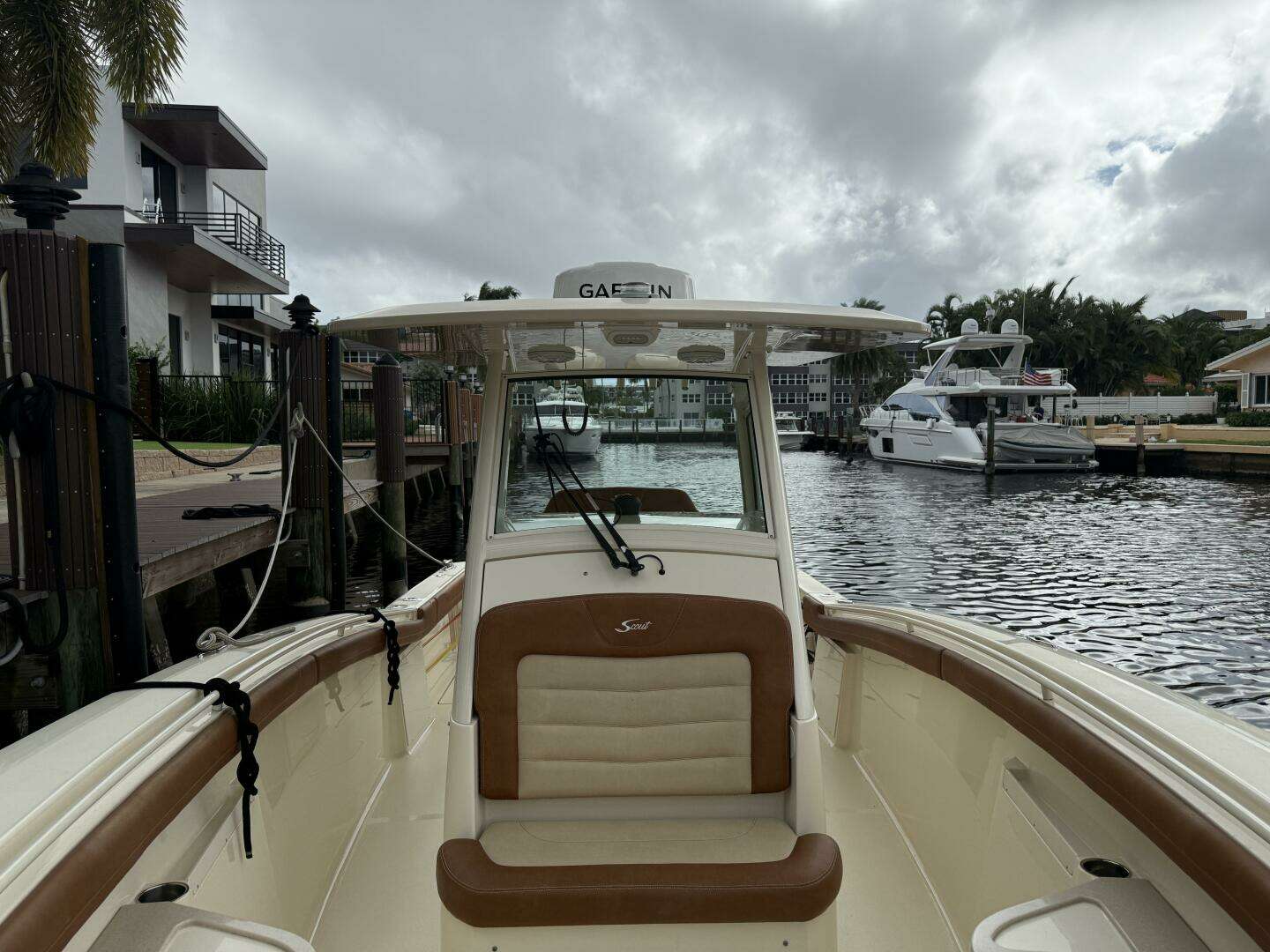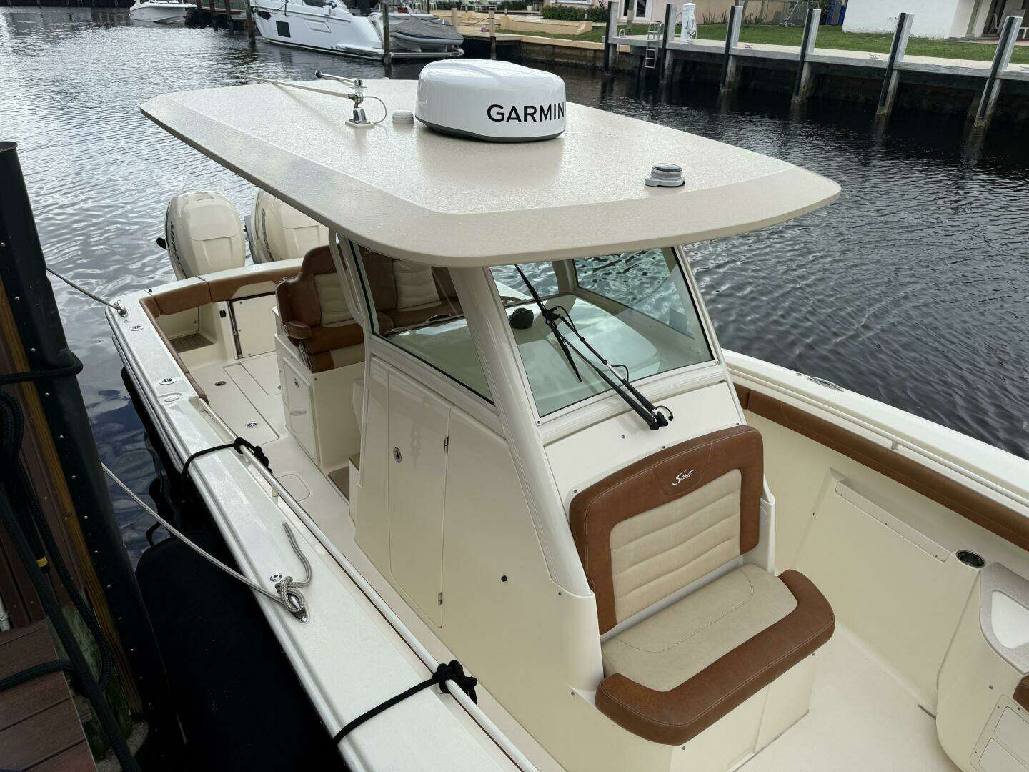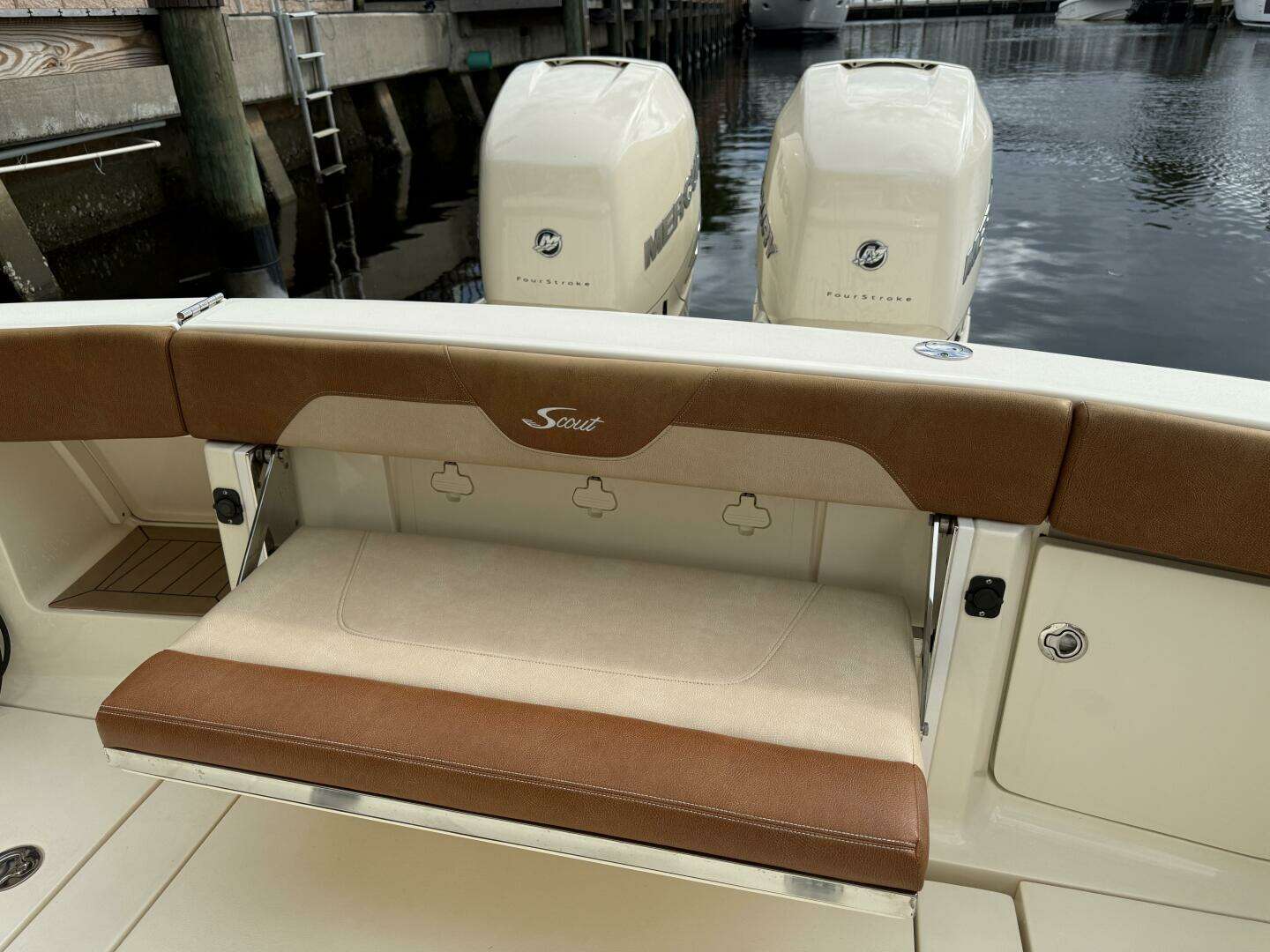 The unmistakable lines of the Scout 320 LXF give way to excellent sea keeping abilities, while the low 193 hour Mercury 350’s keep the sharp color palate uniform by matching the off-white hull.