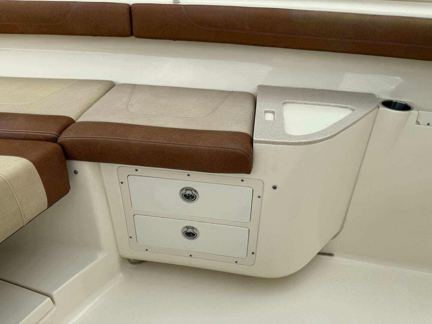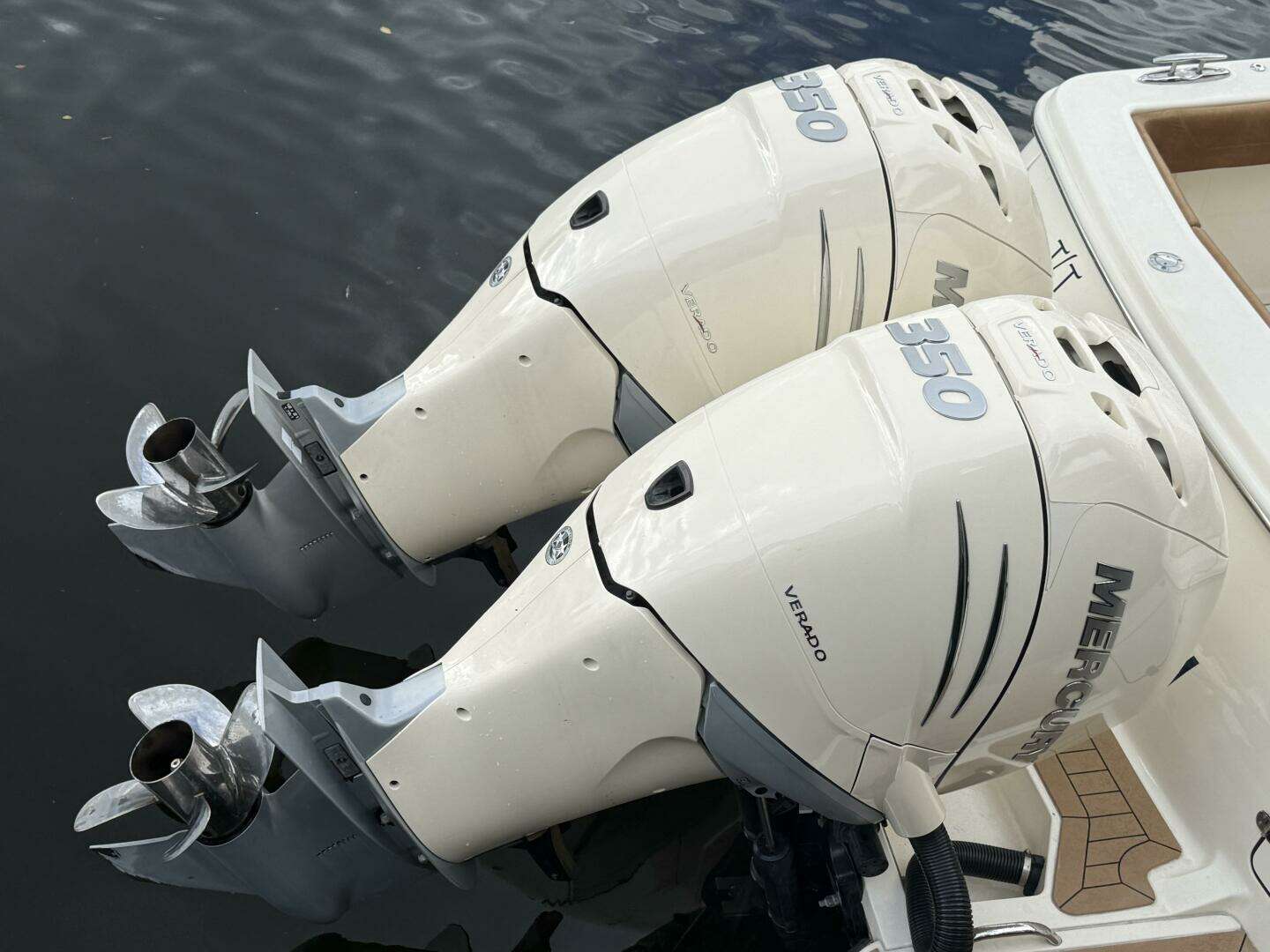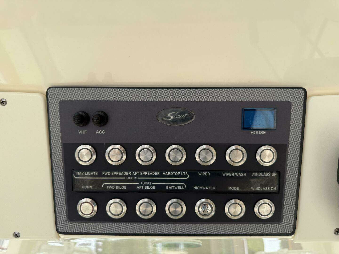 The unmistakable lines of the Scout 320 LXF give way to excellent sea keeping abilities, while the low 193 hour Mercury 350’s keep the sharp color palate uniform by matching the off-white hull.