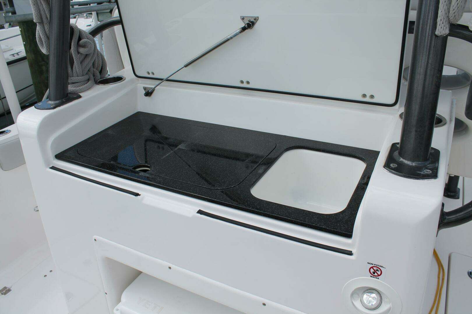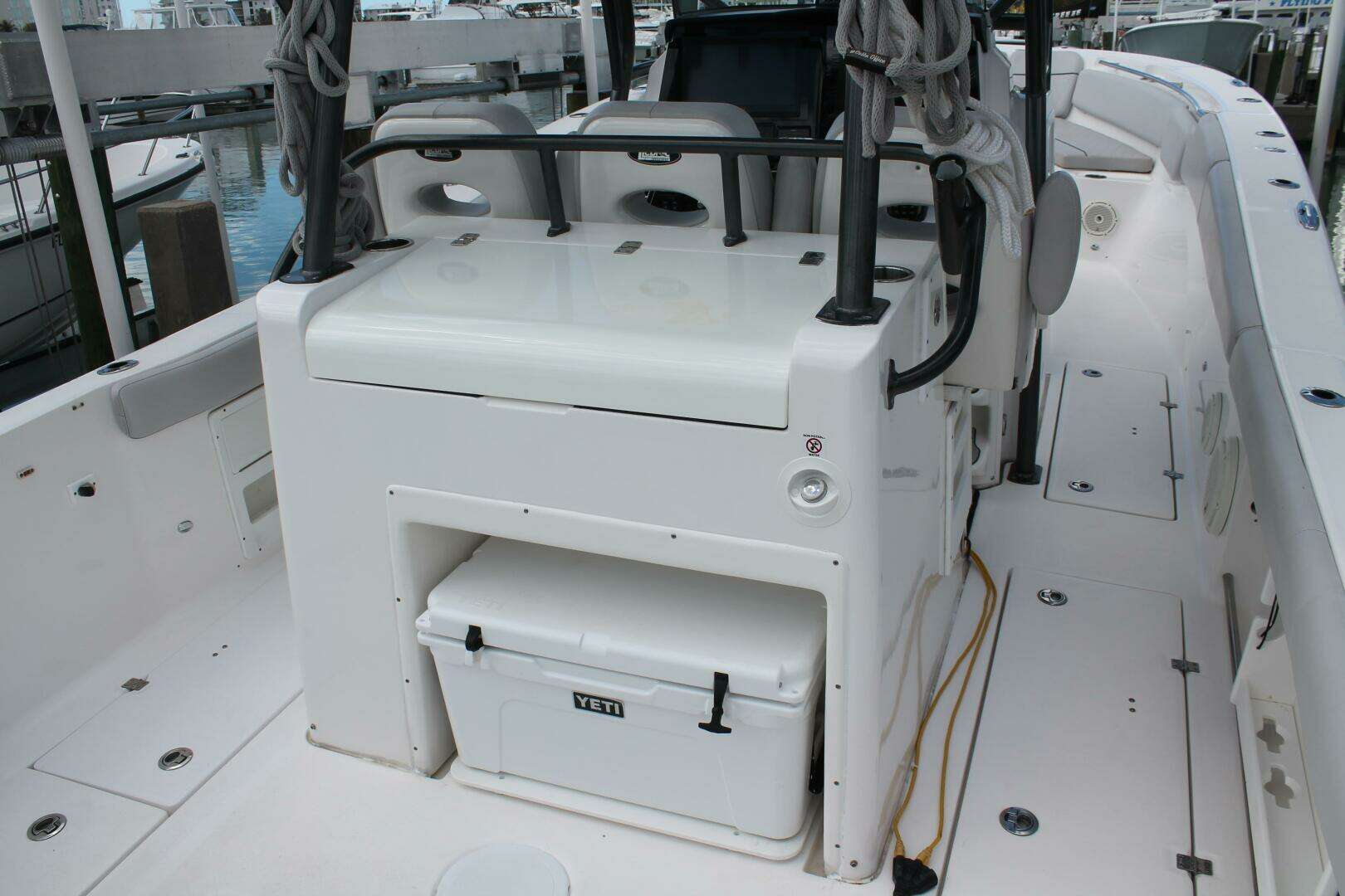 | Tenders: 30 12-volt power point Anchor - windlass system w/controls at helm & anchor locker Anchor compartment w/anchor roller chute, chaff plate, safety strap & rope access Battery switch - remote controlled at helm Bilge pumps - automatic (150 |