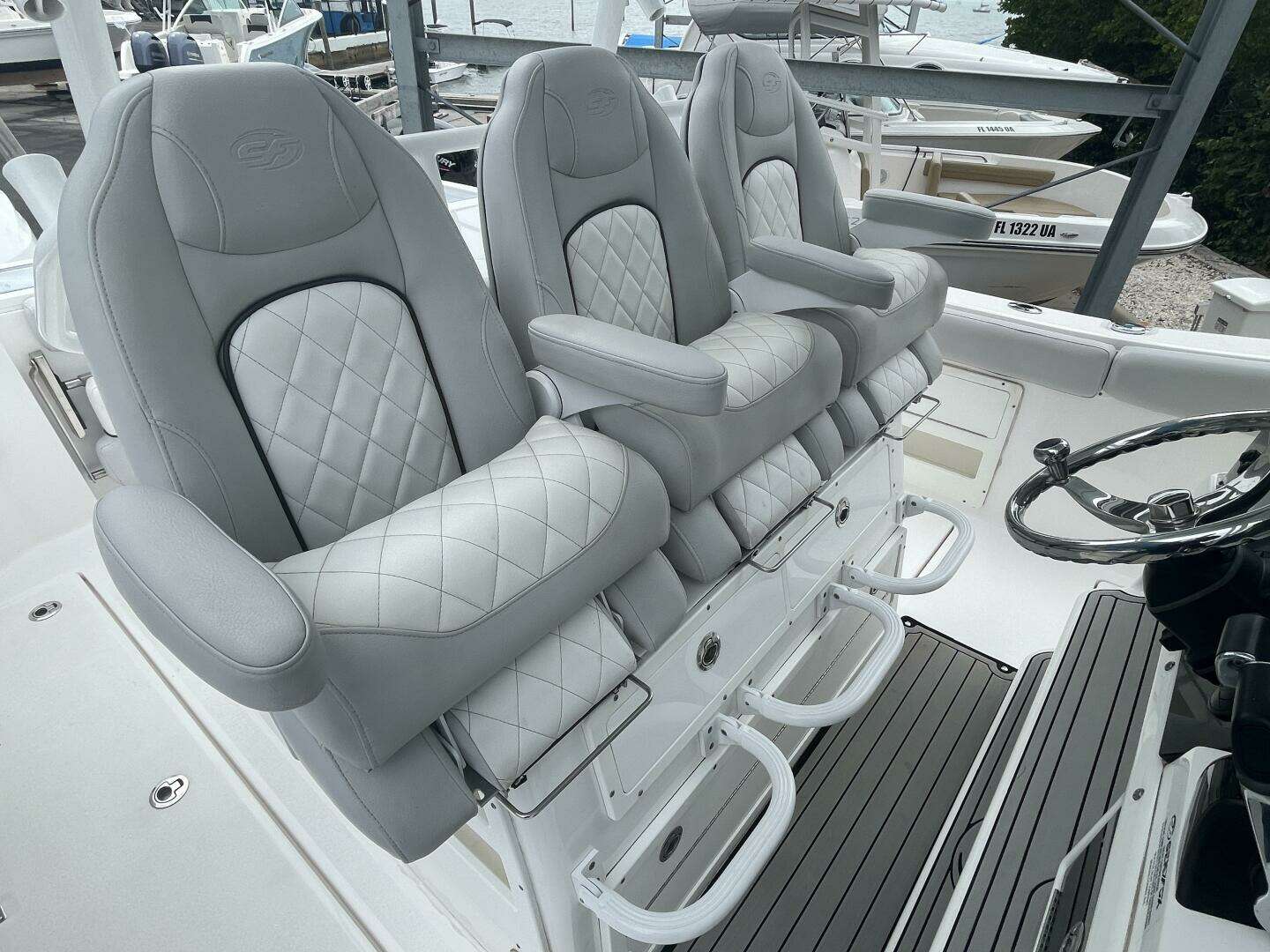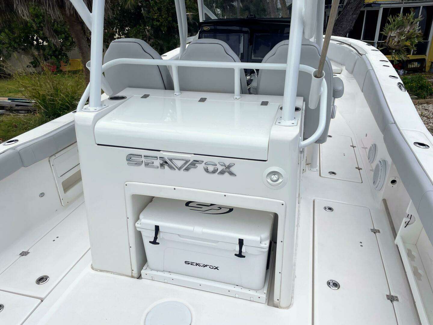 2019 Sea Fox 328 Commander, Only 184 Hours On Twin Yamaha F300 Four Stroke Engines. She Is Loaded With Twin Garmin Touch Screen GPS/MAP/Plotter/Fishfinder/Radar, Air Conditioning, JL Audio Stereo With Sub, Side Door, Windlass w/Stainless Anchor, 35 and 55 Gallon Pressurized Live Wells and More