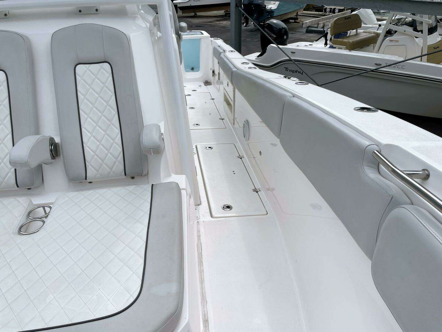 2019 Sea Fox 328 Commander, Only 184 Hours On Twin Yamaha F300 Four Stroke Engines. She Is Loaded With Twin Garmin Touch Screen GPS/MAP/Plotter/Fishfinder/Radar, Air Conditioning, JL Audio Stereo With Sub, Side Door, Windlass w/Stainless Anchor, 35 and 55 Gallon Pressurized Live Wells, Multiple In-Floor Fish Boxes, 36 Rod Holders, Dual Battery Chargers, Plenty of Storage, Much,Much More! Includes 2019 Amera Trail Aluminum Trailer