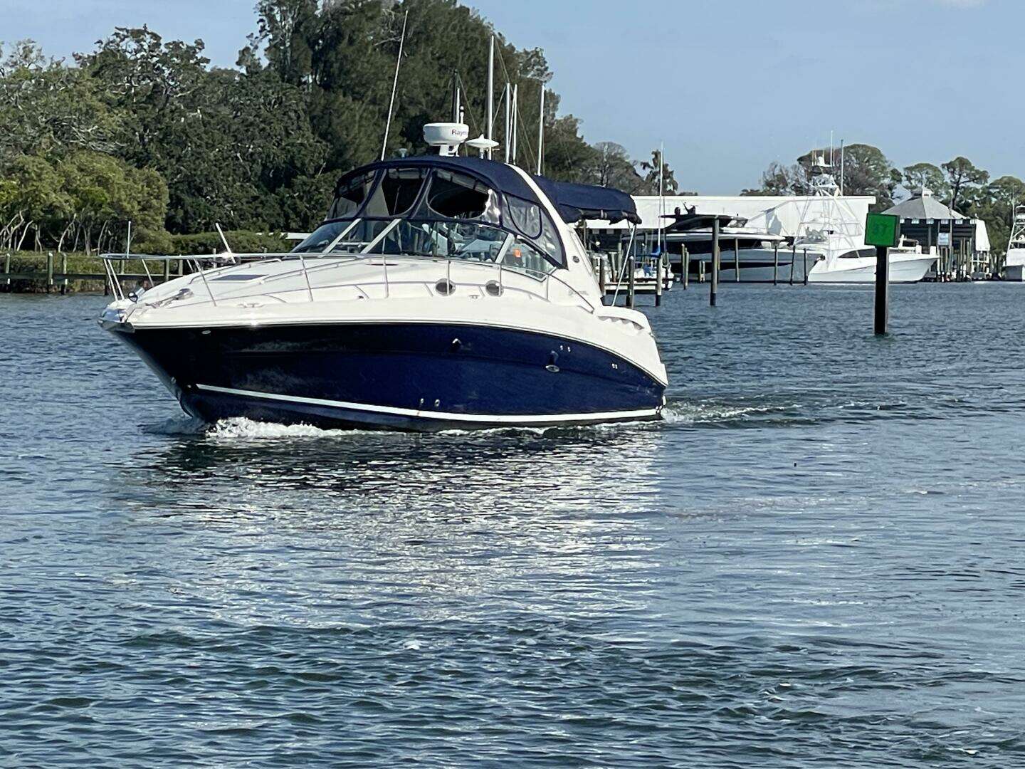 If you are in the market for a 320 Sundancer, your ship has come in! BRAND NEW, not rebuilds, Mercury Quicksilver 350 MPI 300HP Complete Drop In Engines Installed 11/25, Only 4.9 Hours on Them!(Nearly 50K Spent)New Cockpit Upholstery, New VHF, Newer Simrad Go-9 GPS/Plotter, Raymarine C-80 Radar, Full Camper Enclosure, Low Hours on 5KW Kohler Generator, Very Nice Boat, Everything Works and is Ready To Go!