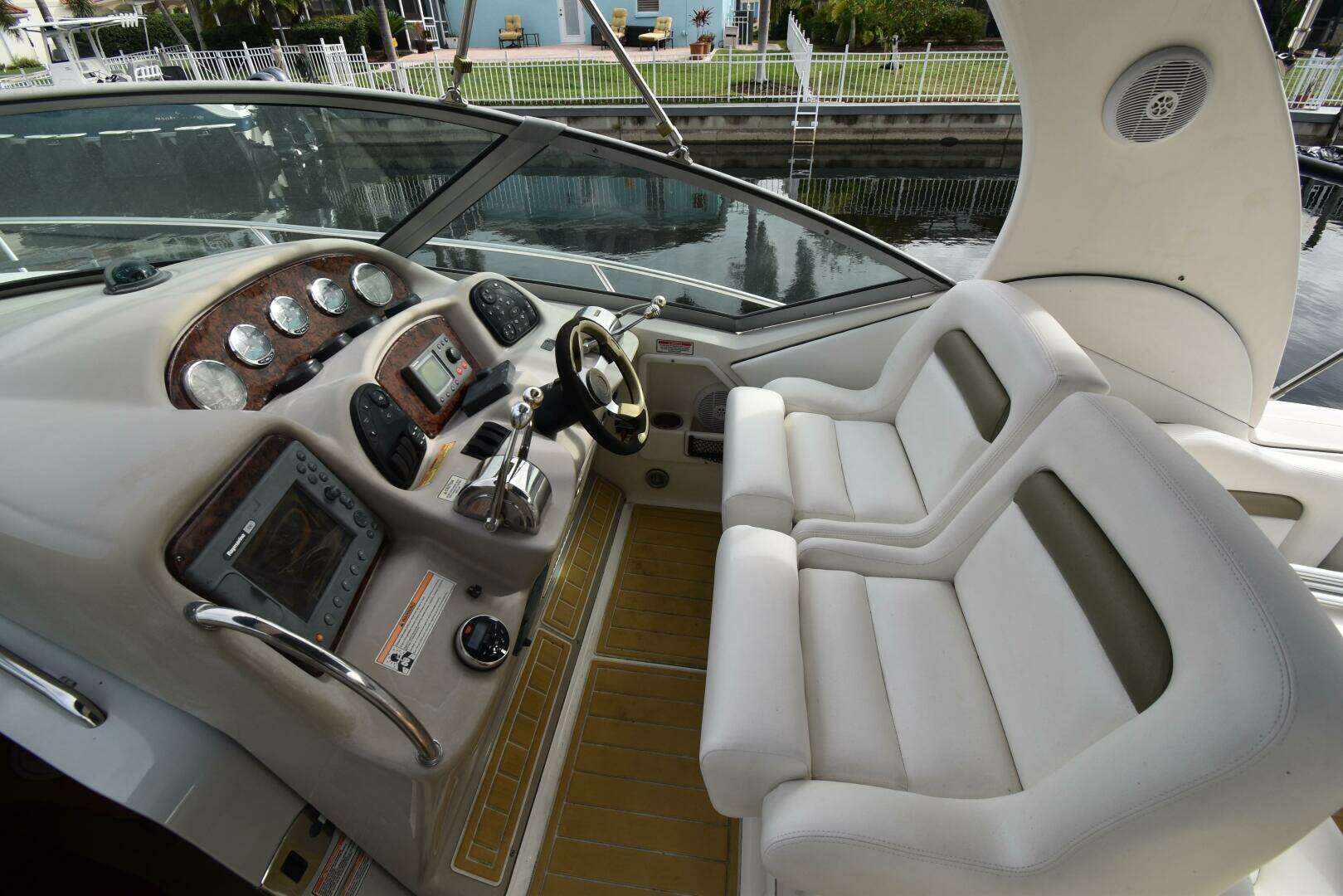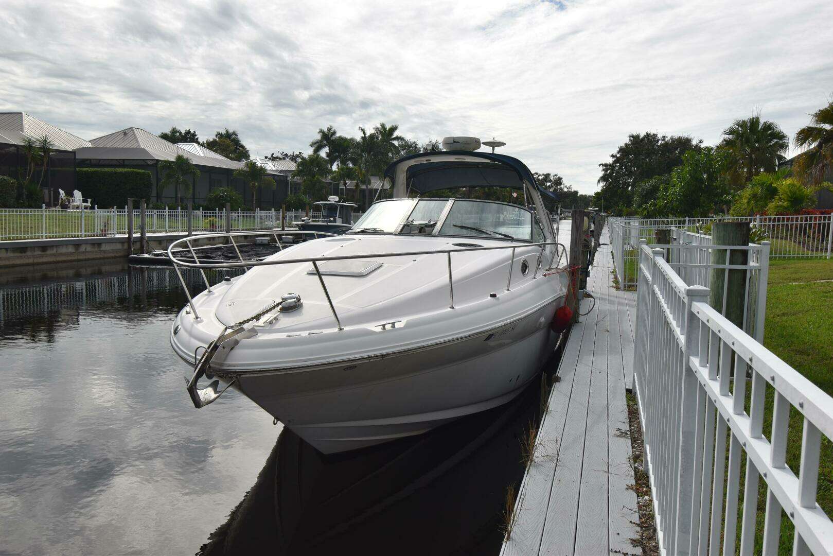 This Sea Ray is on a freshwater canal with lock access to the Manatee River, Tampa Bay, and beyond. Twin Mercruisers, one new (less than 15 hours) and one with 495 hours (new risers and manifolds 2023), this boat has new cockpit and helm cushions and new refrigerators in the cockpit and galley.