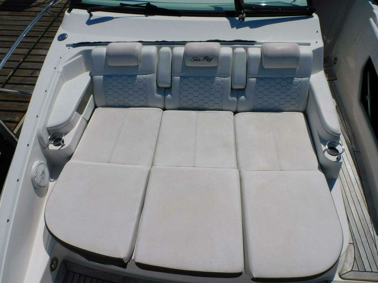 The 2018 - 32' Sea Ray Sundancer is perfect for an overnight getaway or daytime cruising in total comfort. The cockpit allows for effortless entertaining with never-ending views. Complete with wet bar, grill, and retracting canvas sunroof. Combining the values of a cruiser and a bowlder in one package. With her Kohler generator and air conditioning, she is a go-anywhere boat. Simrad electronics make navigating simple and safe from coastal Florida waters to the Bahamas.