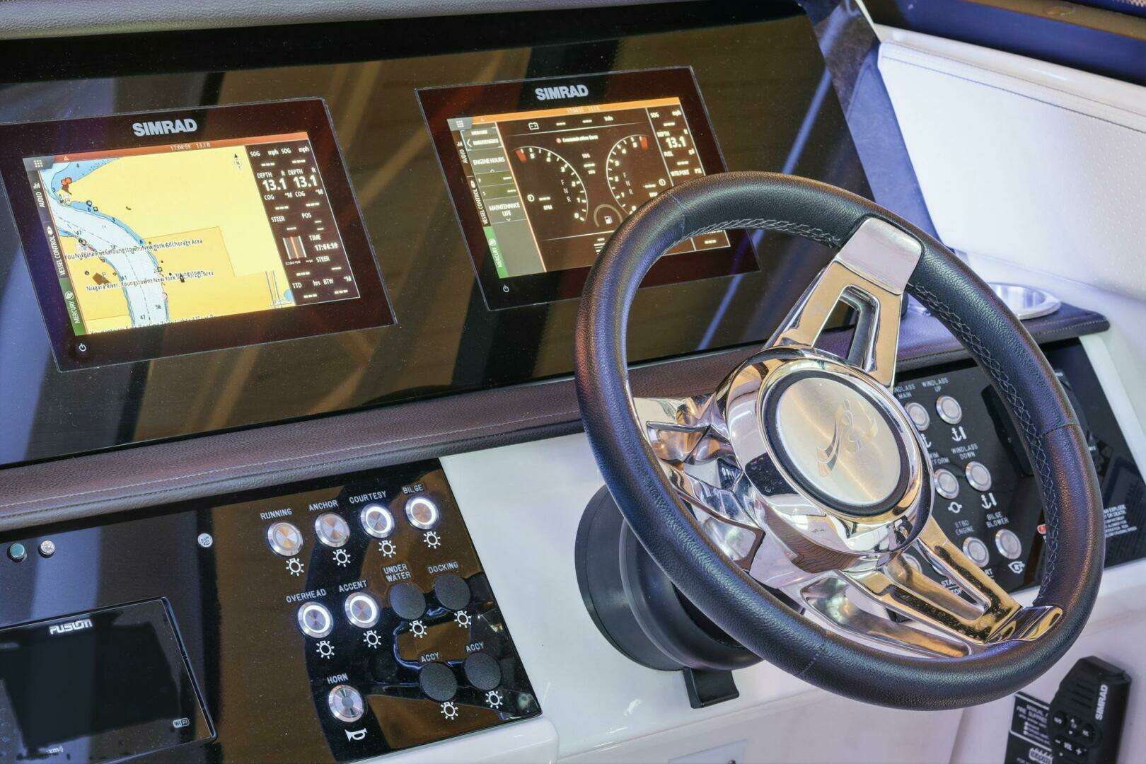 Price Reduced! RCR Trade-In. Twin Mercruiser Mercruiser 6.2L 300HP Bravo 3 Drives with 118 Hours with Mercury Joystick. Sunroof, A/C-Heat, Twin Simrad Plotters at Helm, Open Bow Lounge, Lowering Swim Platform, Cockpit Galley, Sleeps a family of 4 comfortably, Very CLEAN!