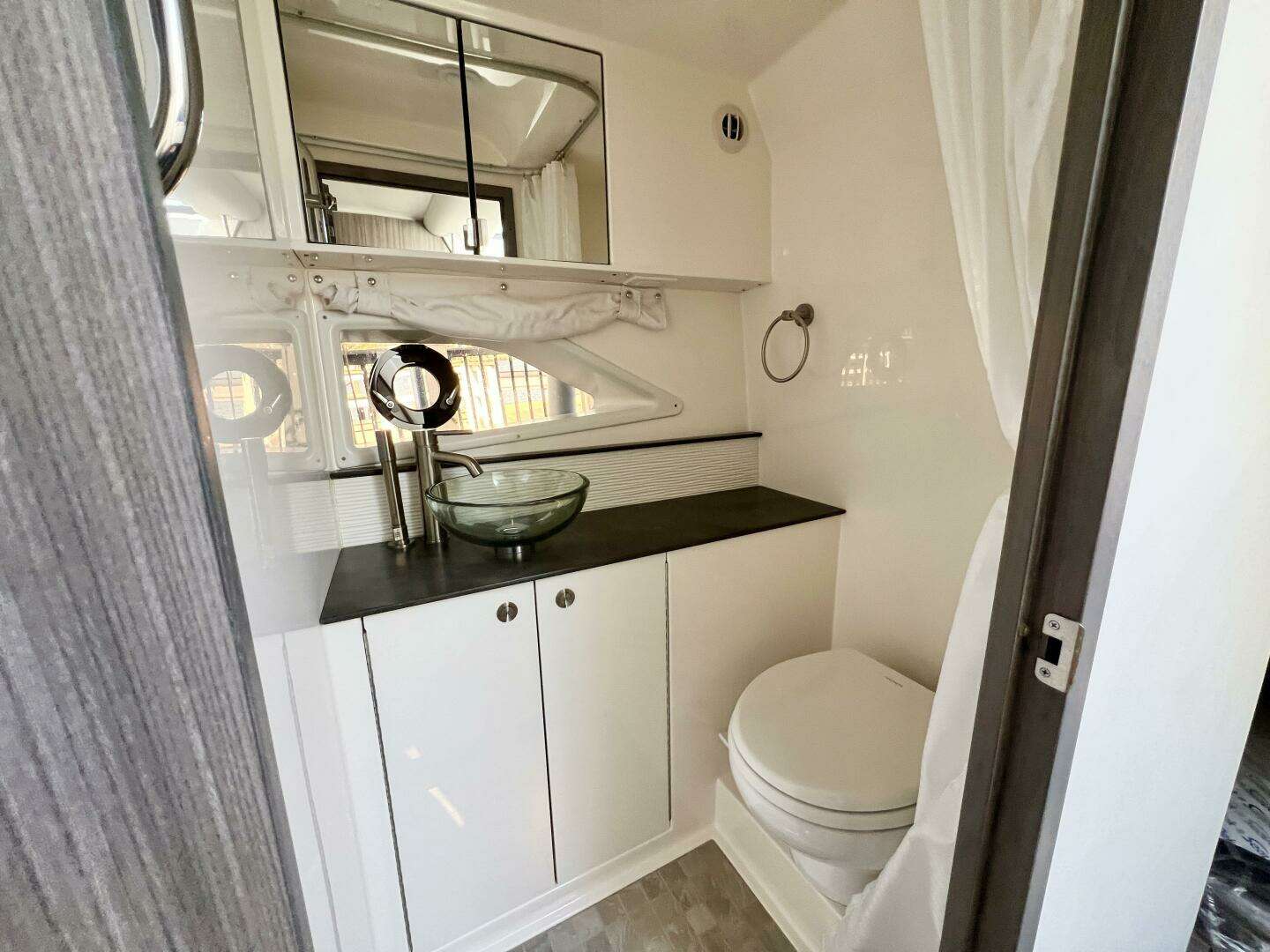 The cabin is spacious and comfortable with fridge/microwave galley, roomy head with vacuflush toilet and pull-out shower, a full beam mid berth, and convertible forward dinette / berth.